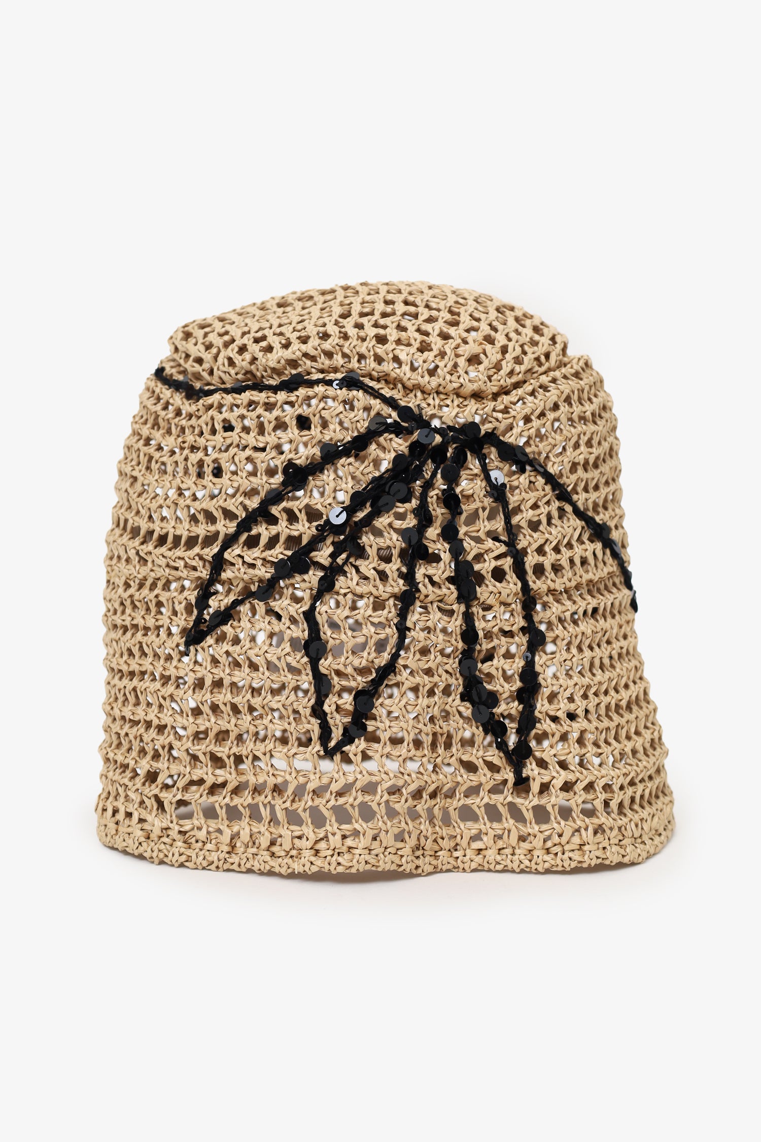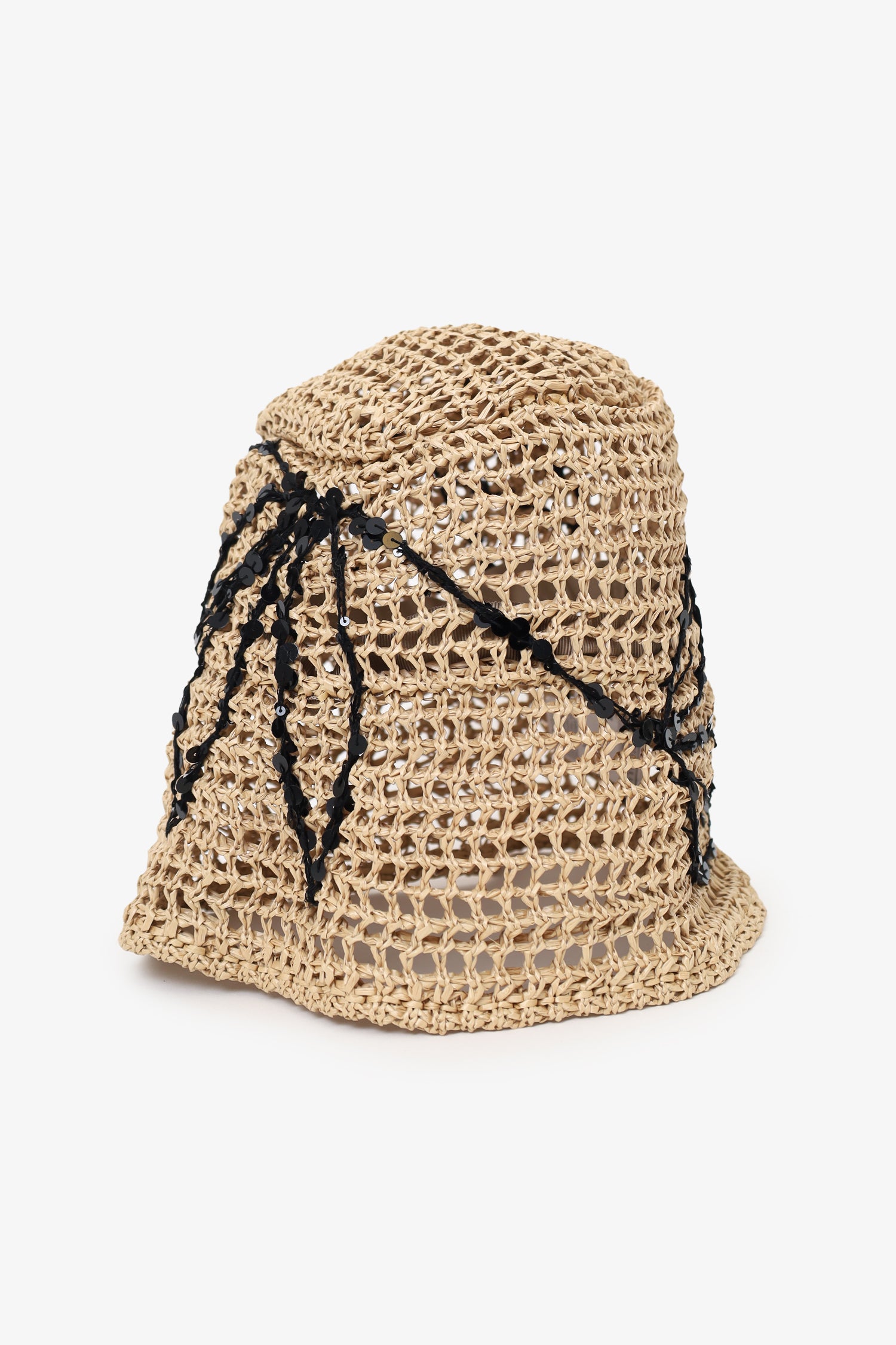 Refresh availabilityBrunello Cucinelli Beige Raffia Sequin Bucket Hat. Embroidered sequin design. Tonal stitching.