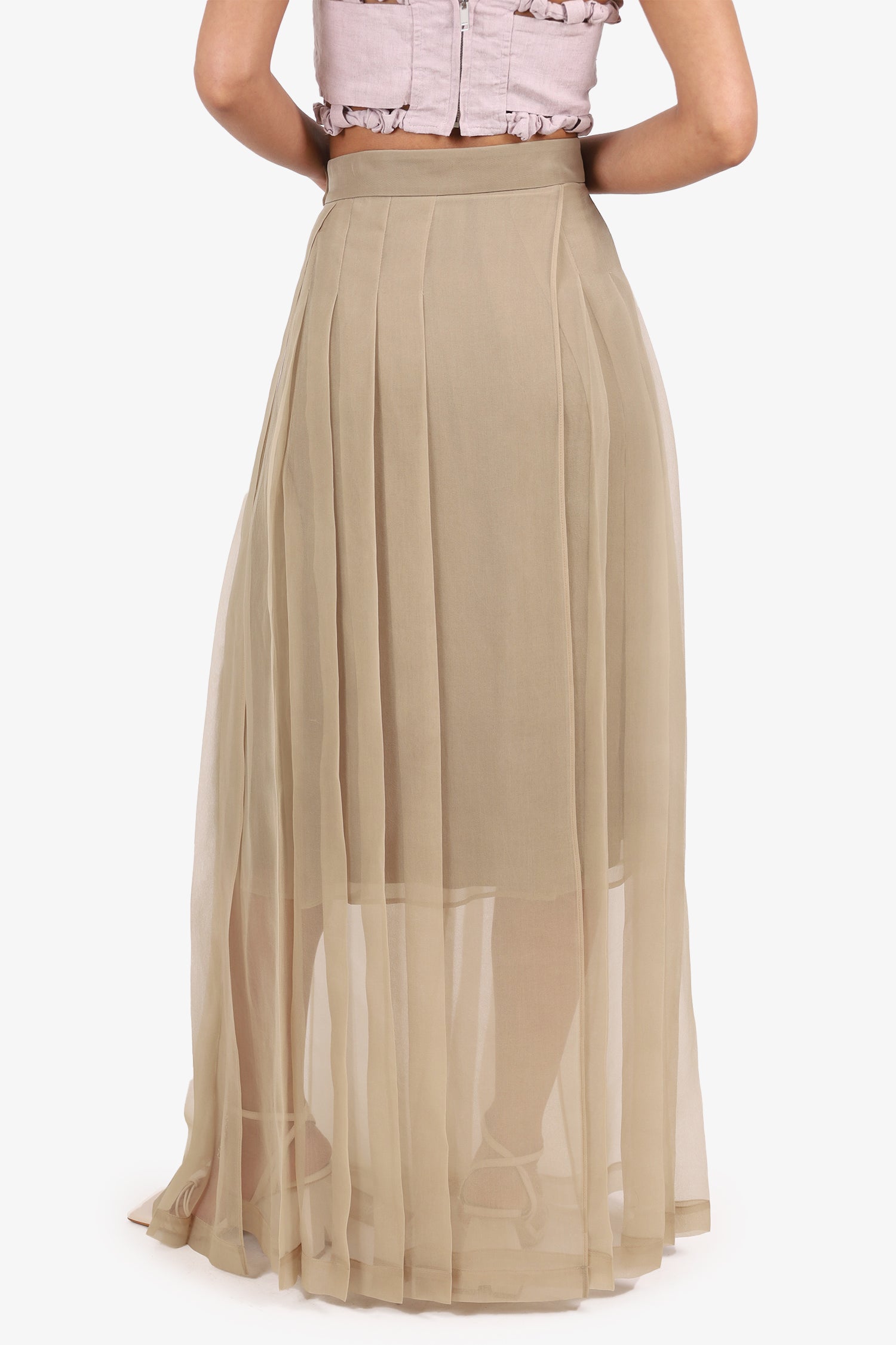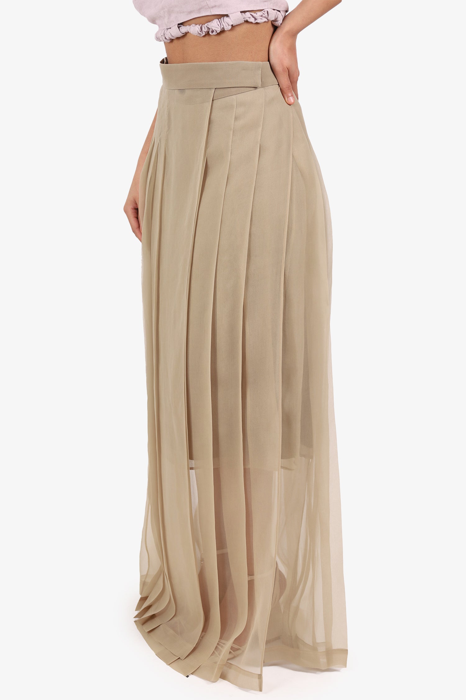 Brunello Cucinelli Beige Silk Sheered Pleated Maxi Skirt Size 4