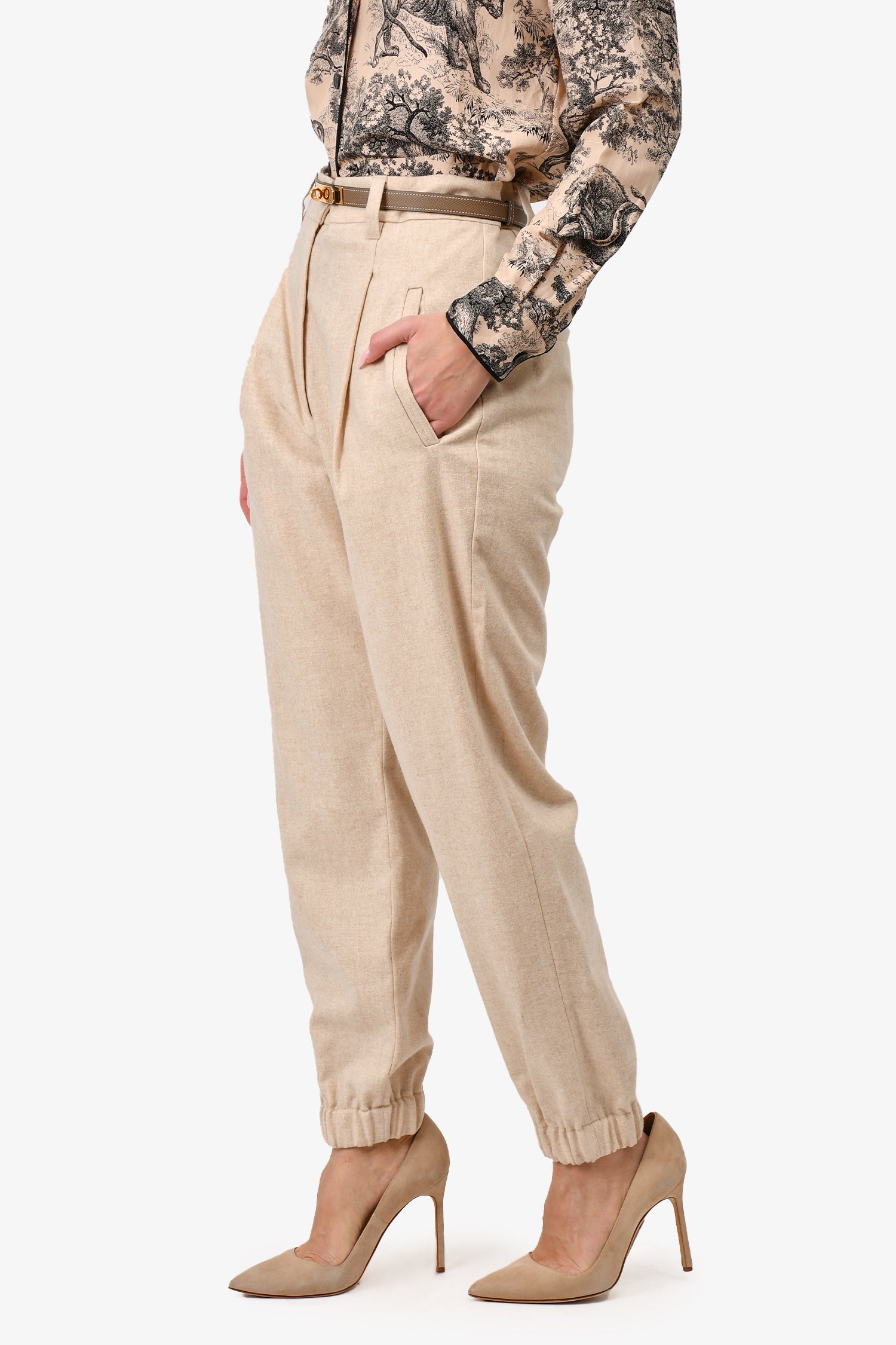 Brunello Cucinelli Beige Wool Jogger Style Pants Size 6 US