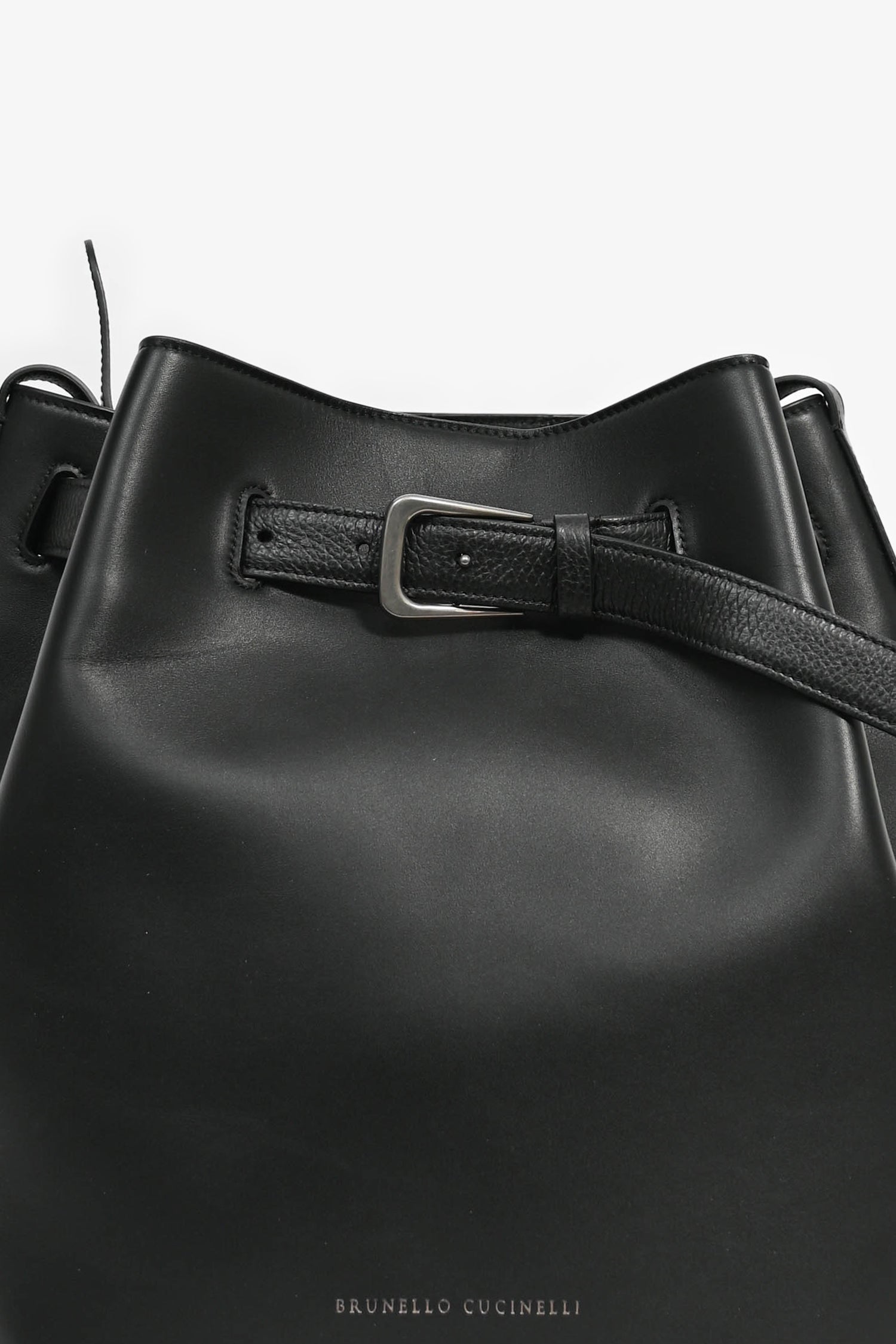 Brunello Cucinelli Black Calfskin 'Sartorial' Large Bucket Bag
