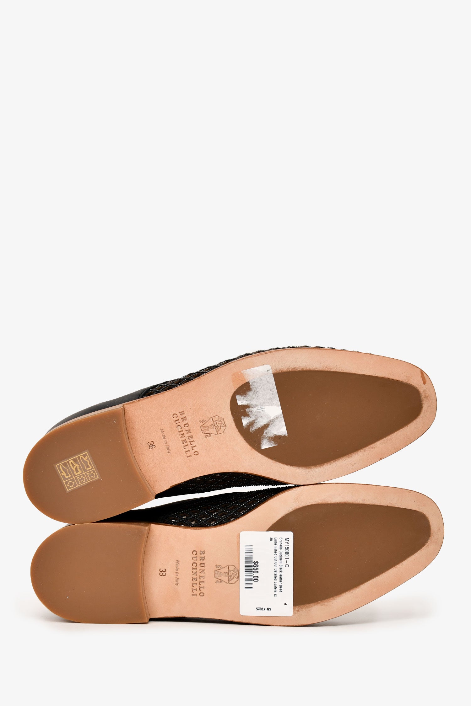 Brunello Cucinelli Black leather Bead Embellished Cut Out Detailed Loafers Size 38