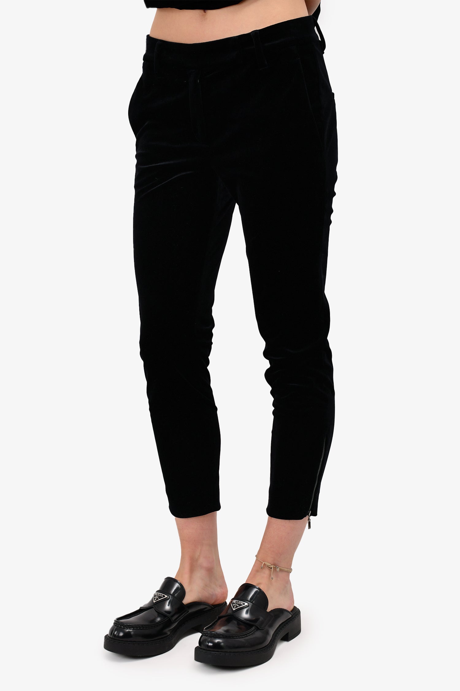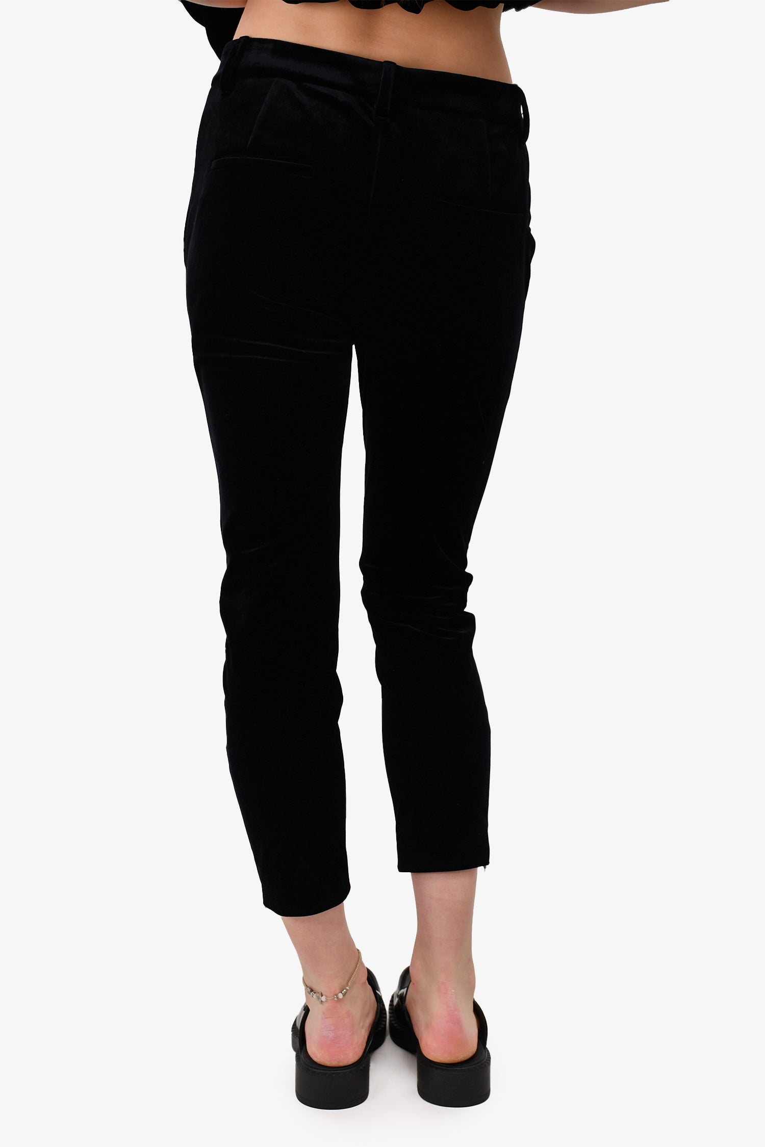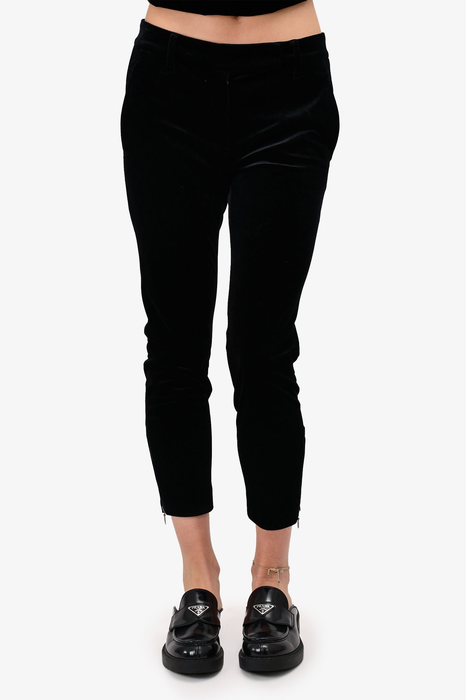 Brunello Cucinelli Black Velvet Trousers with Zips on Hem Size 6