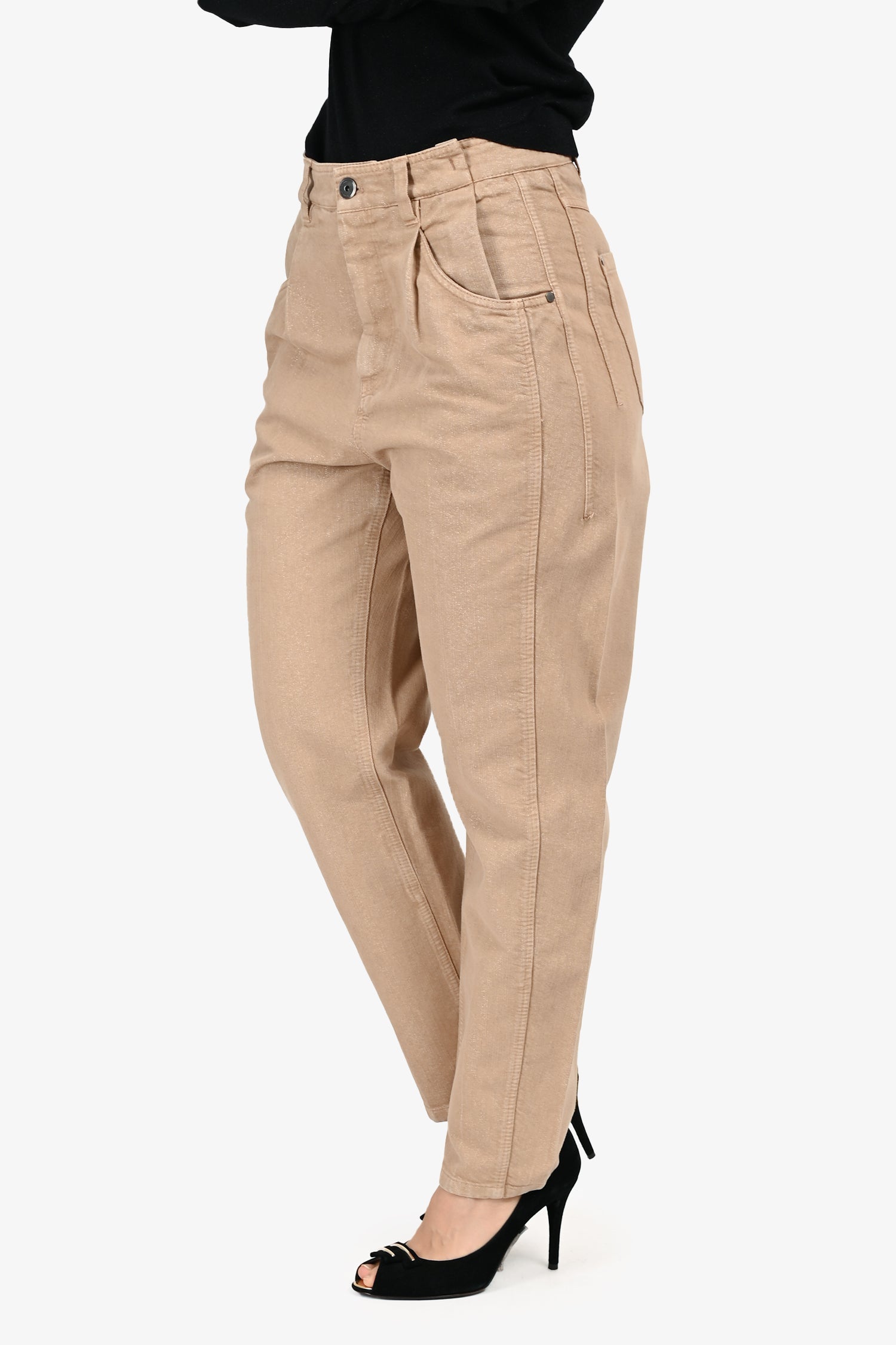 Brunello Cucinelli Brown Coated Denim Barrel Legged Jeans Size 6 US