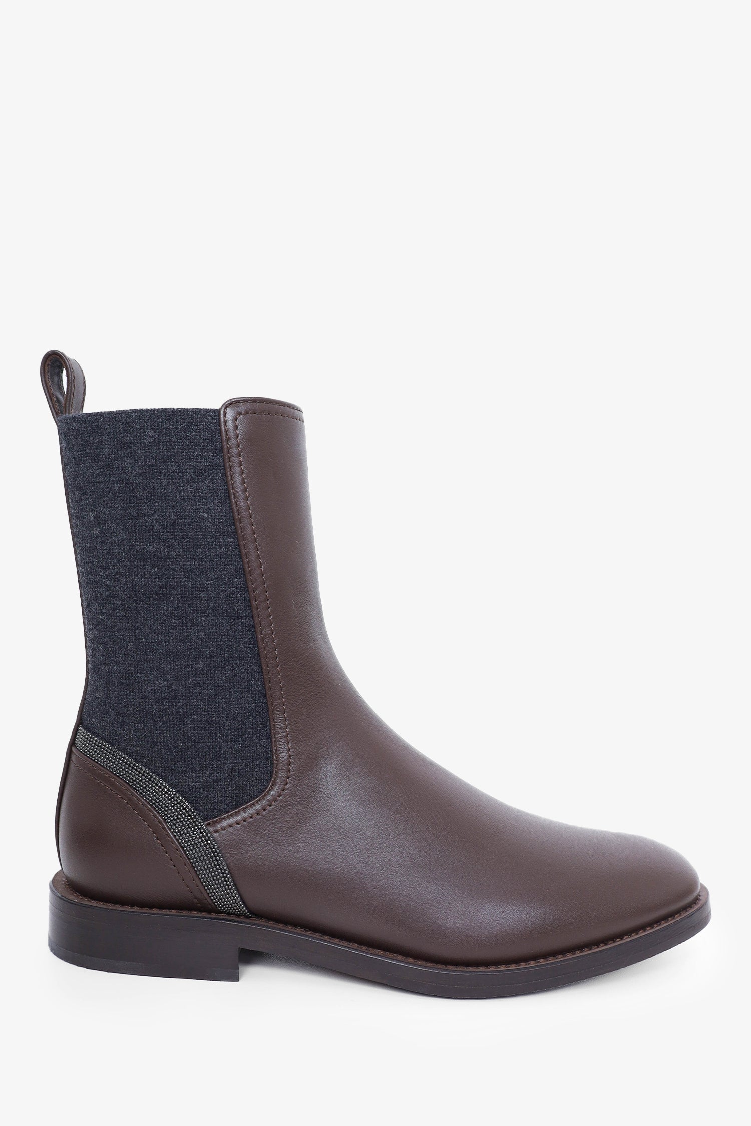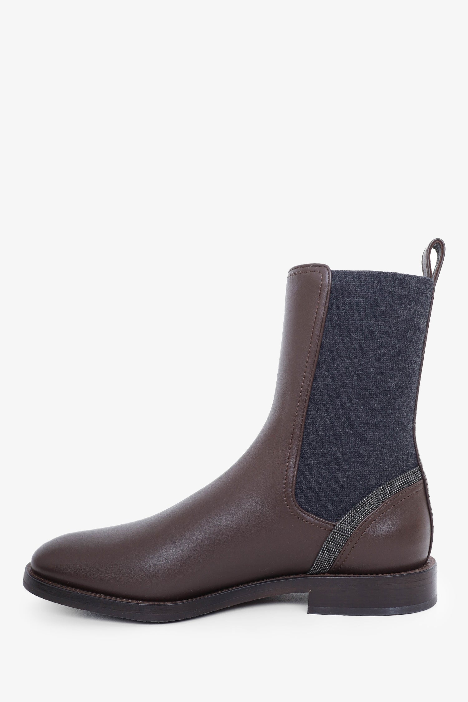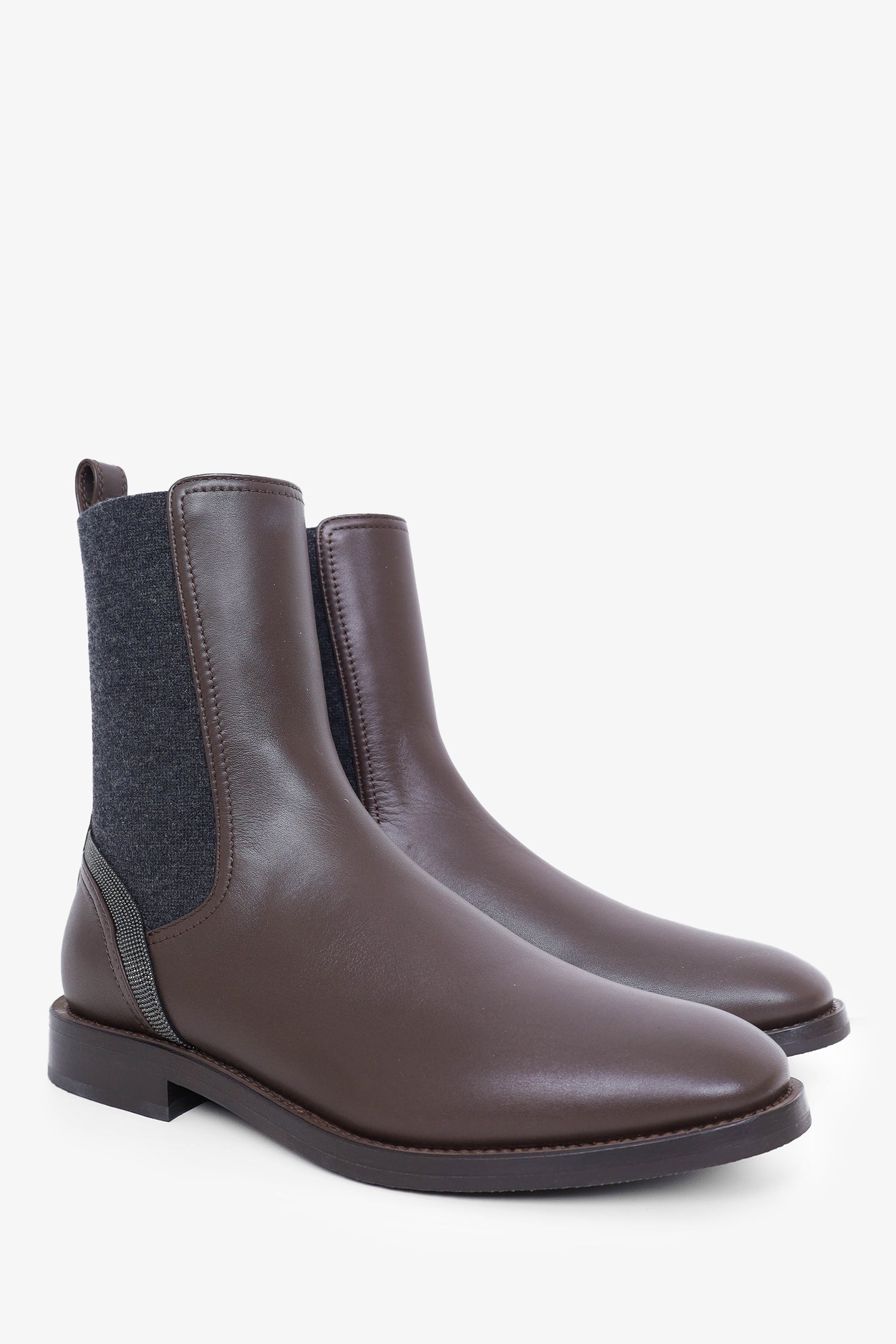Refresh availabilityBrunello Cucinelli Brown Leather Monili Chelsea Boots. Pull-on with rear pull tabs. Round toe. Tonal stitching.