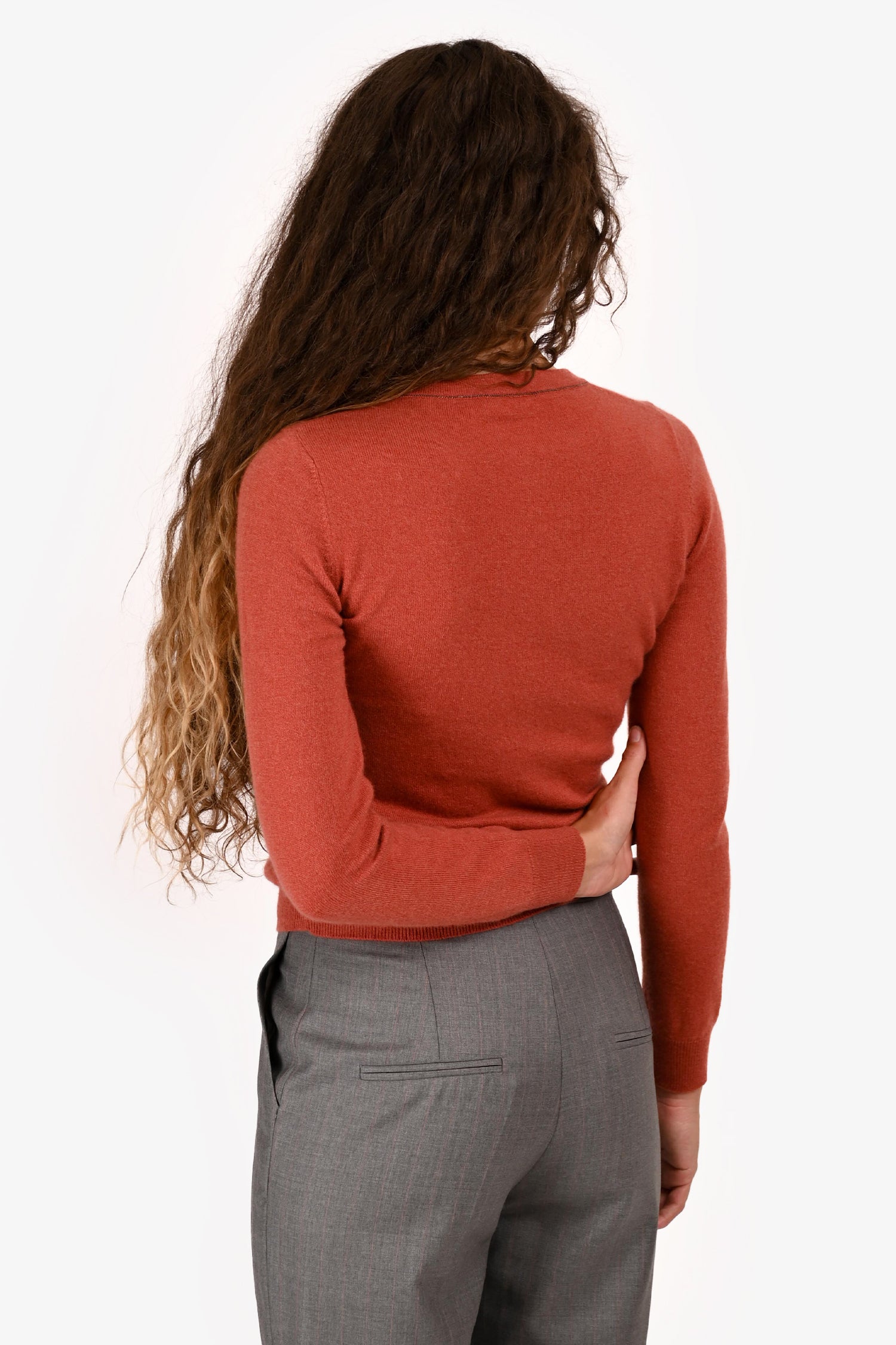 Brunello Cucinelli Burnt Orange Cashmere Bead Embellished Sweater Size XXS