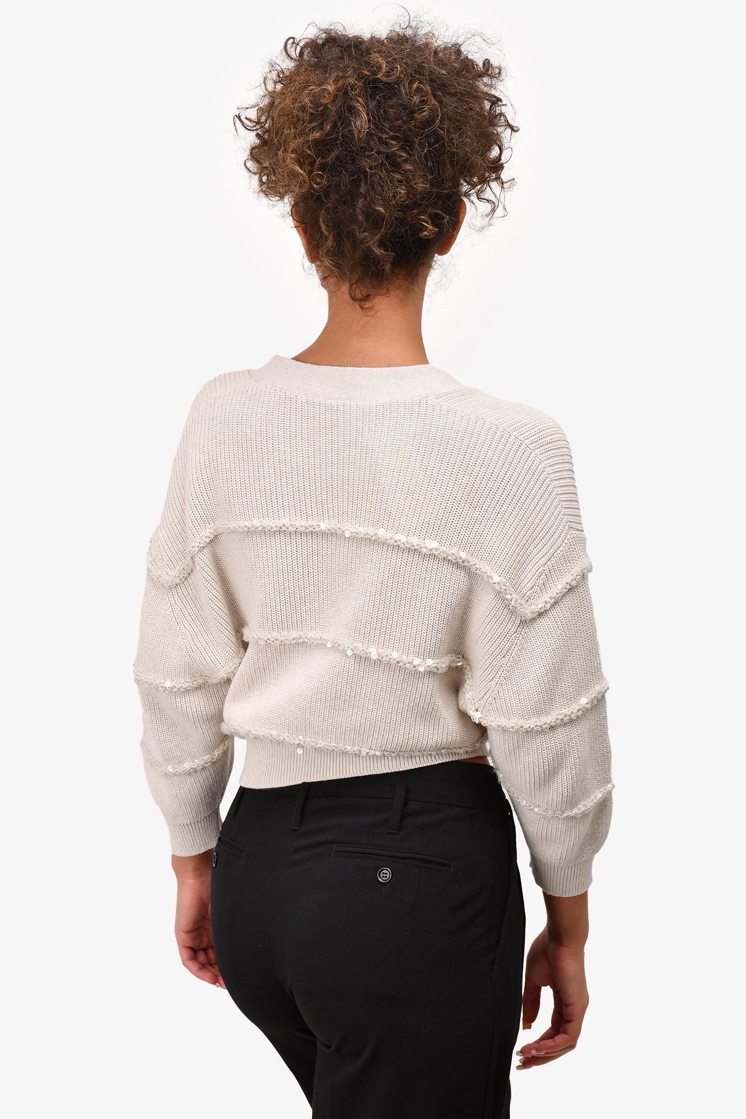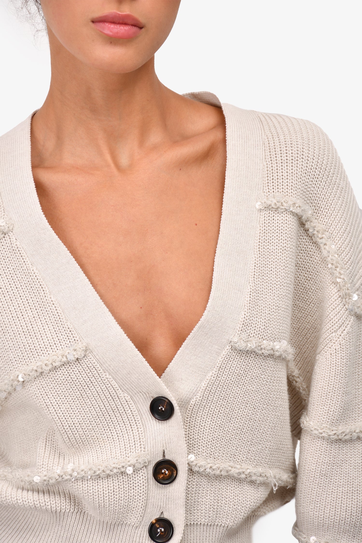 Brunello Cucinelli Cream Cotton Embellished Cropped Cardigan Size M