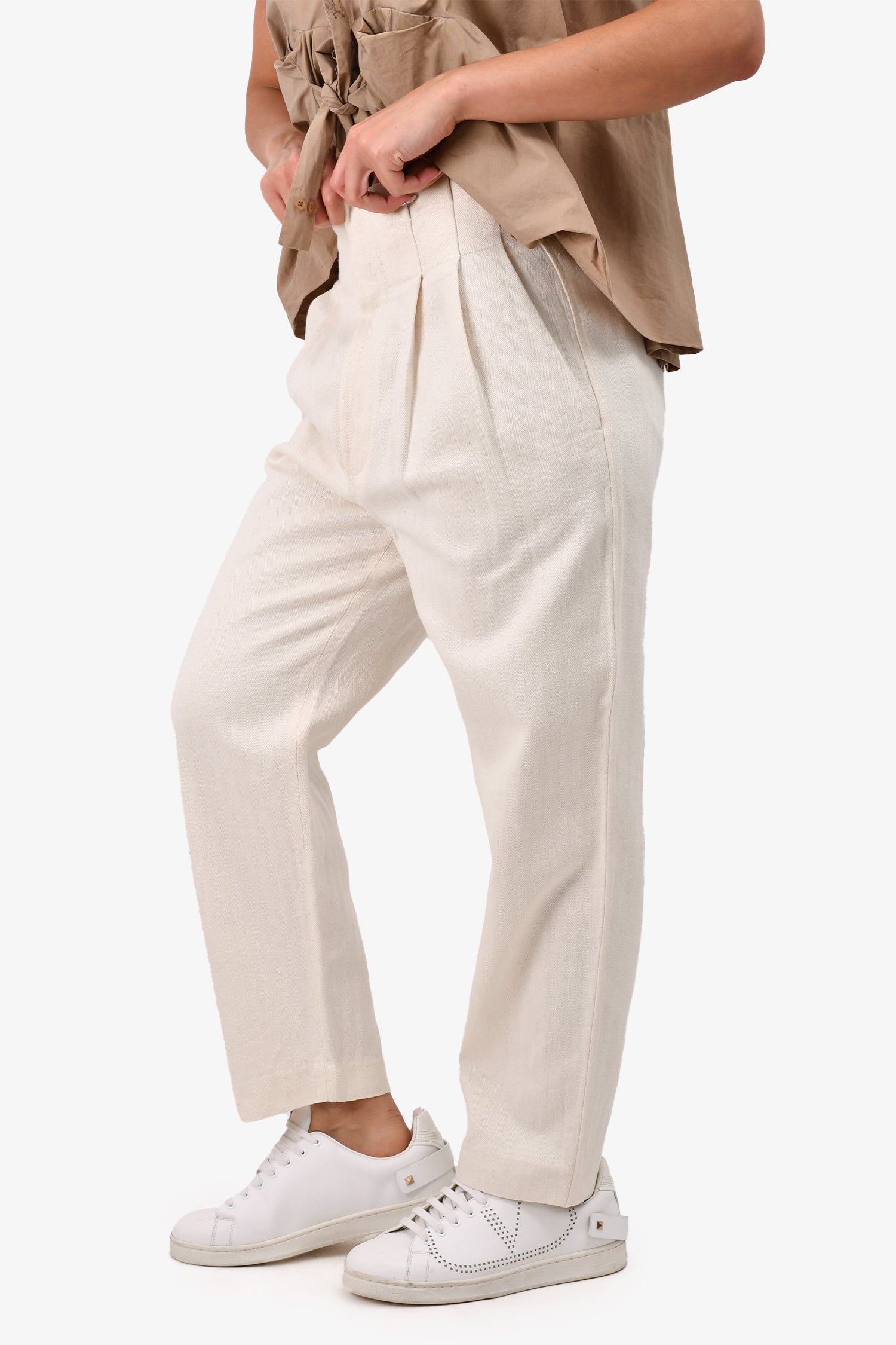 Brunello Cucinelli Cream Linen High Waisted Pants Size 6 US