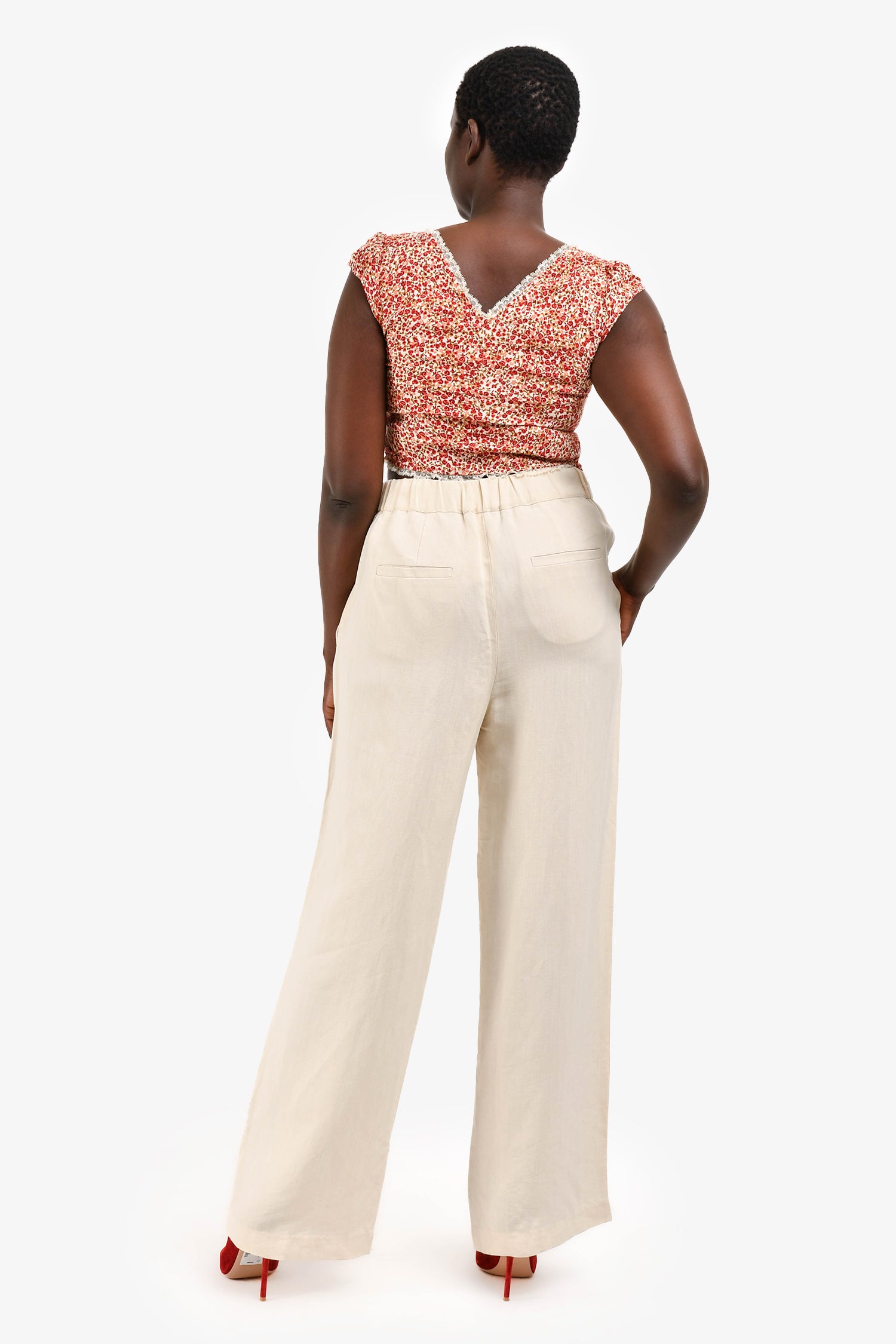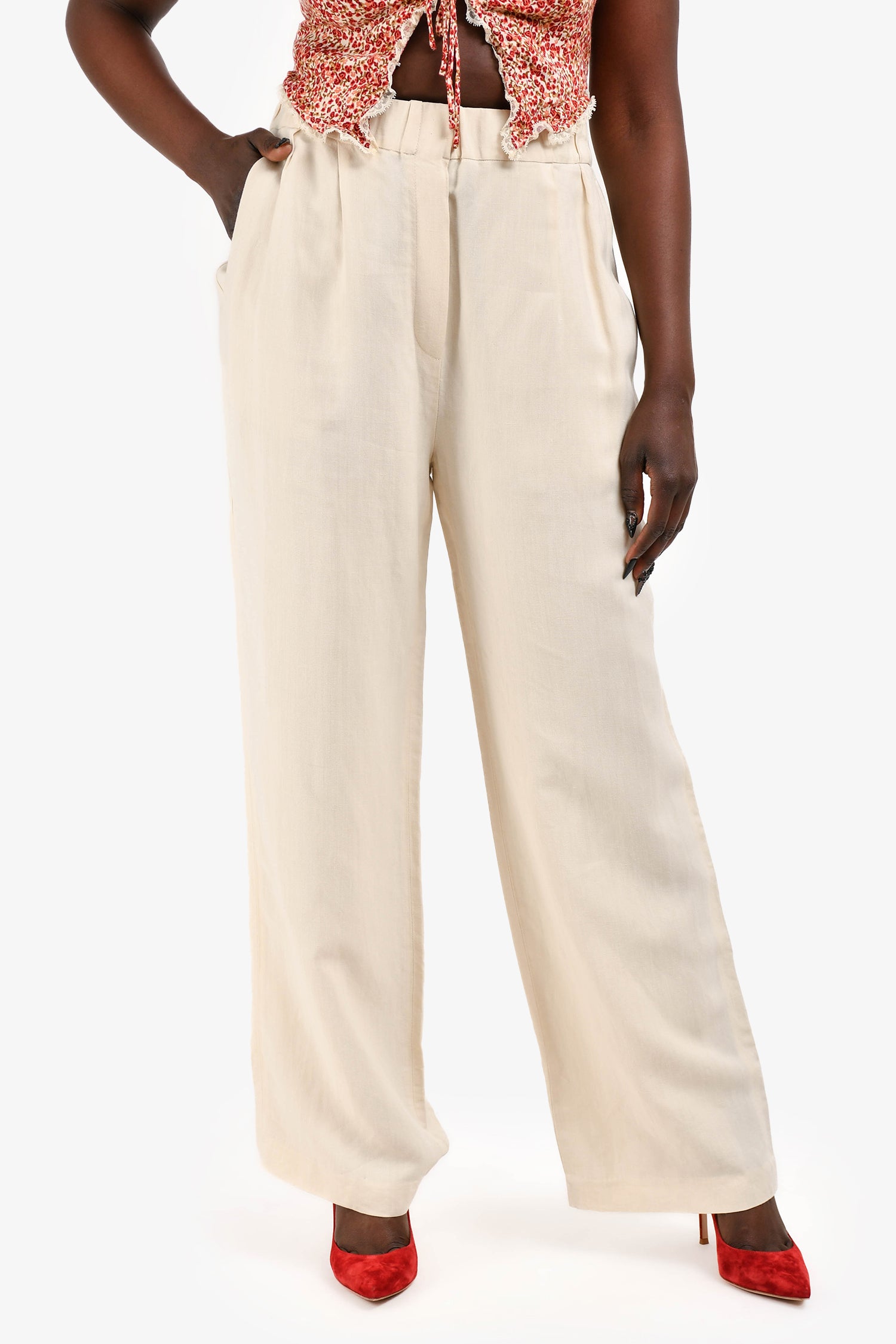 Refresh availabilityBrunello Cucinelli Cream Wide Leg Pant. Elasticized waist. Side and back pockets. Wide leg silhouette. Tonal stitching.