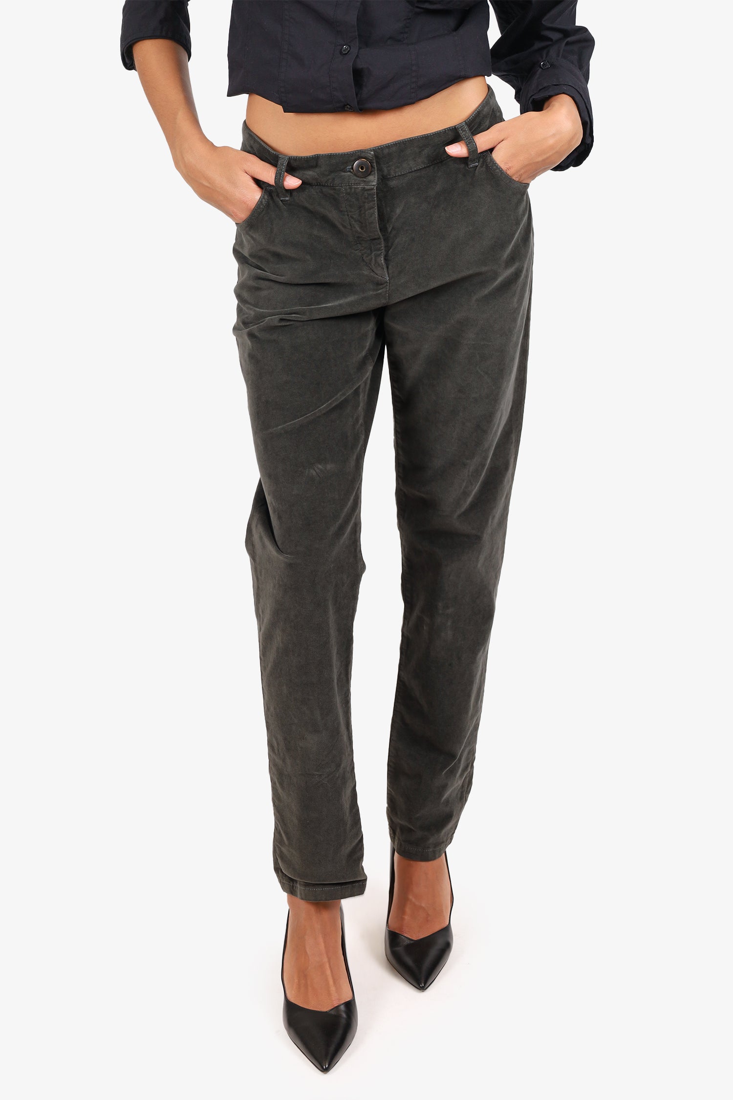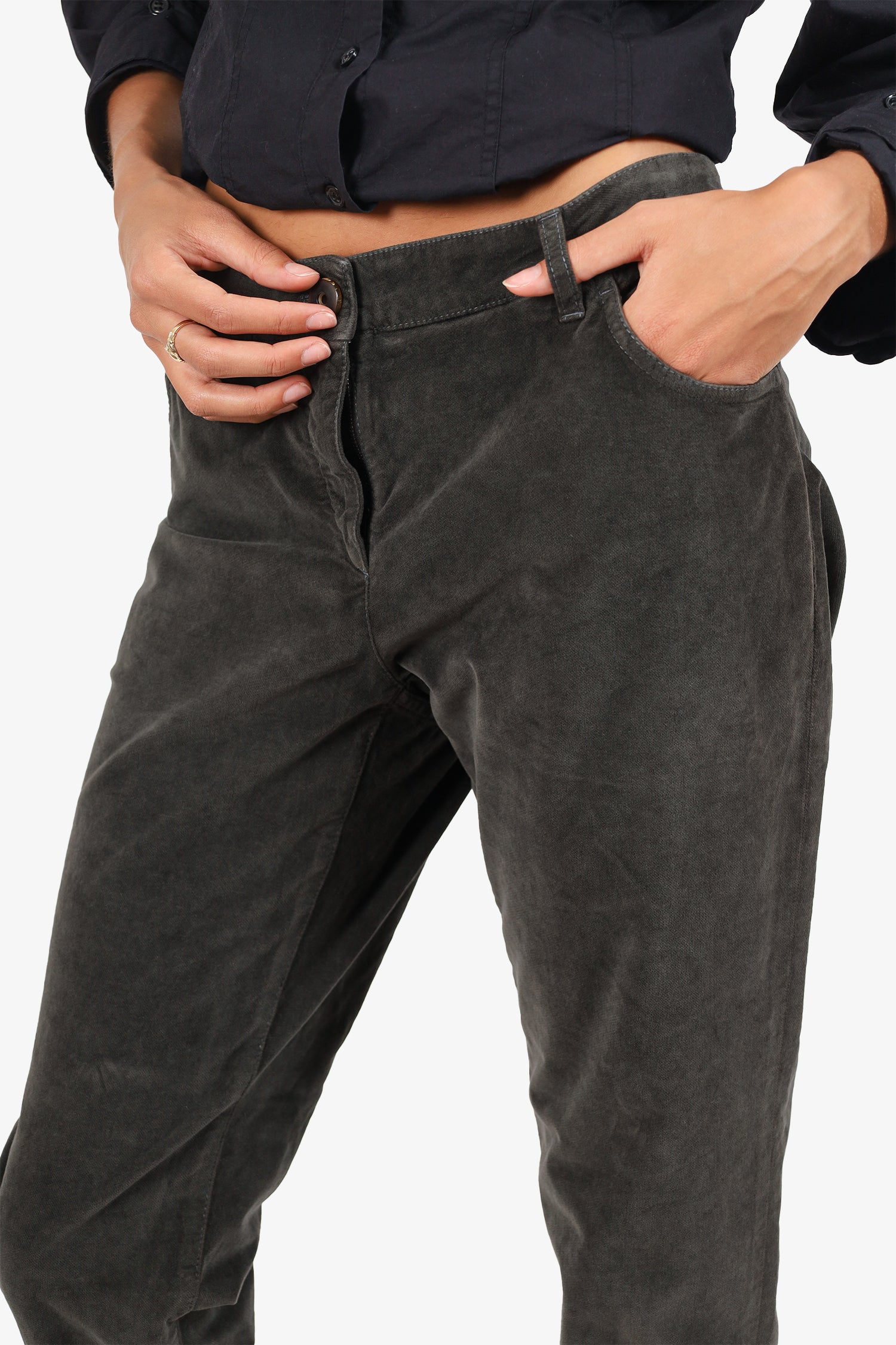 Brunello Cucinelli Dark Grey Velvet Straight Leg Pants Size 12
