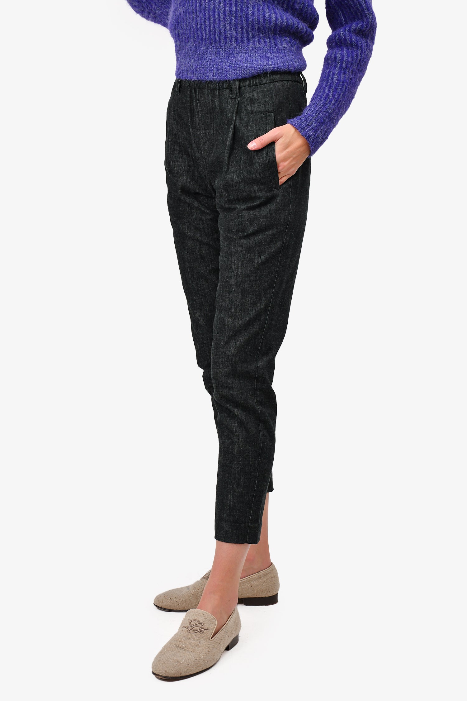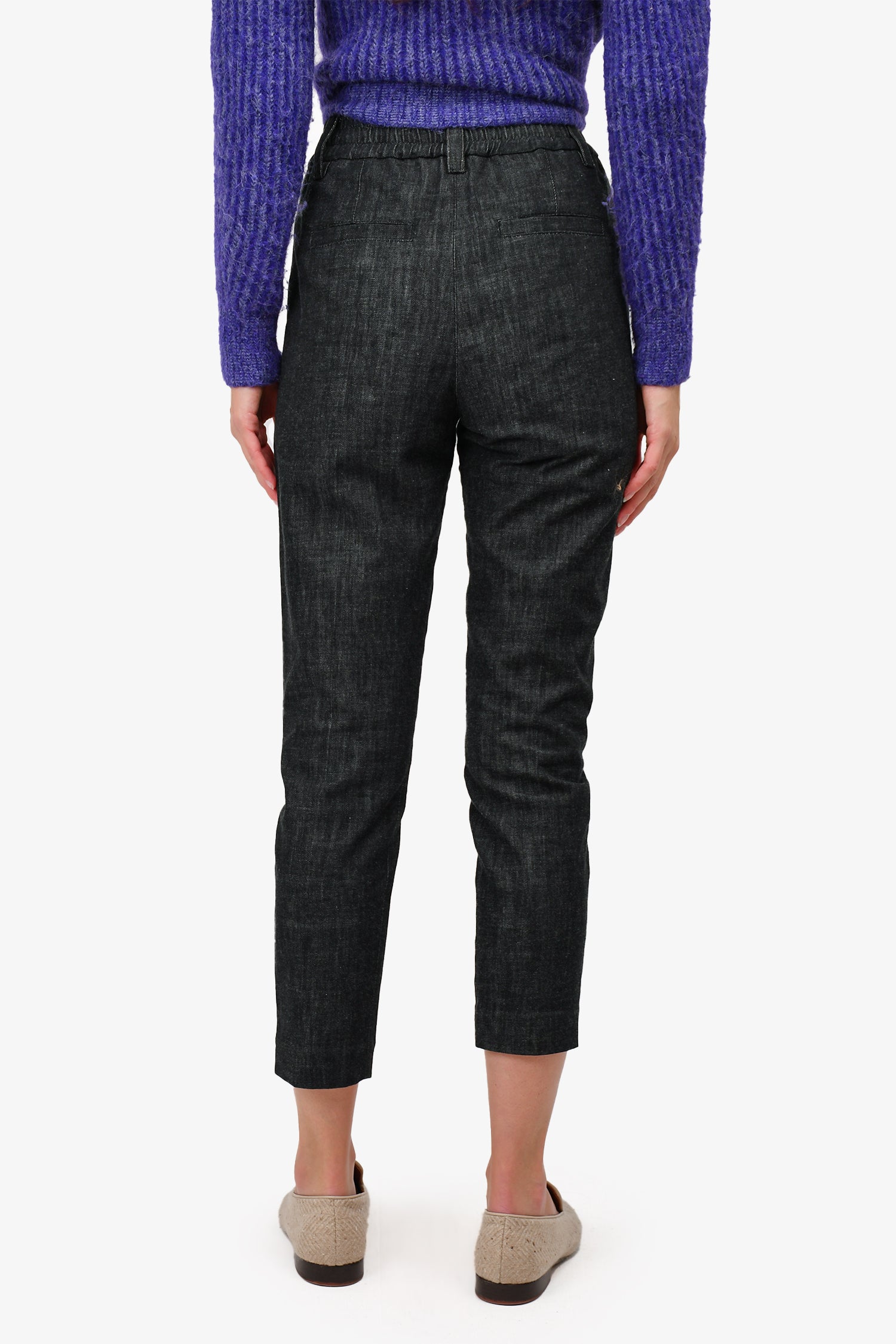 Brunello Cucinelli Dark Wash Soft Cotton Denim Tapered Trousers with Beaded Detail Size 0