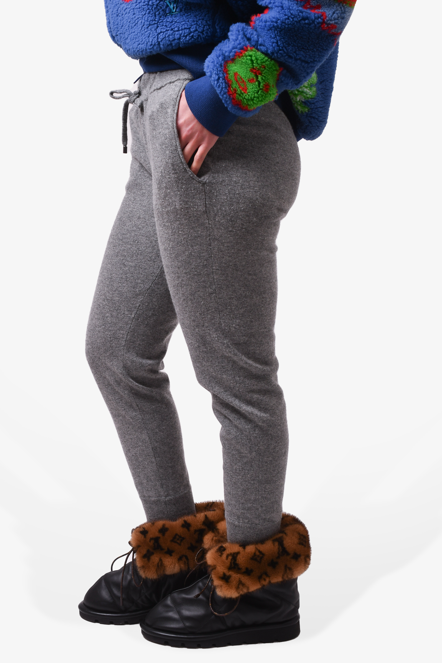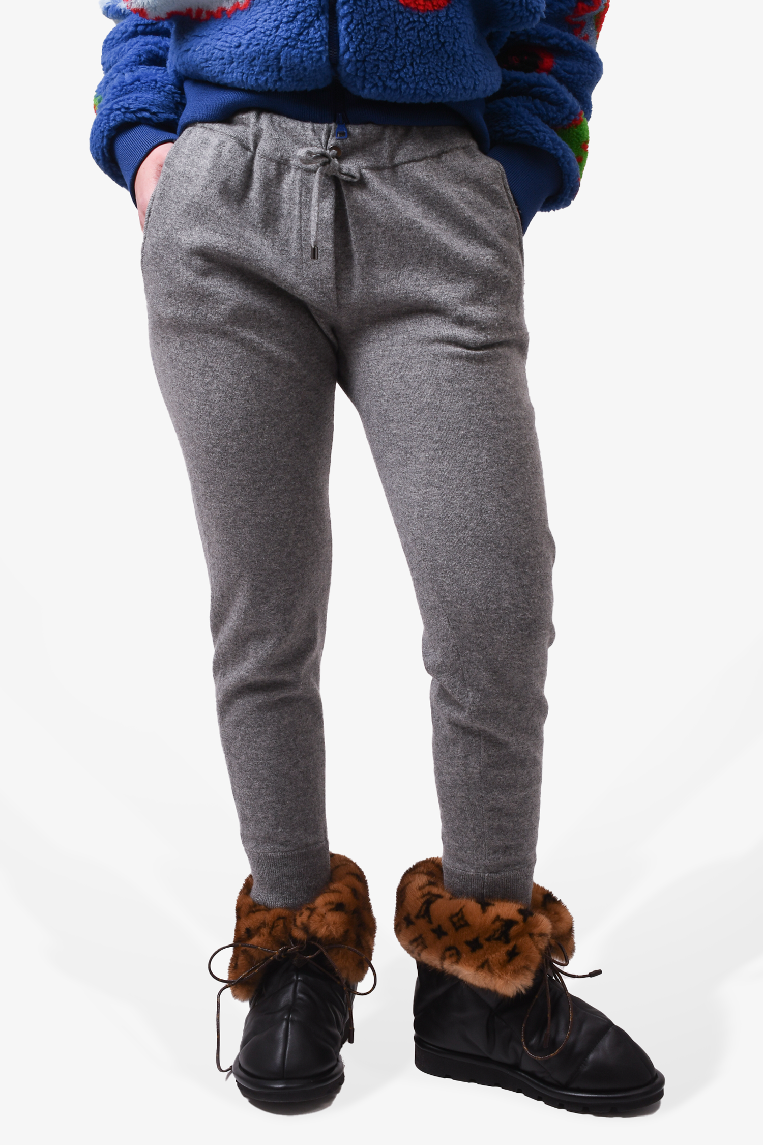 Refresh availabilityBrunello Cucinelli Grey Cashmere Jogging Pants. Front pockets. Elasticized waist. Tonal stitching.