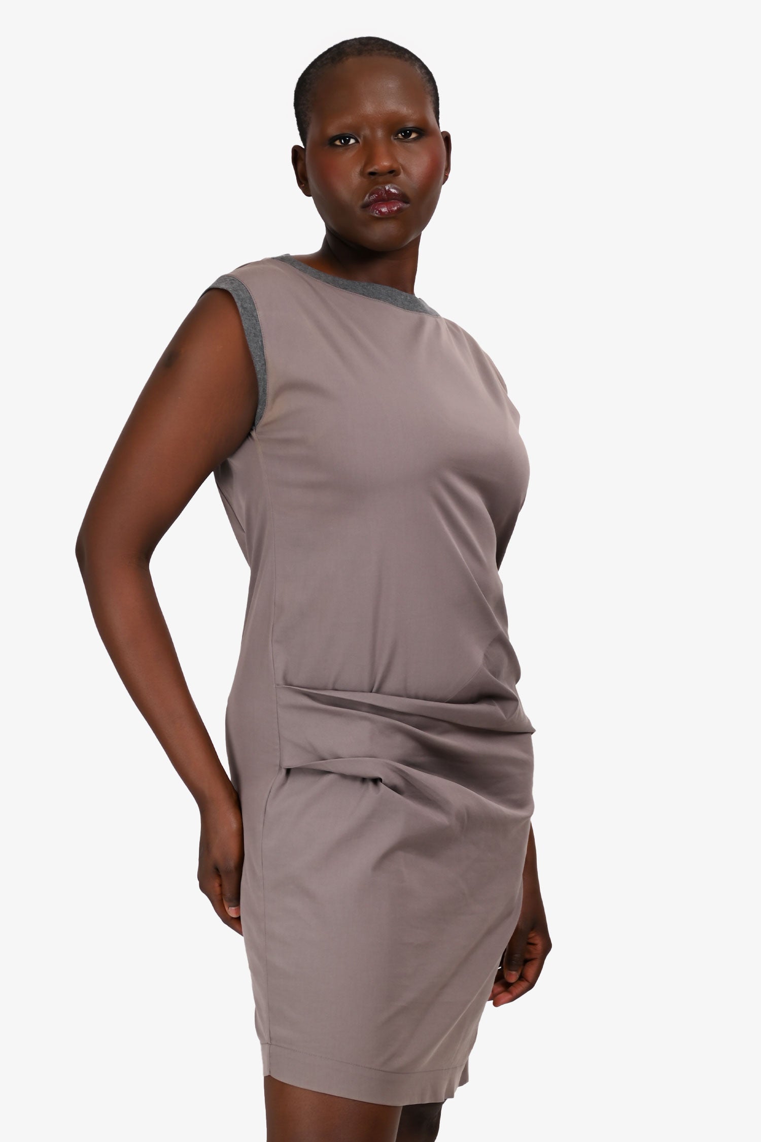 Brunello Cucinelli Grey Cotton Rouched Front Shift Dress Size M