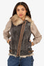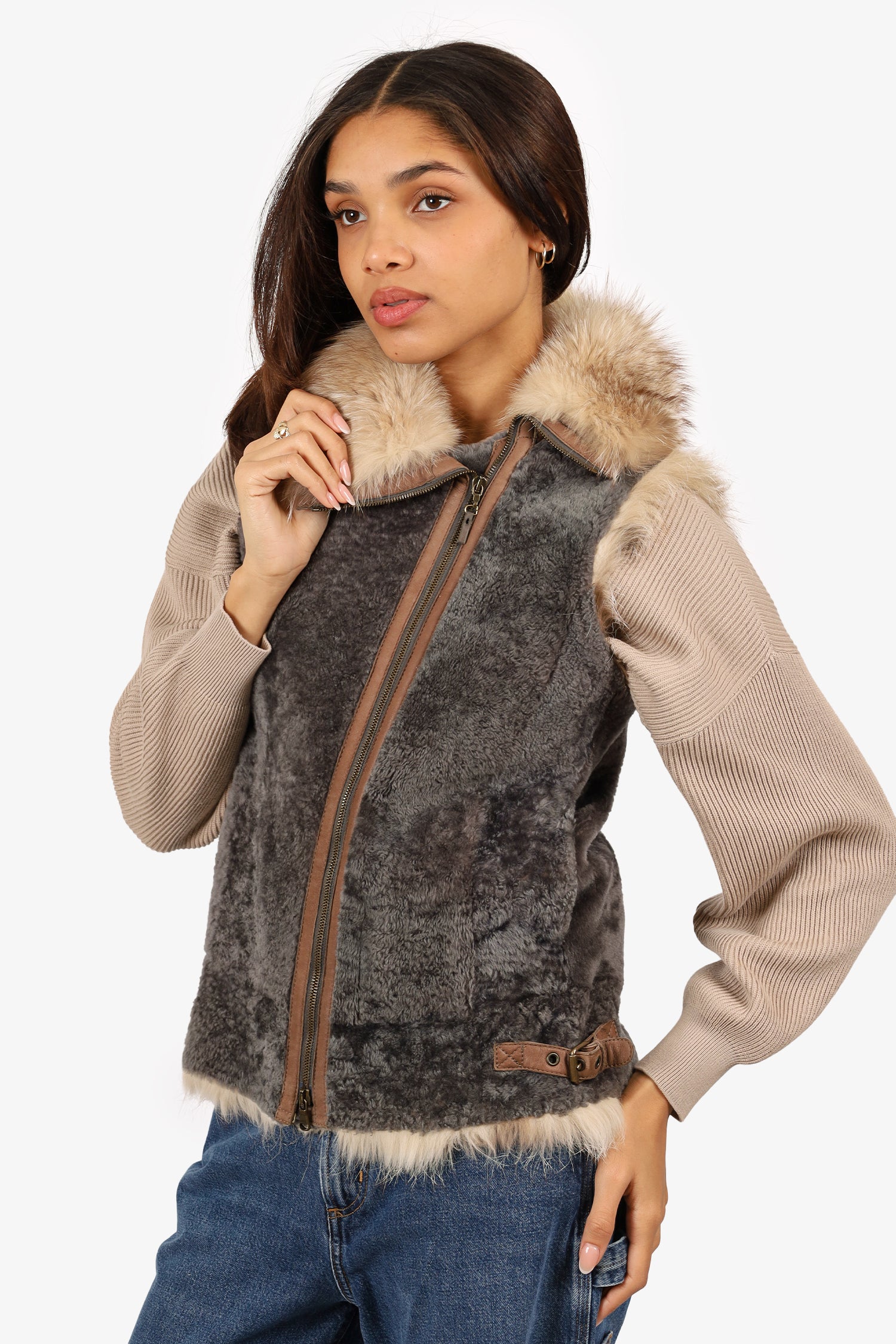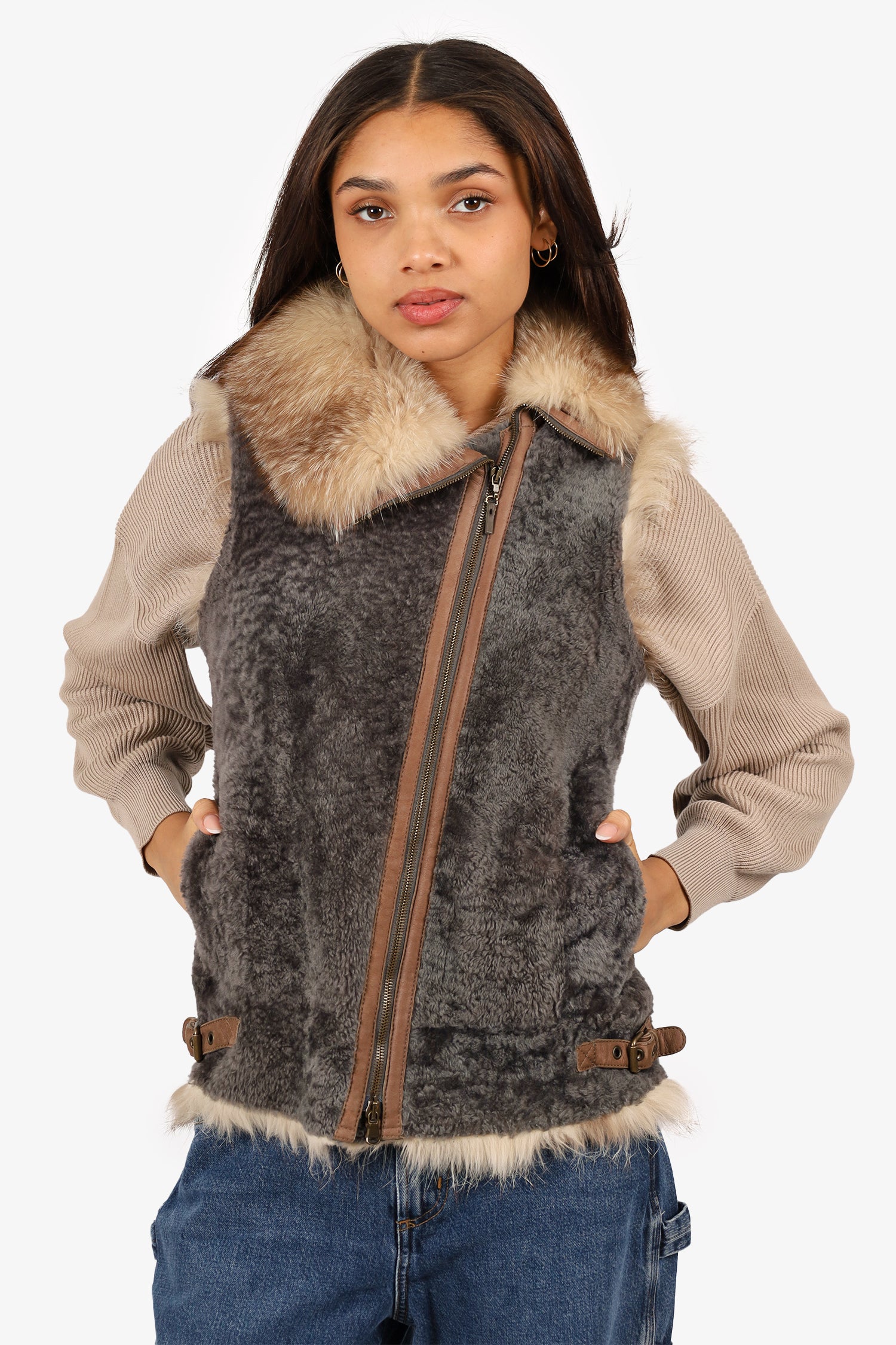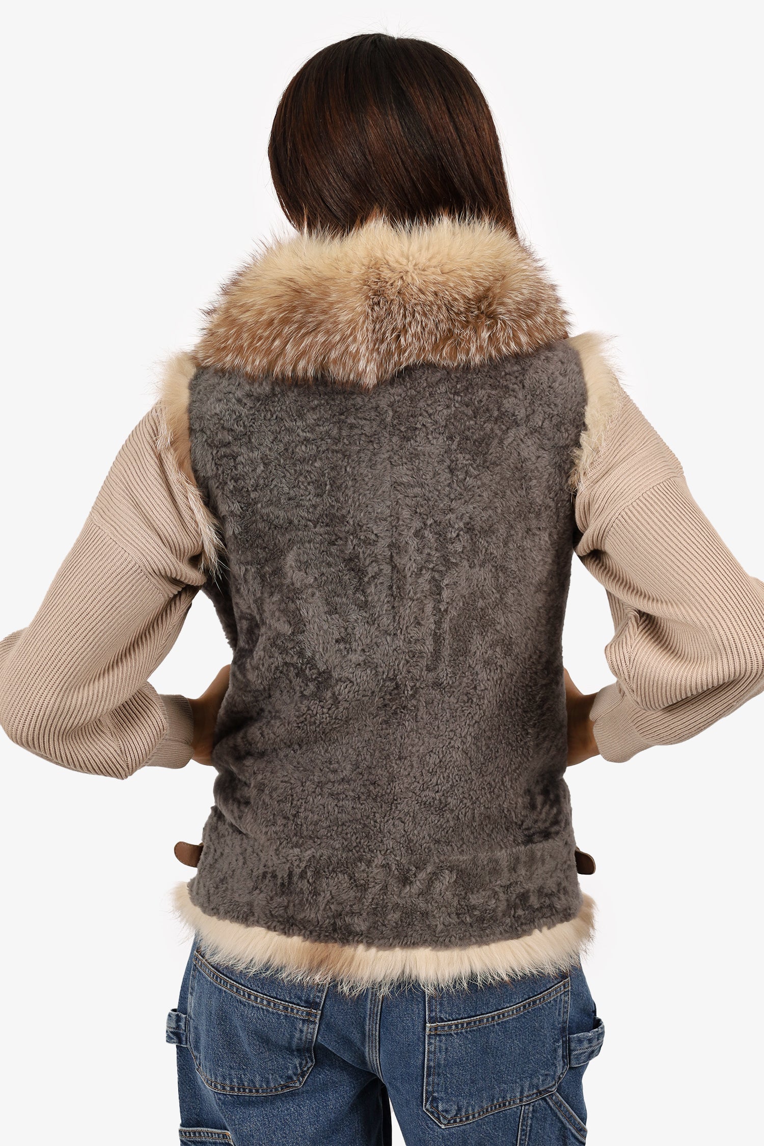 Brunello Cucinelli Grey Shearling Fox Fur Trim Gilet Size 38