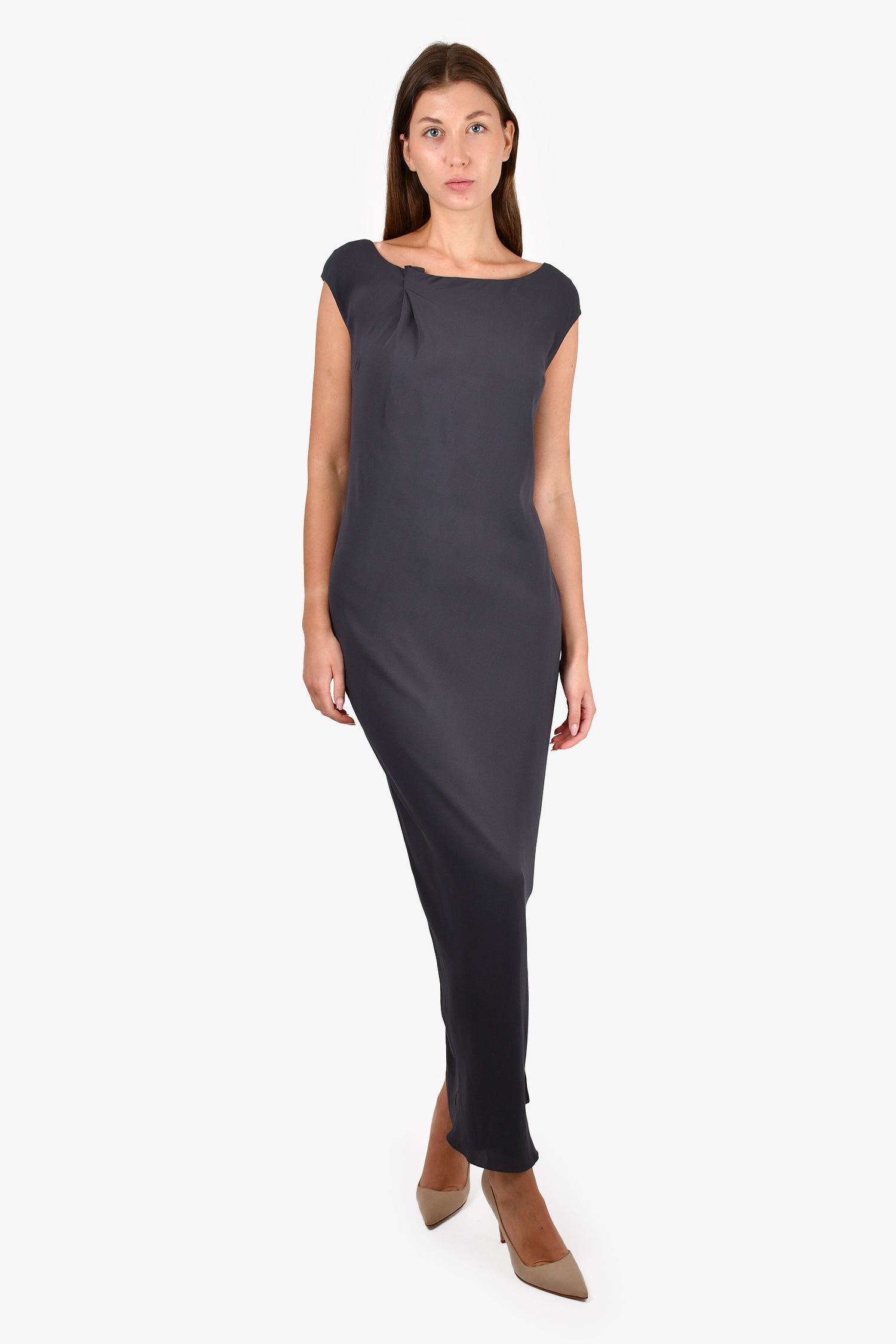 Refresh availabilityBrunello Cucinelli Grey Silk Sleeveless Maxi Dress. Round neck. Lined. Tonal stitching.