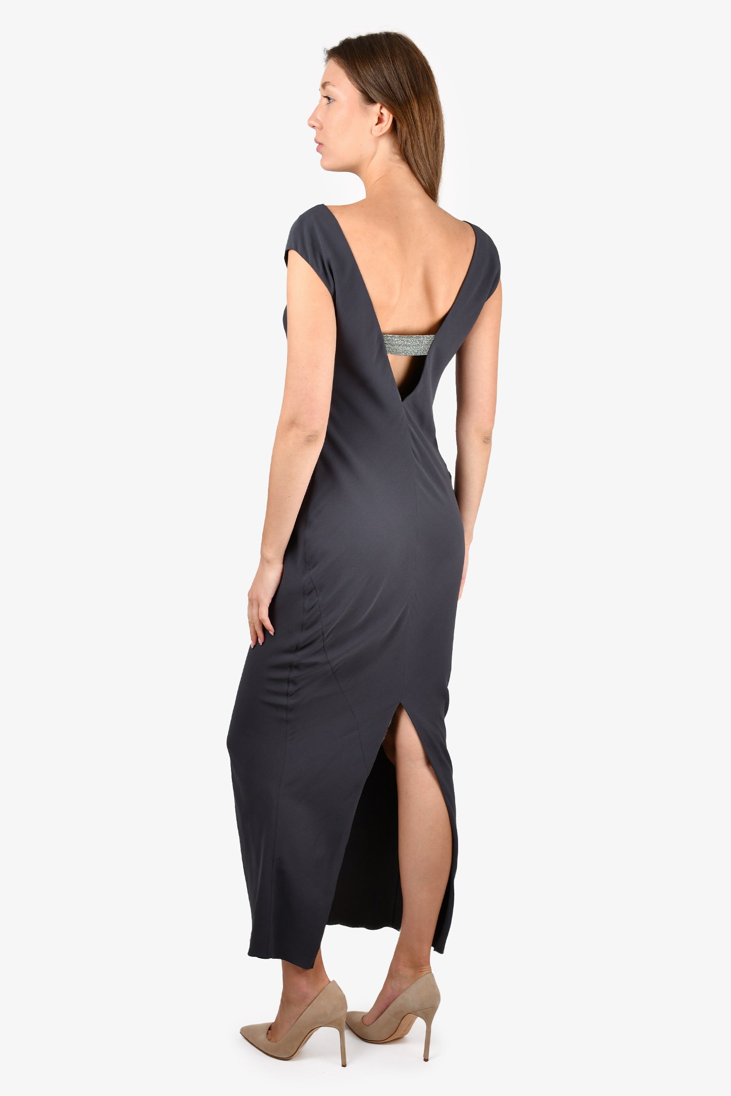 Brunello Cucinelli Grey Silk Sleeveless Maxi Dress Size L