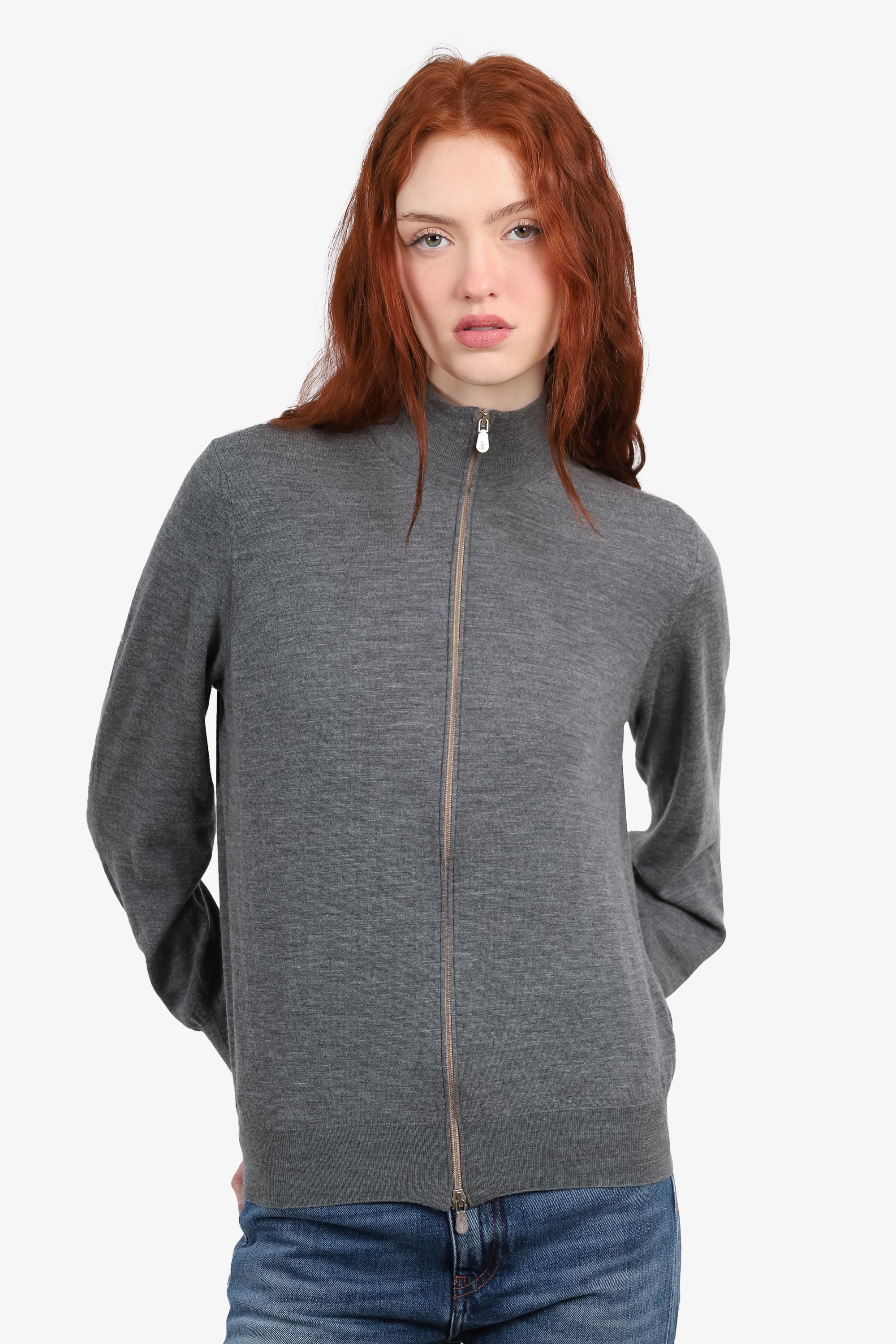 Brunello Cucinelli Grey Wool/Cashmere Zip-up Sweatshirt Size 48