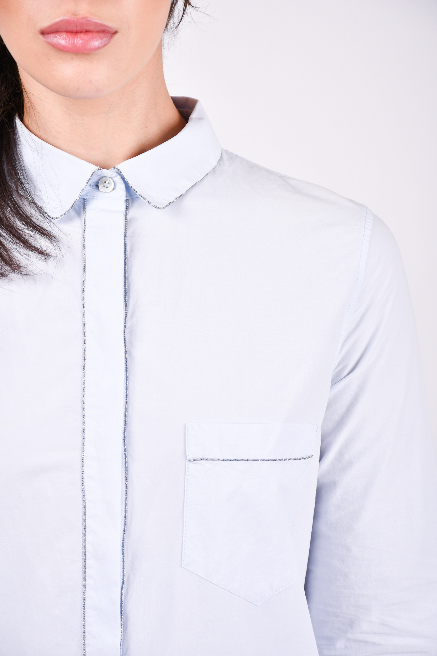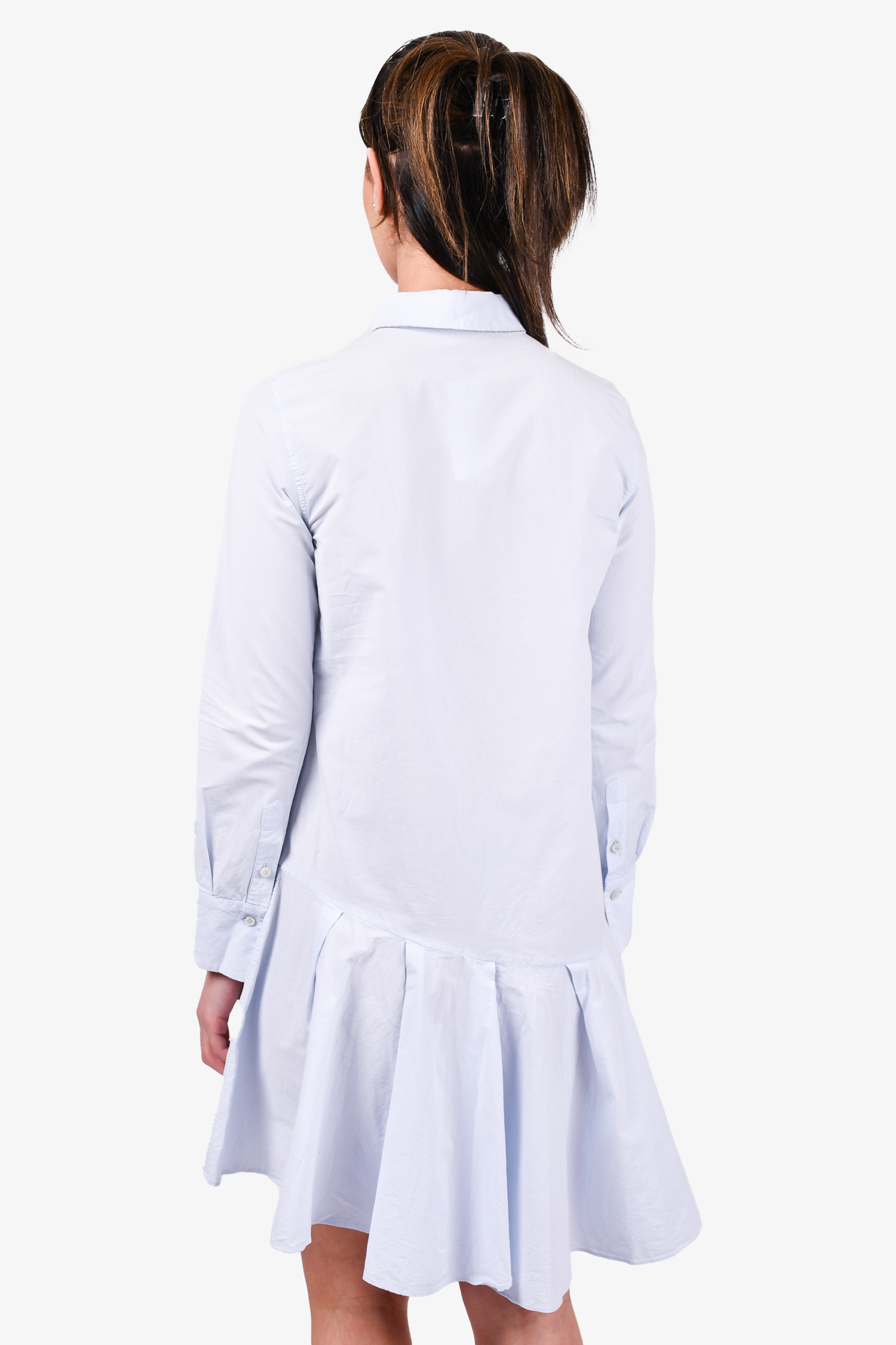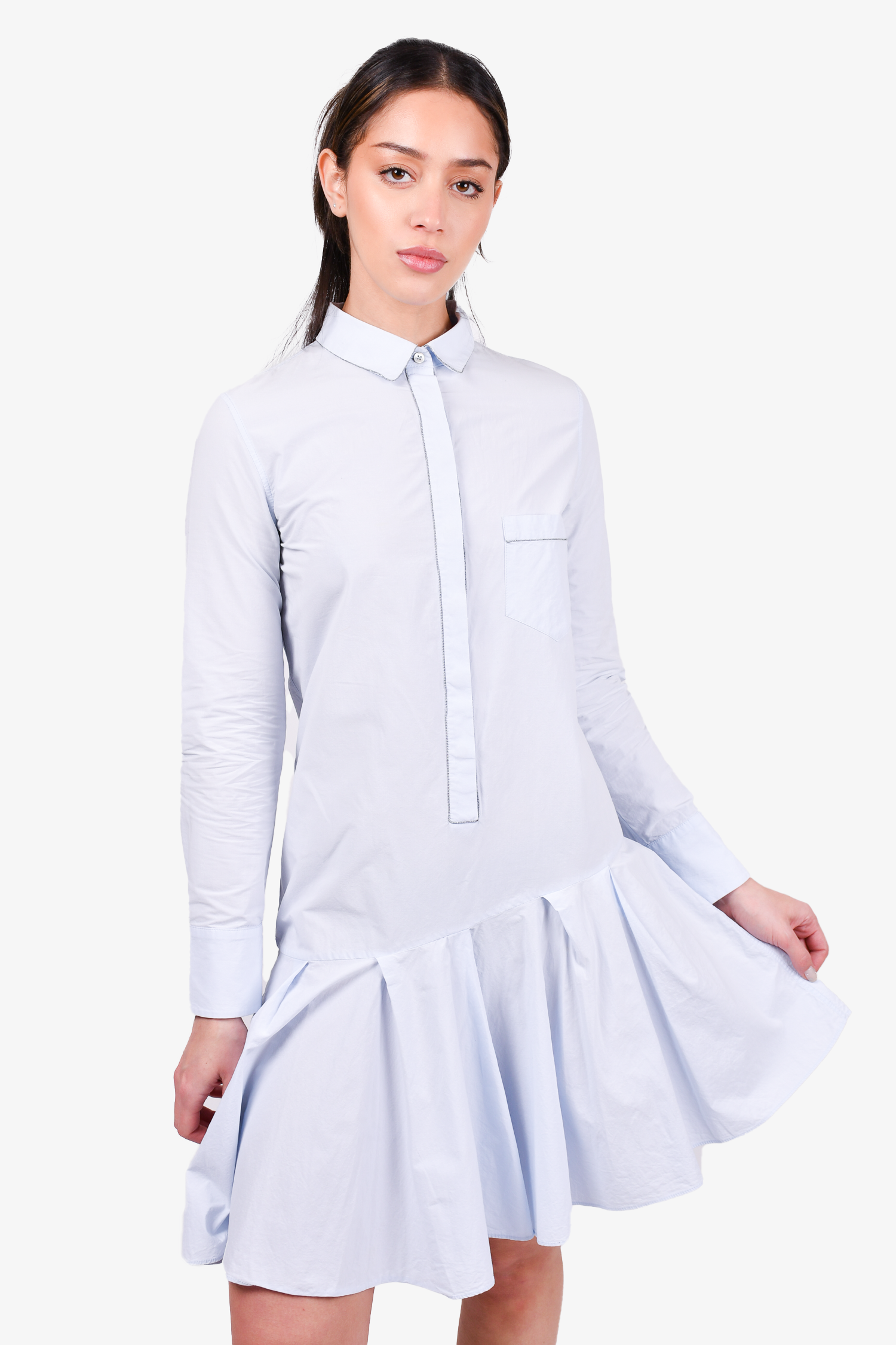 Refresh availabilityBrunello Cucinelli Light Blue Cotton Button Flared Dress. 1 front slip pocket. Half button up front closure. Unlined. Tonal stitching.