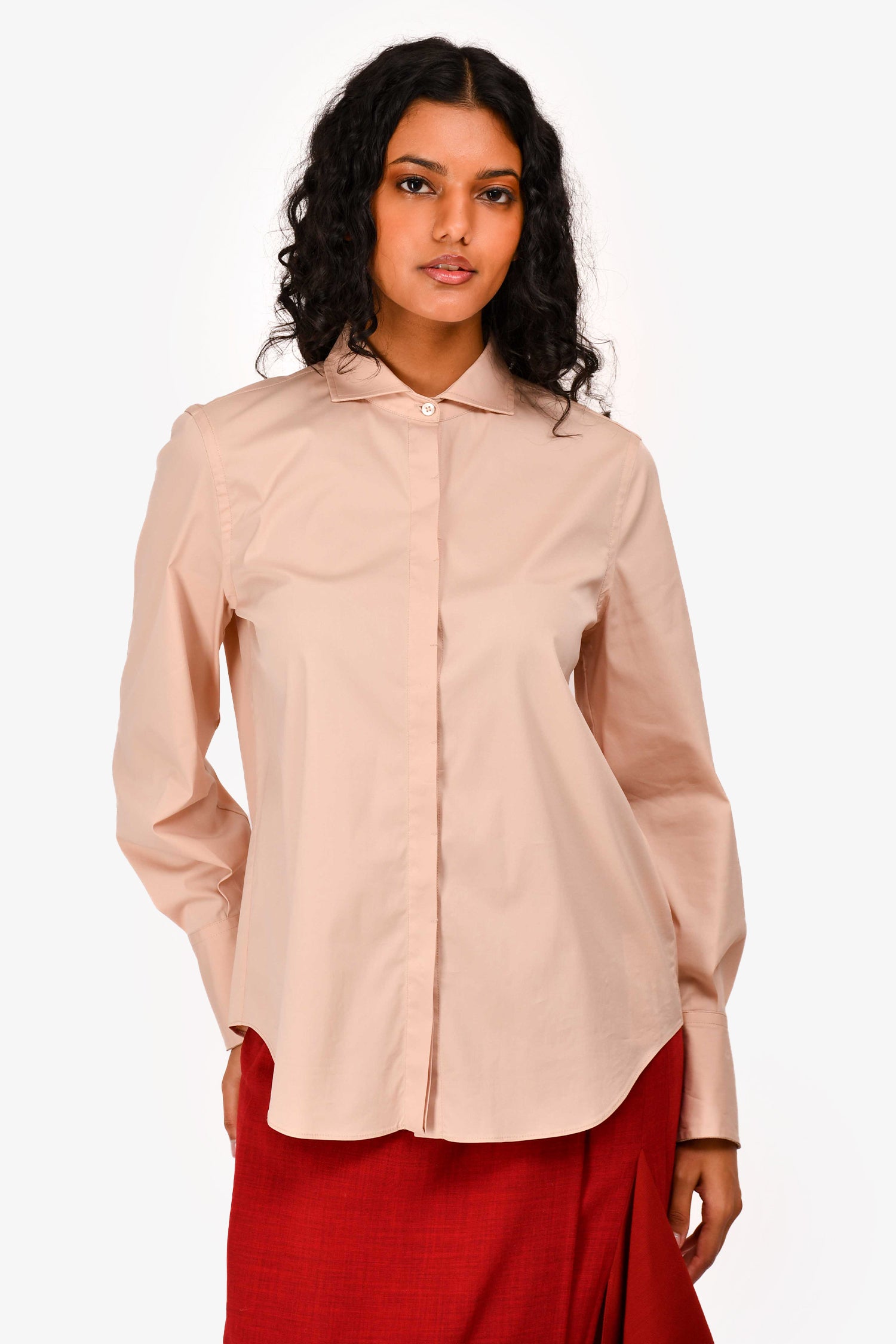 Refresh availabilityBrunello Cucinelli Peach Cotton Poplin Button-Up Shirt with Bead Cuff Trim. Front button-down closure. Button closure on cuffs. Tonal stitching.