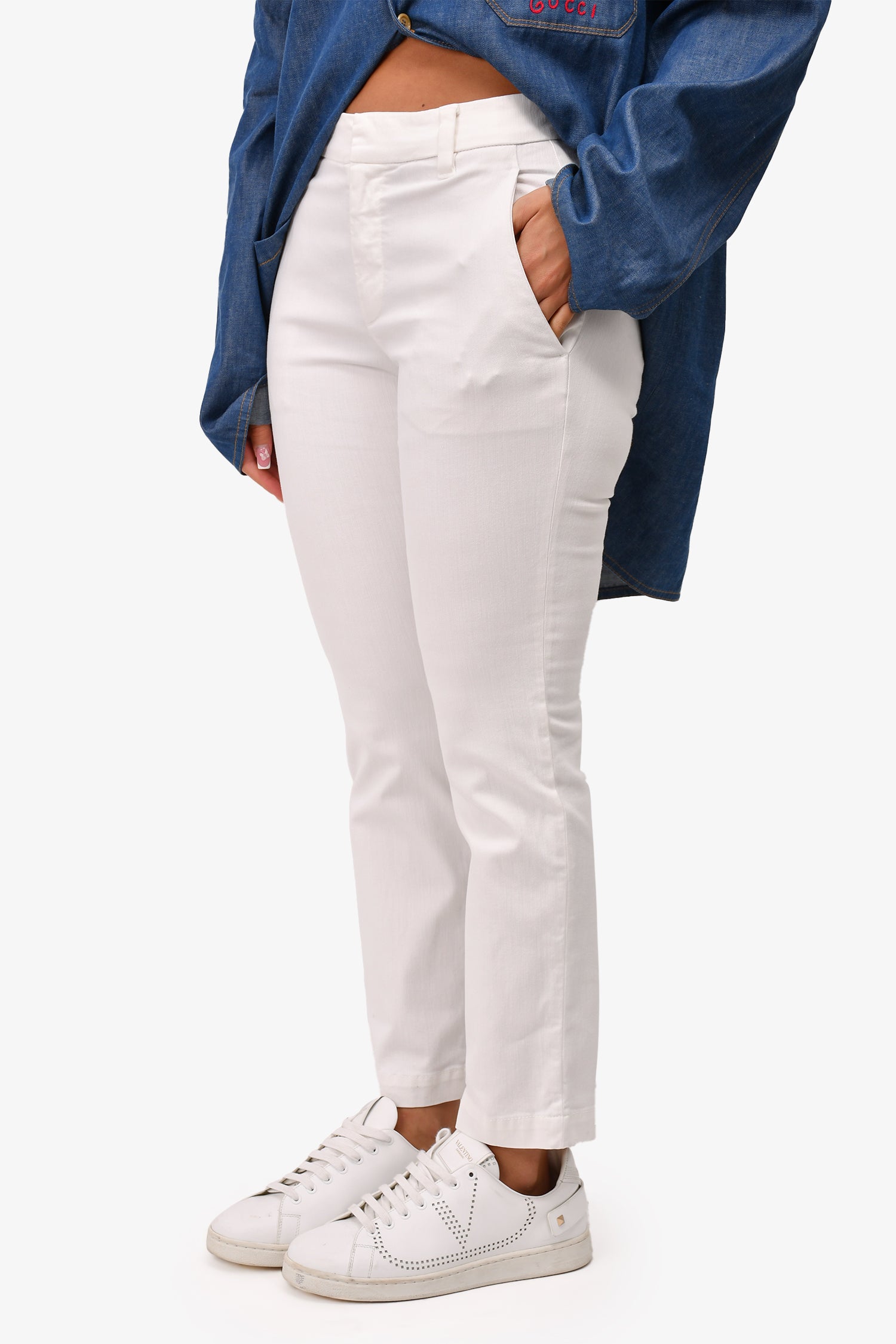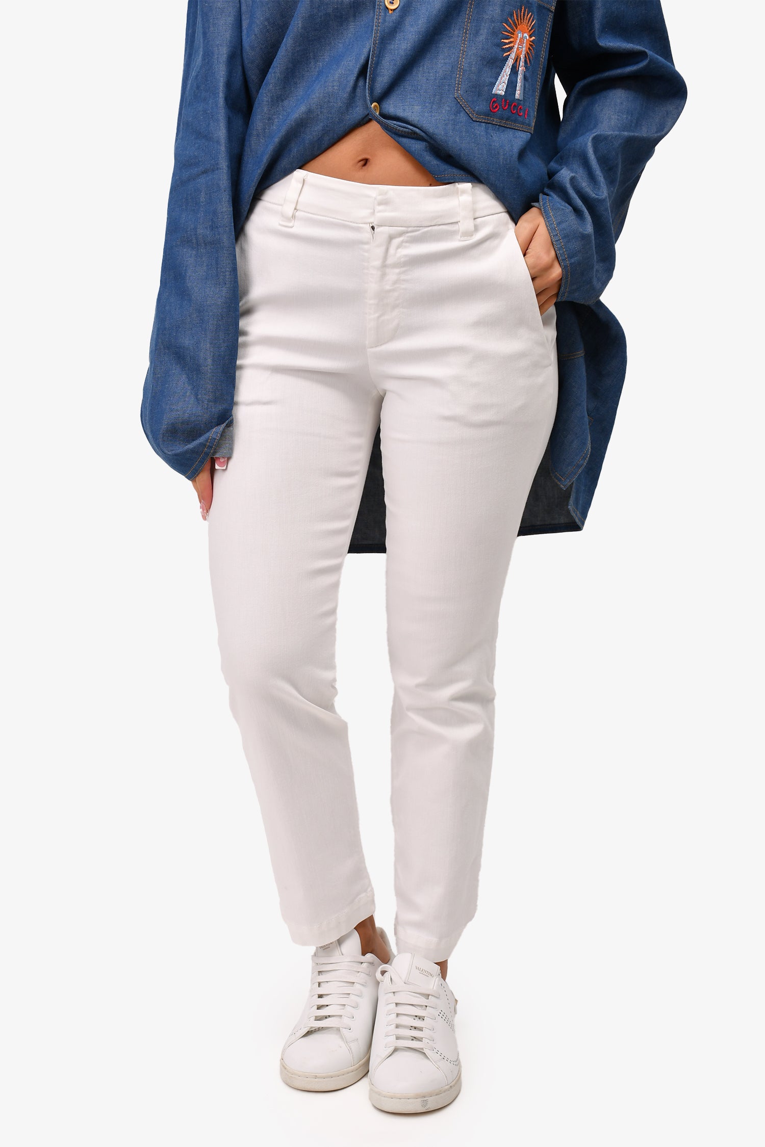 Brunello Cucinelli White Denim Beaded Detail Tapered Leg Pants Size 0