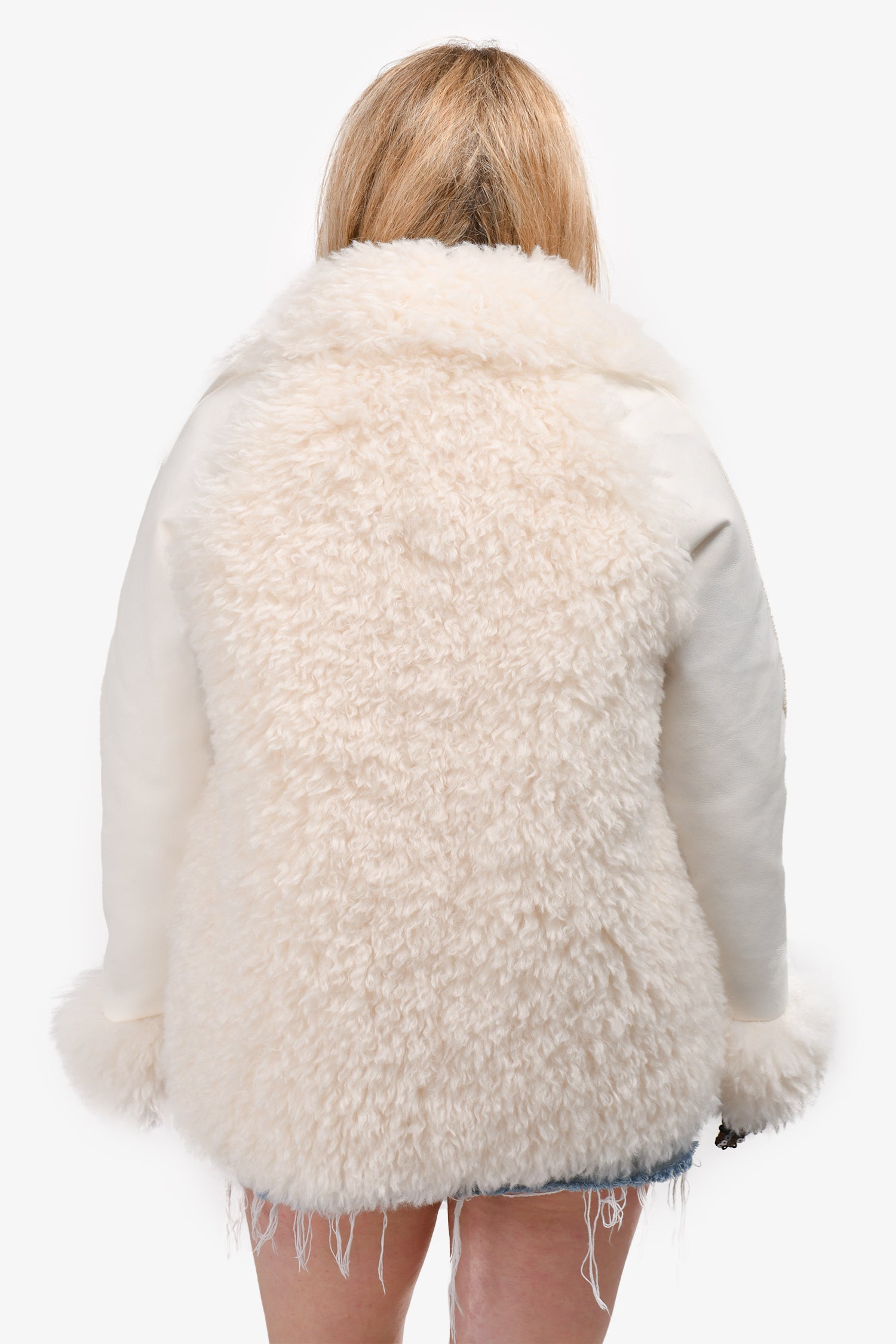 Refresh availabilityBubishluxe White Faux Fur Jacket. Front zip-up closure. Two front pockets. Silver-tone hardware. Tonal stitching.