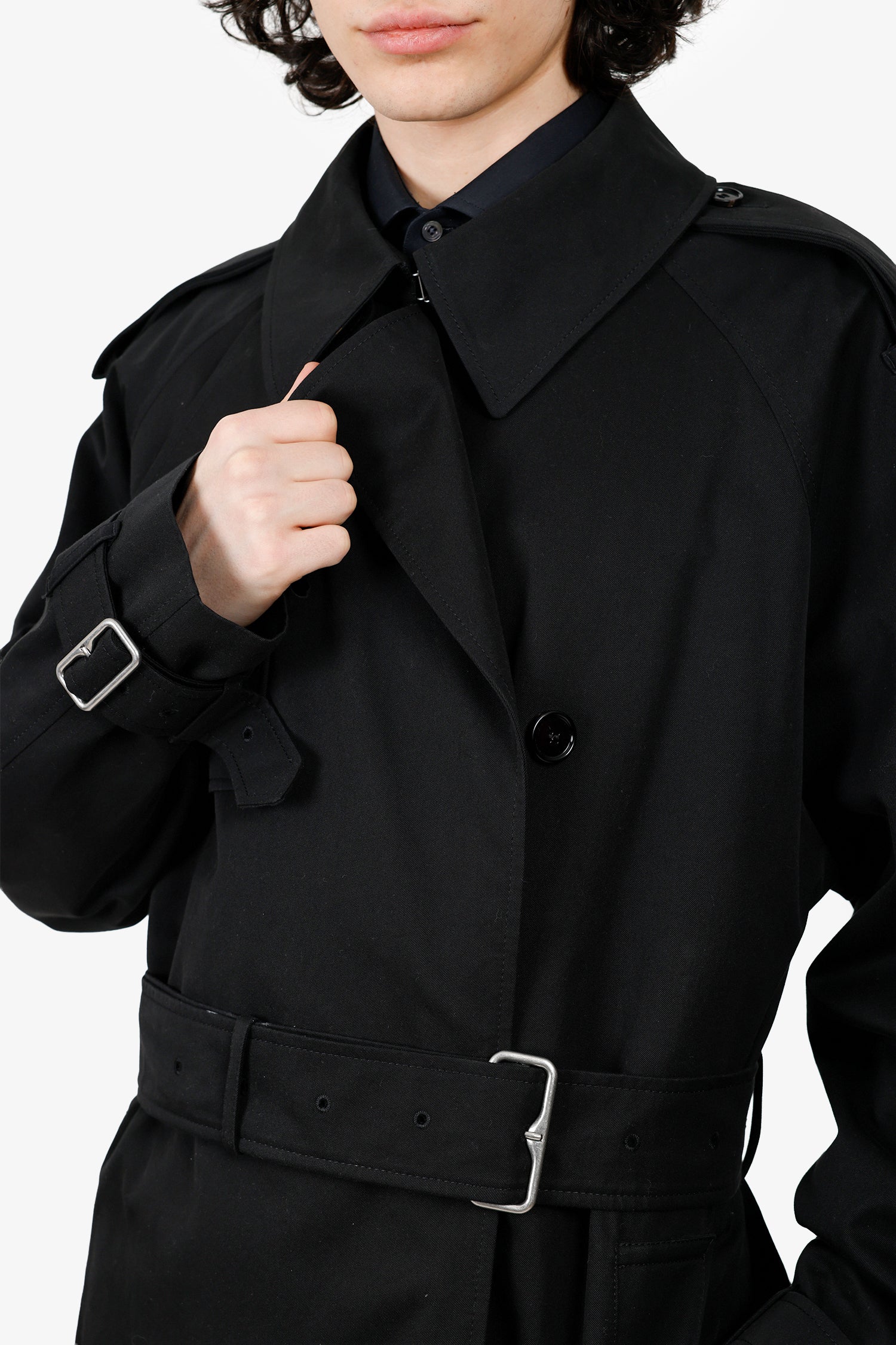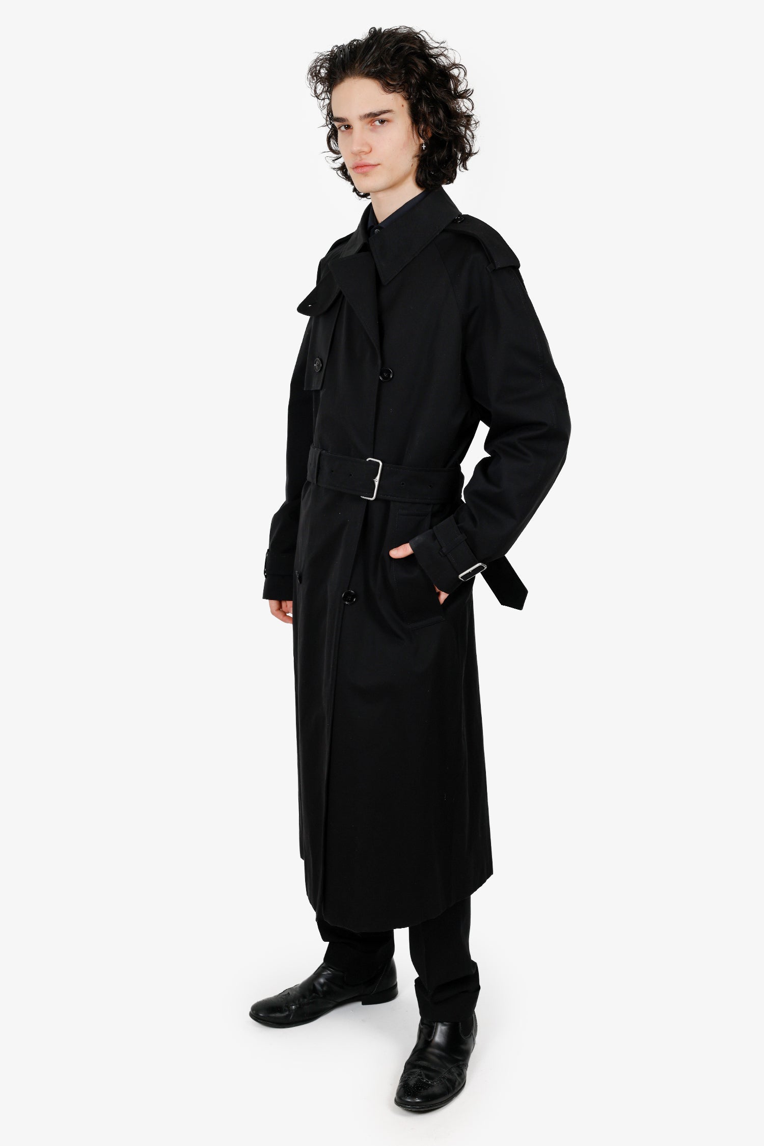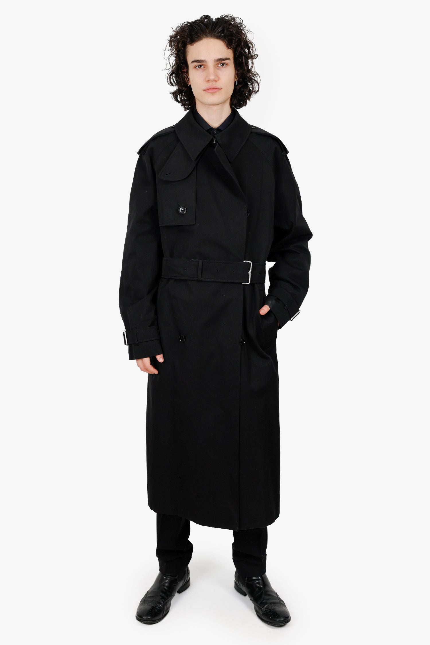 Burberry 2024 Black Cotton Double Breasted Belted Long Trench Coat Size 50