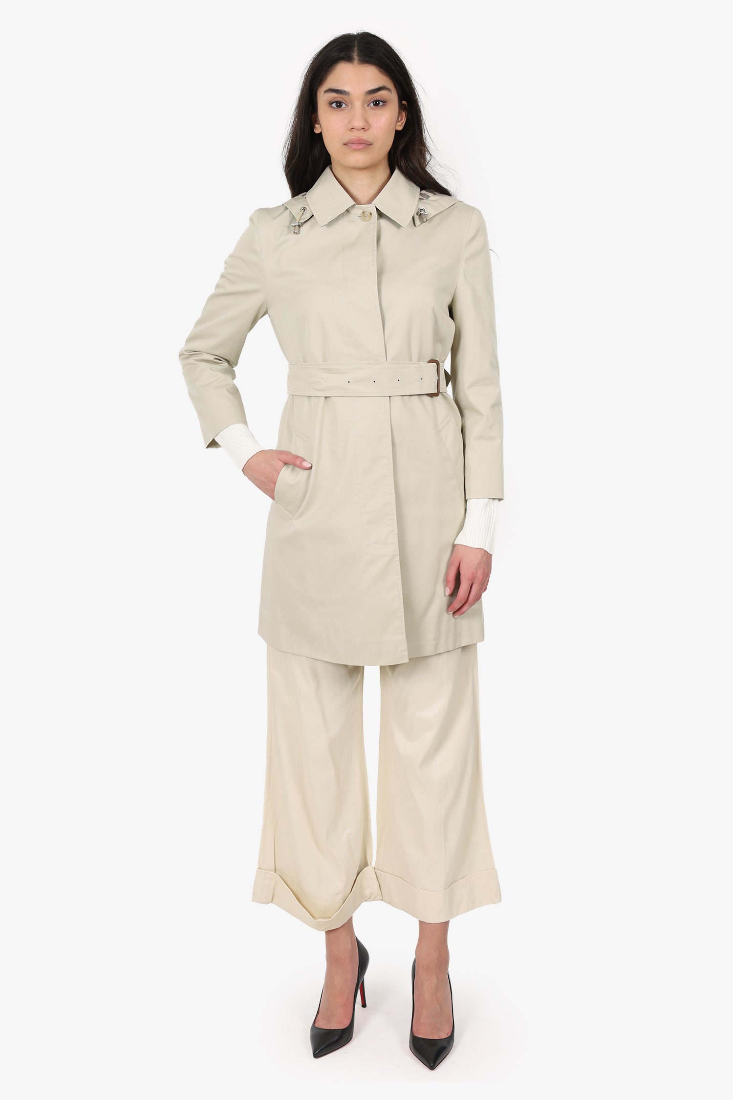 Burberry Beige Belted Hooded Trench Coat Estimated Size S