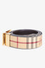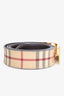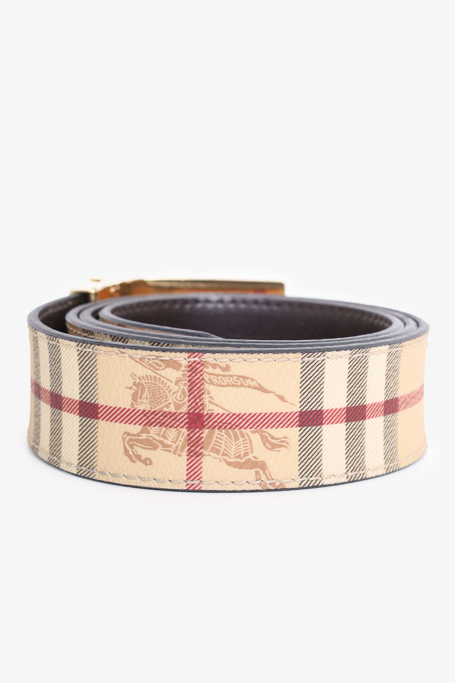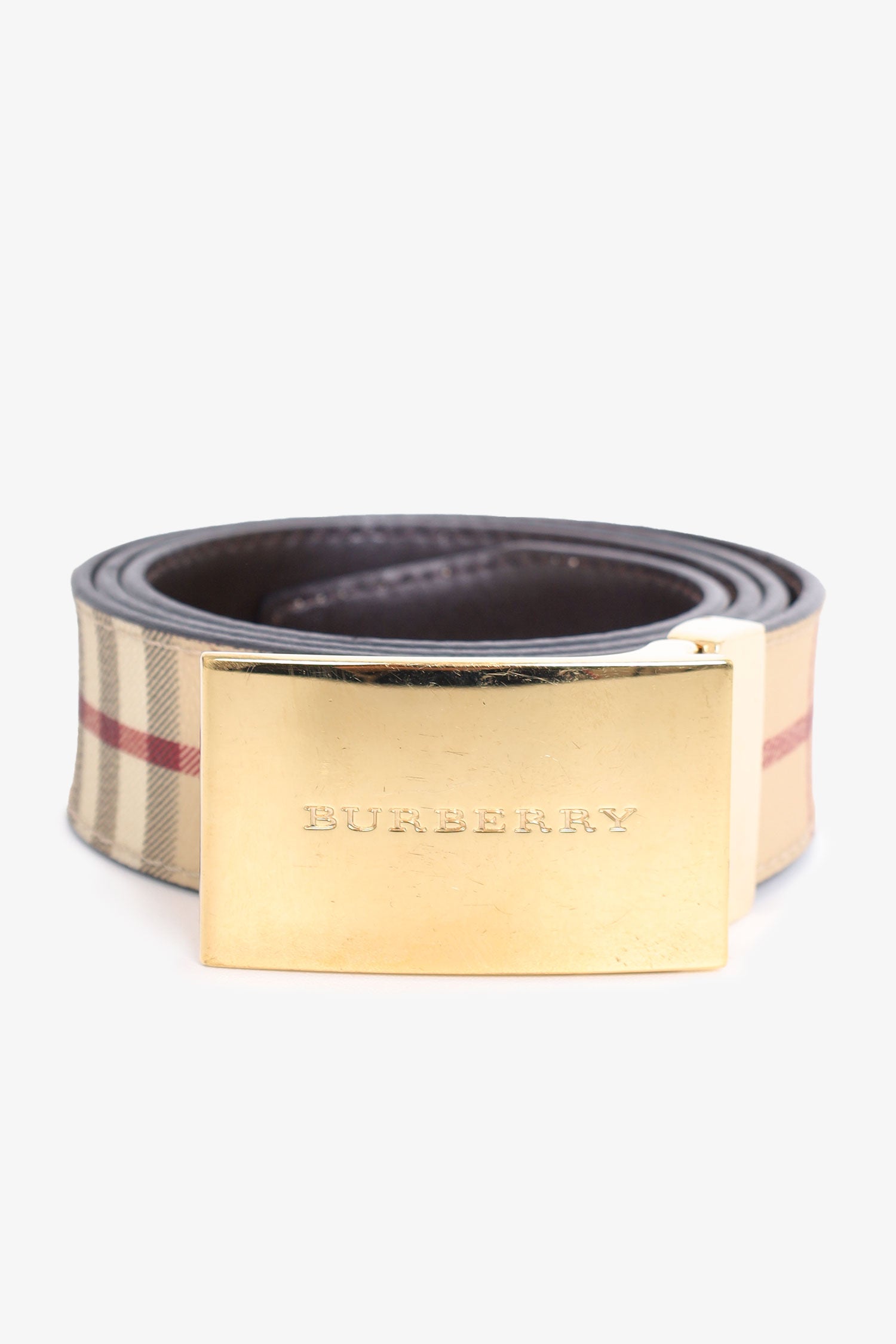 Refresh availabilityBurberry Beige Leather Check Belt. Gold-tone hardware. Tonal stitching.