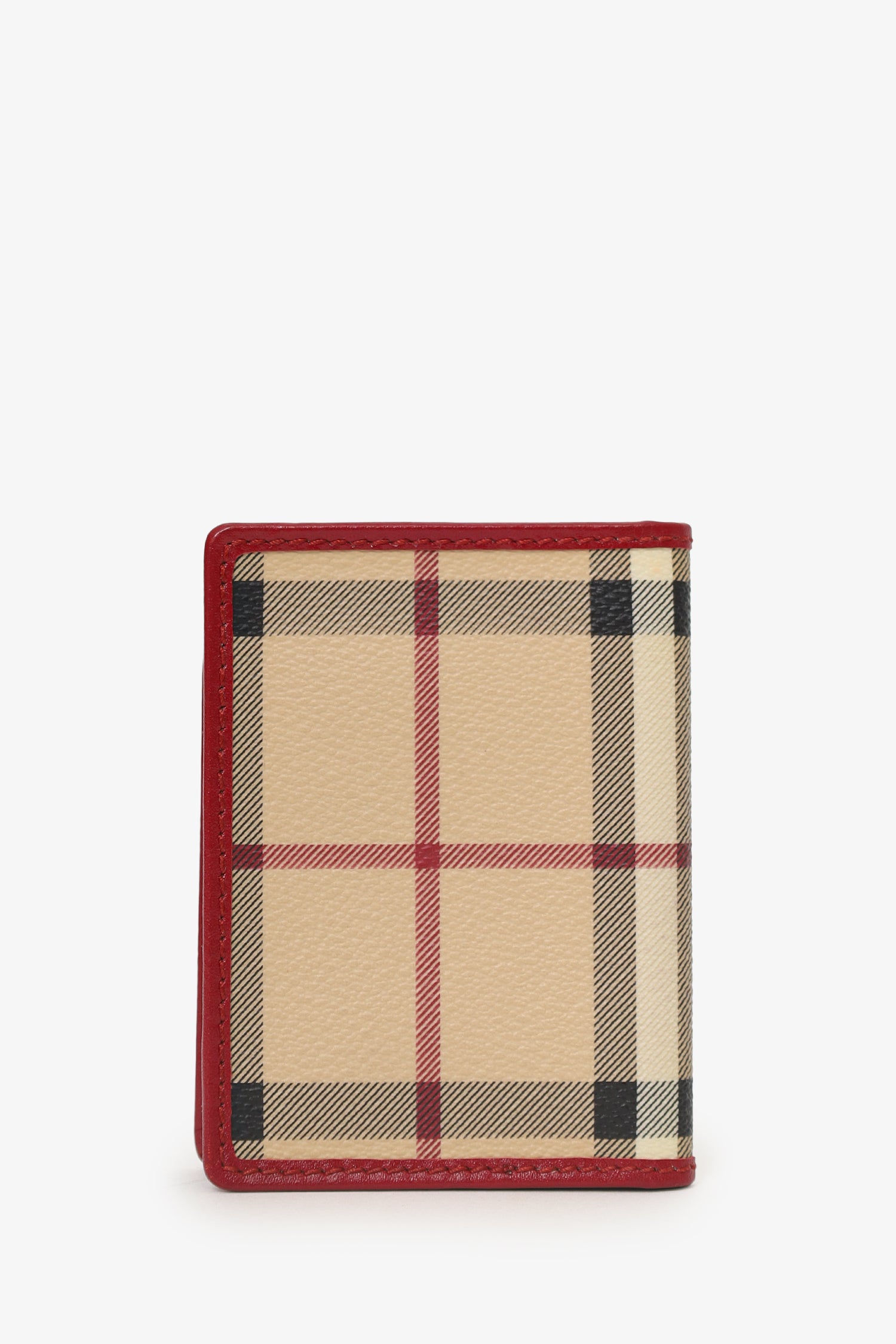 Refresh availabilityBurberry Beige Nova Check Bi-Fold Wallet. Leather-lined interior with 4 pockets; 2 card slots, and 2 slip pockets. Tonal stitching.