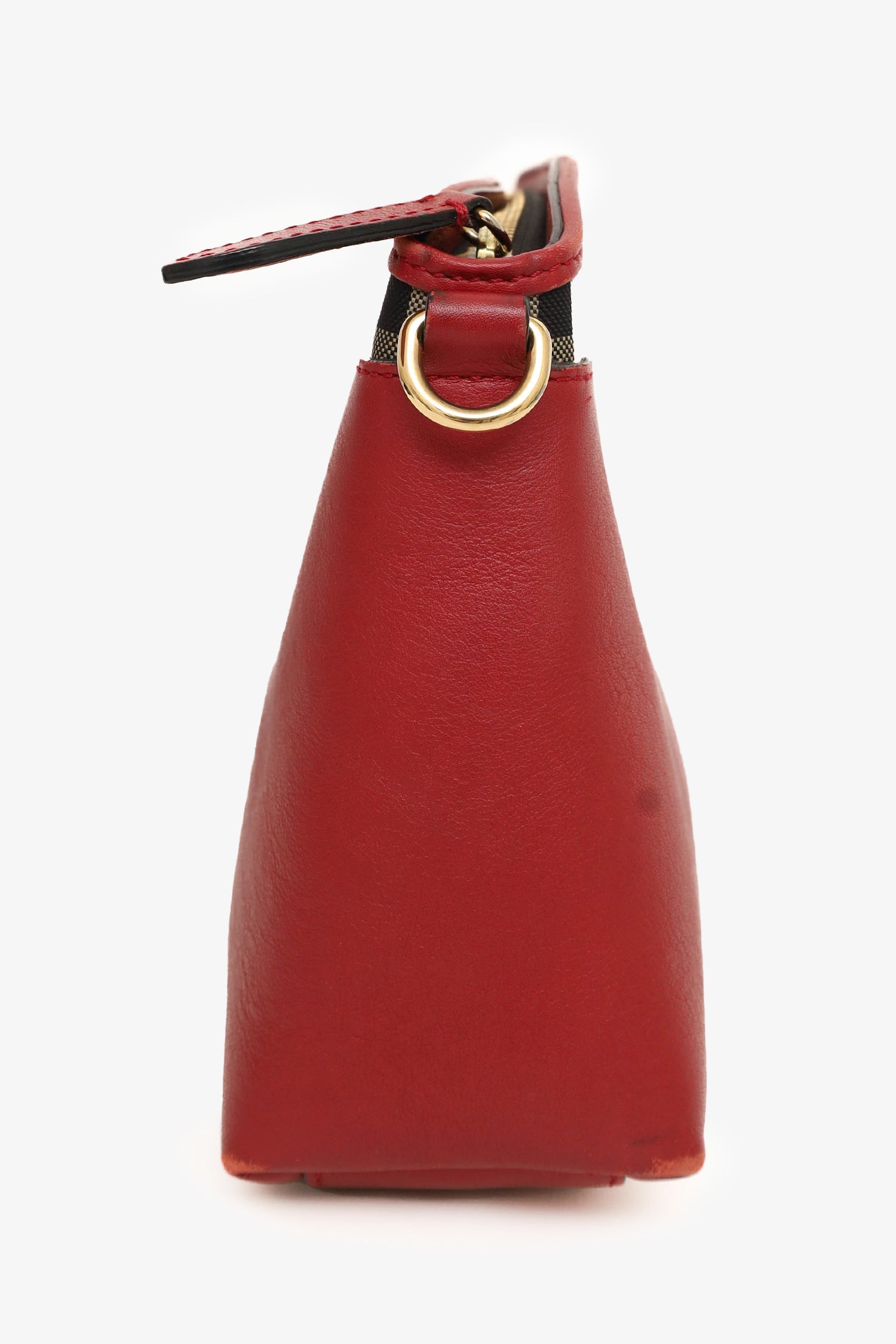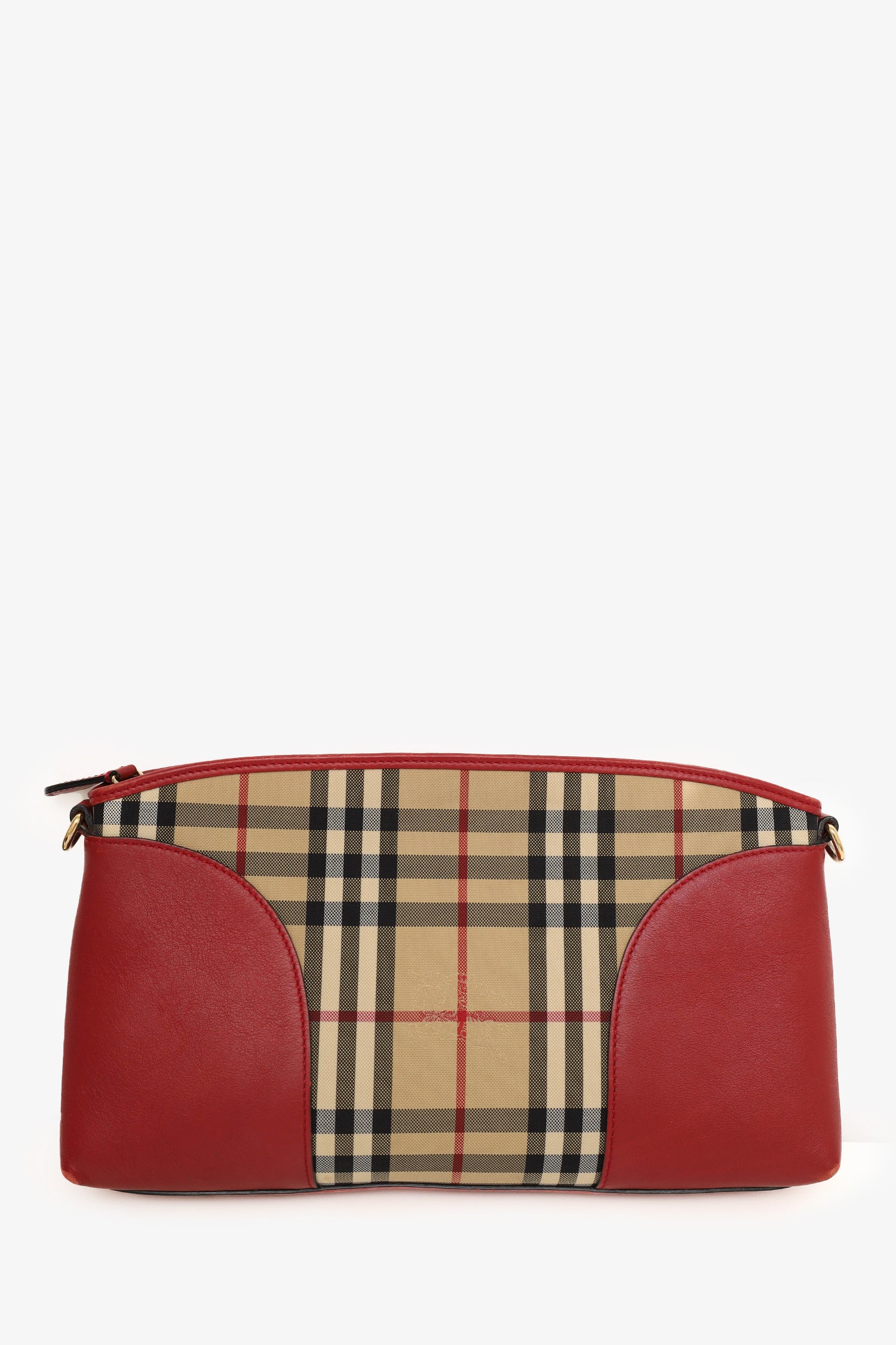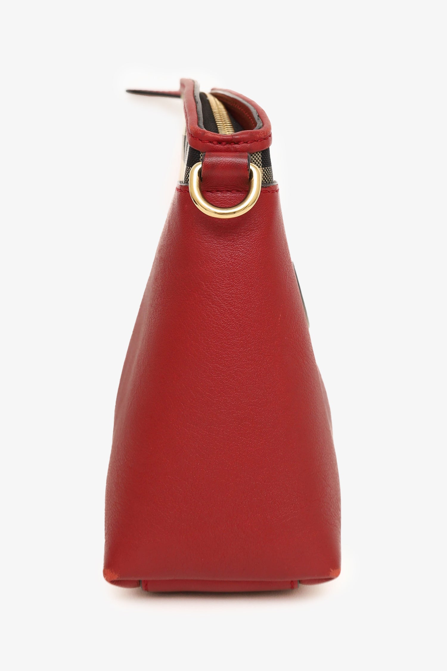 Refresh availabilityBurberry Beige/Red Horseferry Check Small Chichester Crossbody Bag. Top-zip closure. 2 interior pockets; 1 slip and 1 with a zip closure. Removable adjustable strap. Gold-tone hardware. Tonal stitching.