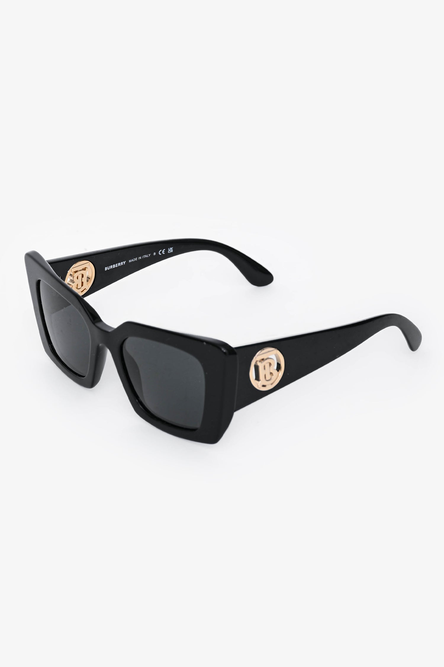 Refresh availabilityBurberry Black Acrylic Rectangular Sunglasses. Built-in nose pads. "B" initial motif on the handles.