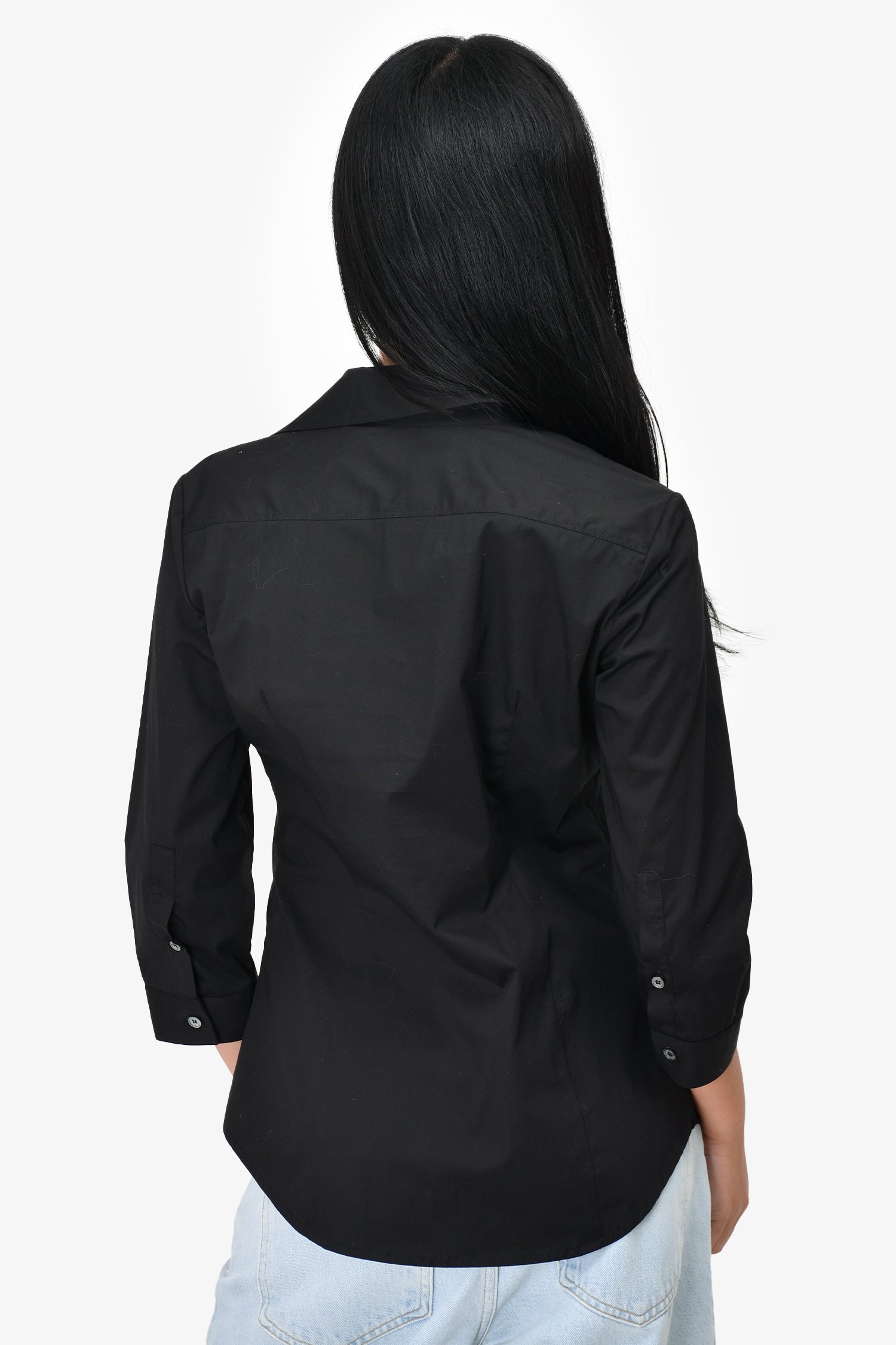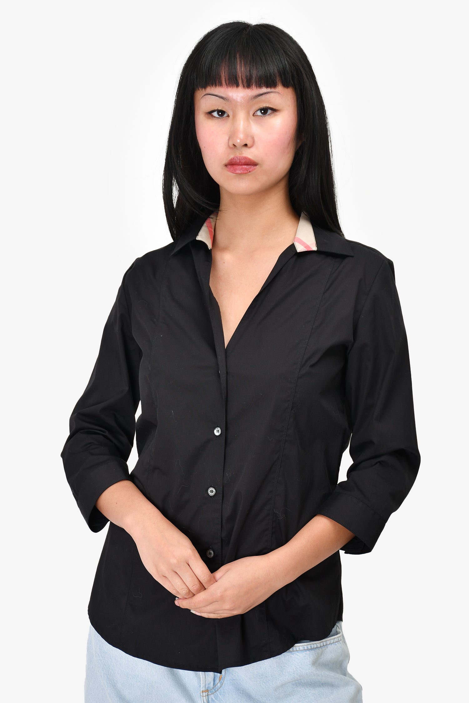 Refresh availabilityBurberry Black Button-Down Top. Quarter sleeve. Button-down closure. Tonal stitching.