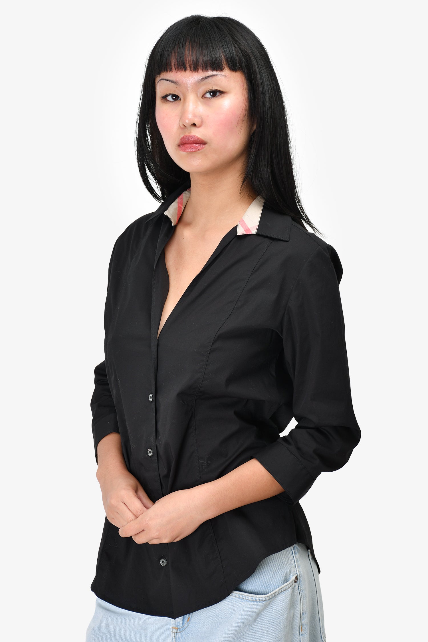 Burberry Black Button-Down Top Size S