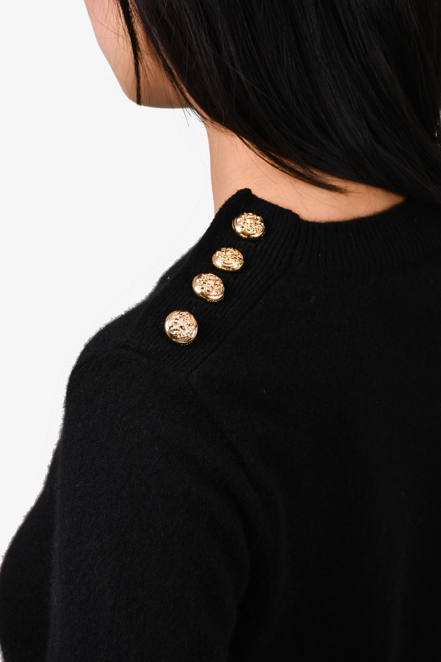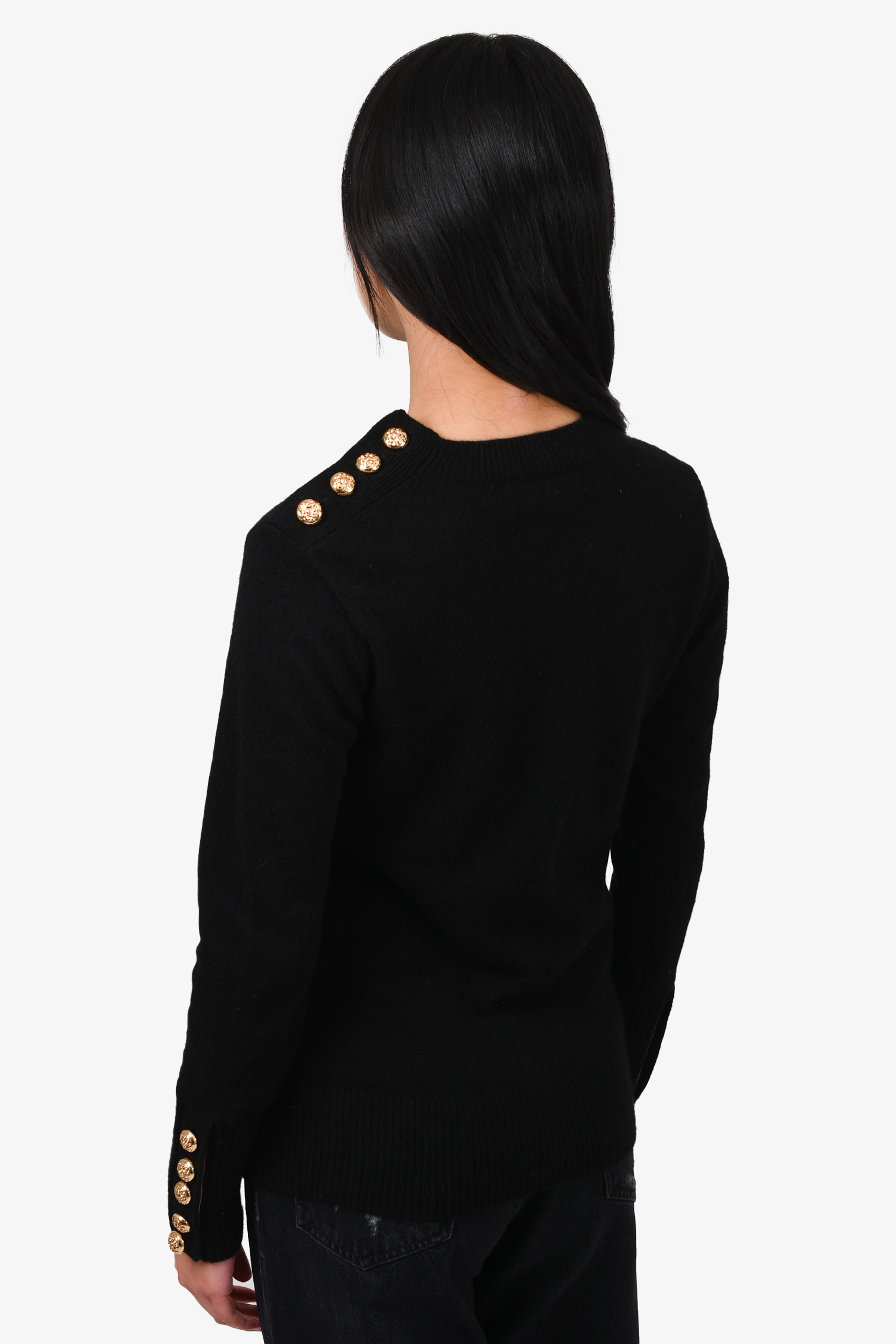 Burberry Black Cashmere Crewneck Gold Buttoned Sweater Size M