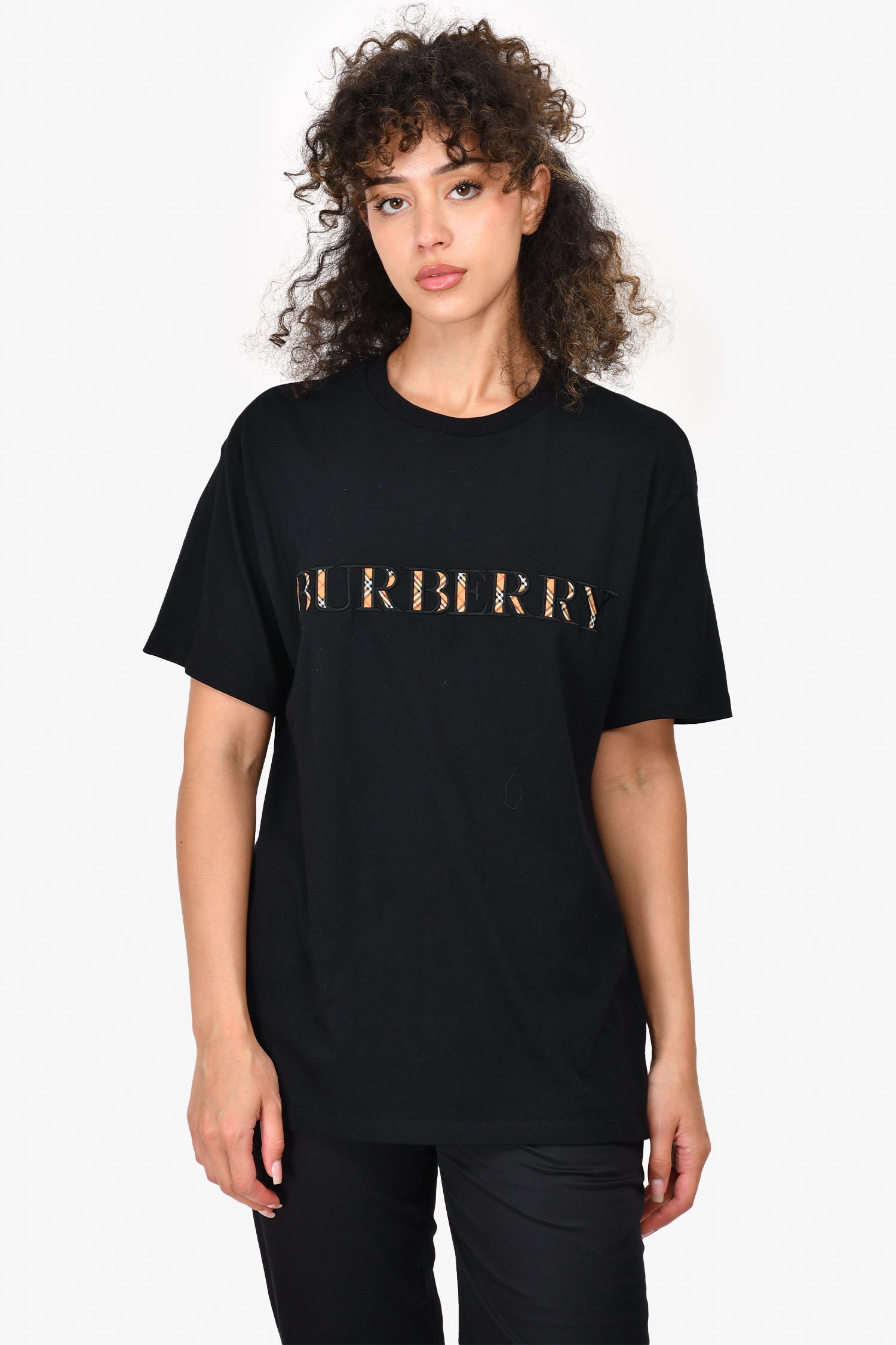 Burberry Black Cotton Nova Check Logo T-Shirt Size M