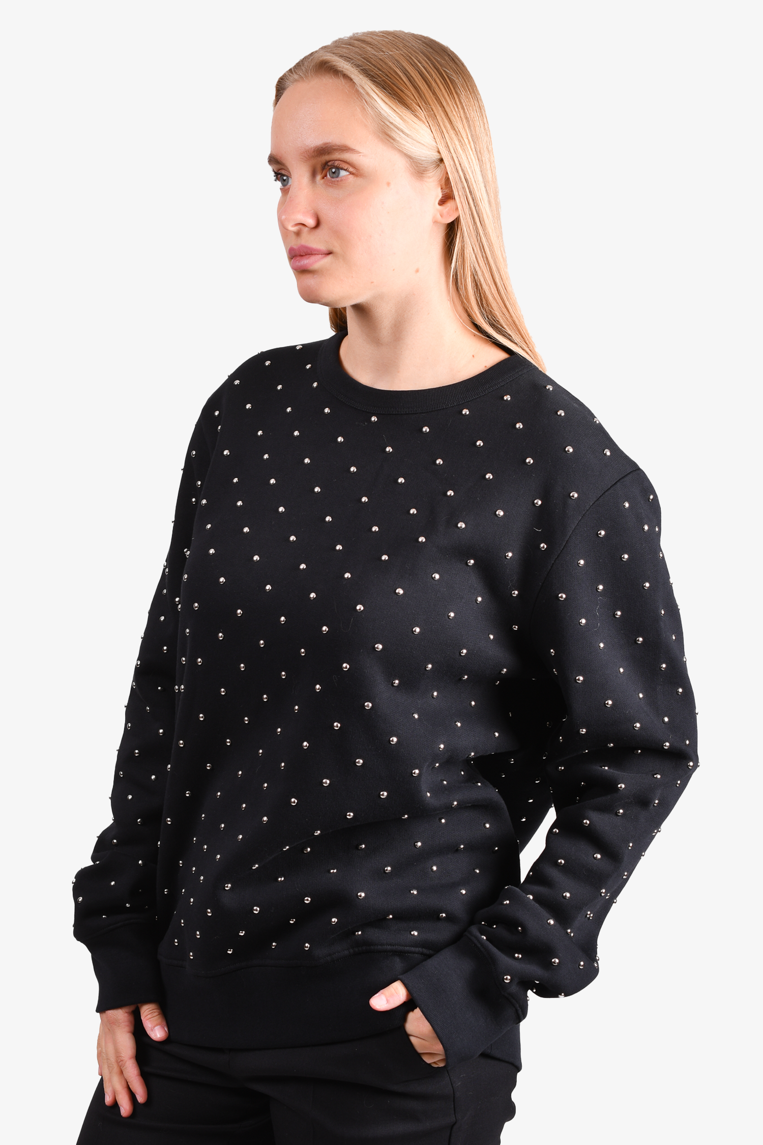 Refresh availabilityBurberry Black Cotton Studded Sweatshirt. Round neck. Pull-on. Ribbed neck, cuffs and hem. Tonal stitching.