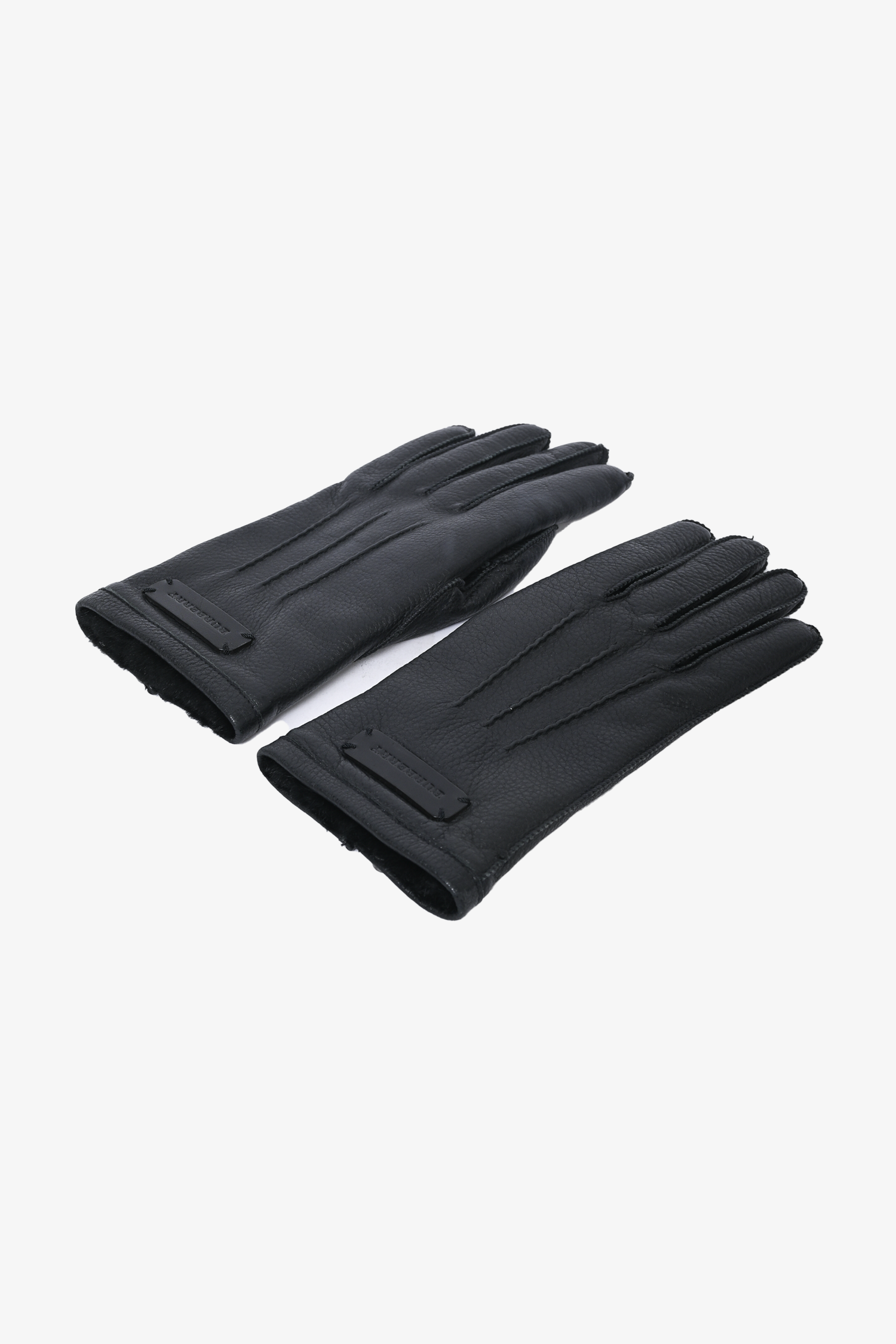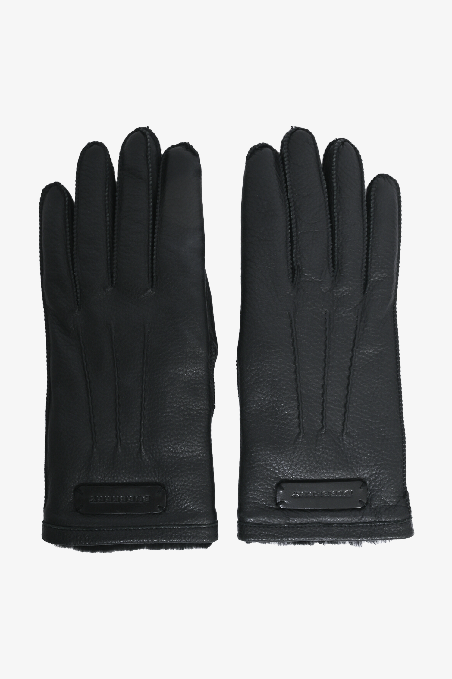 Burberry Black Deer Leather/Rabbit Fur Gloves