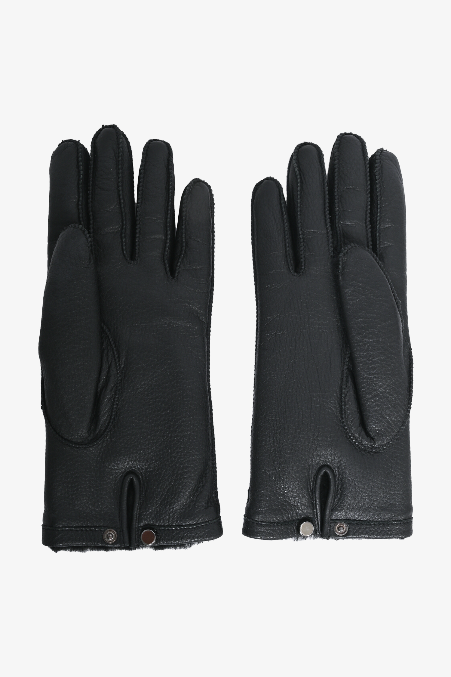 Refresh availabilityBurberry Black Deer Leather/Rabbit Fur Gloves. Snap closure.