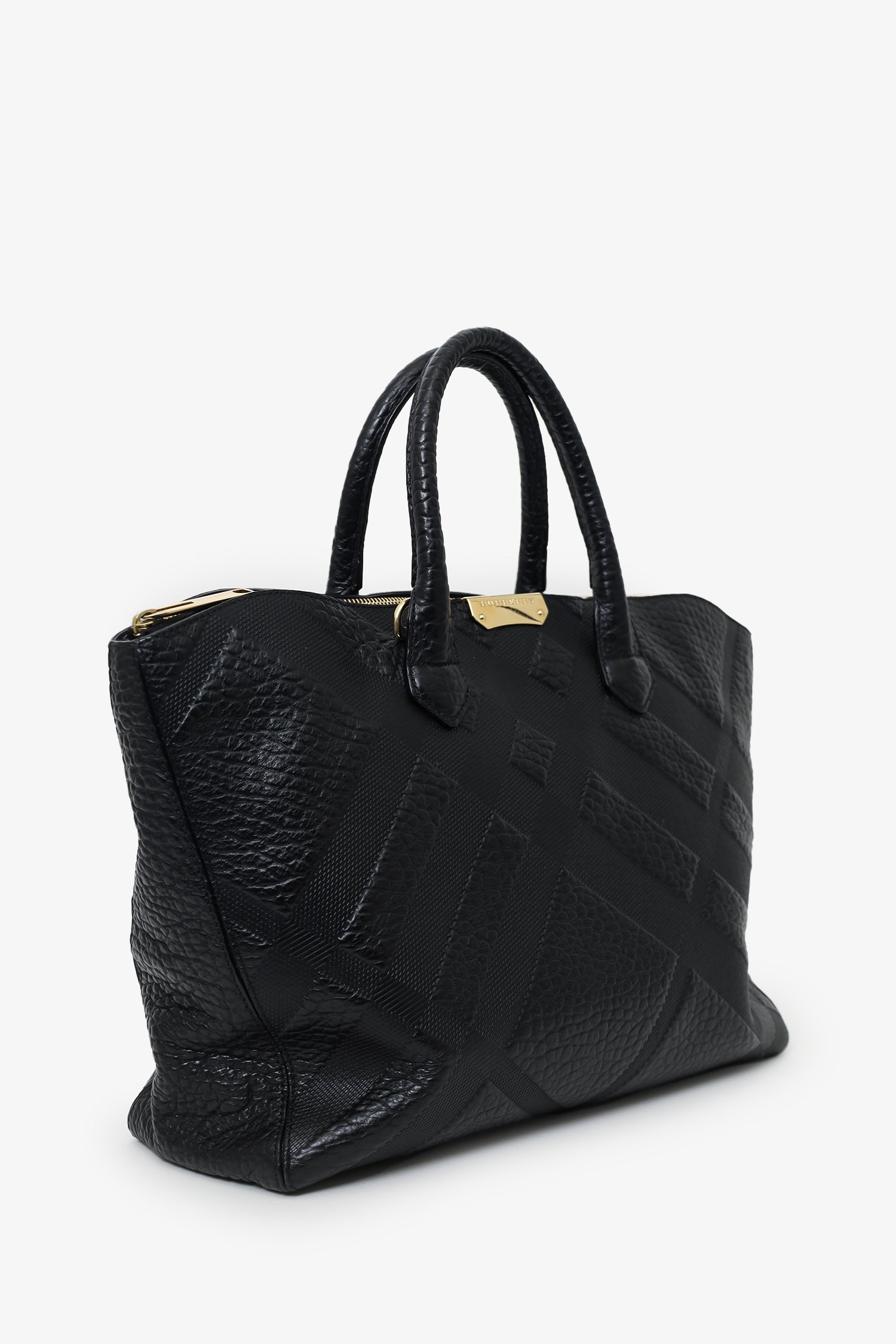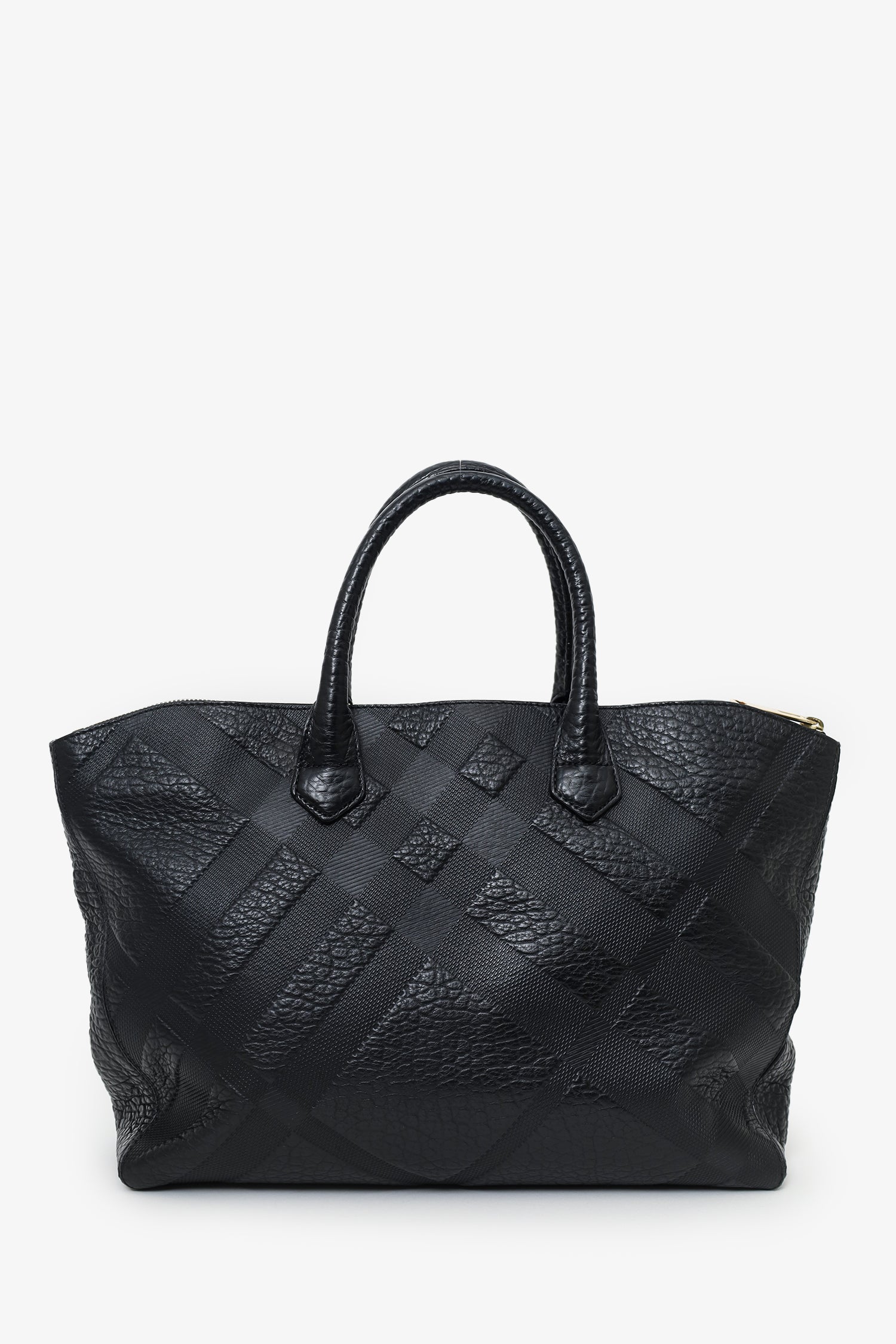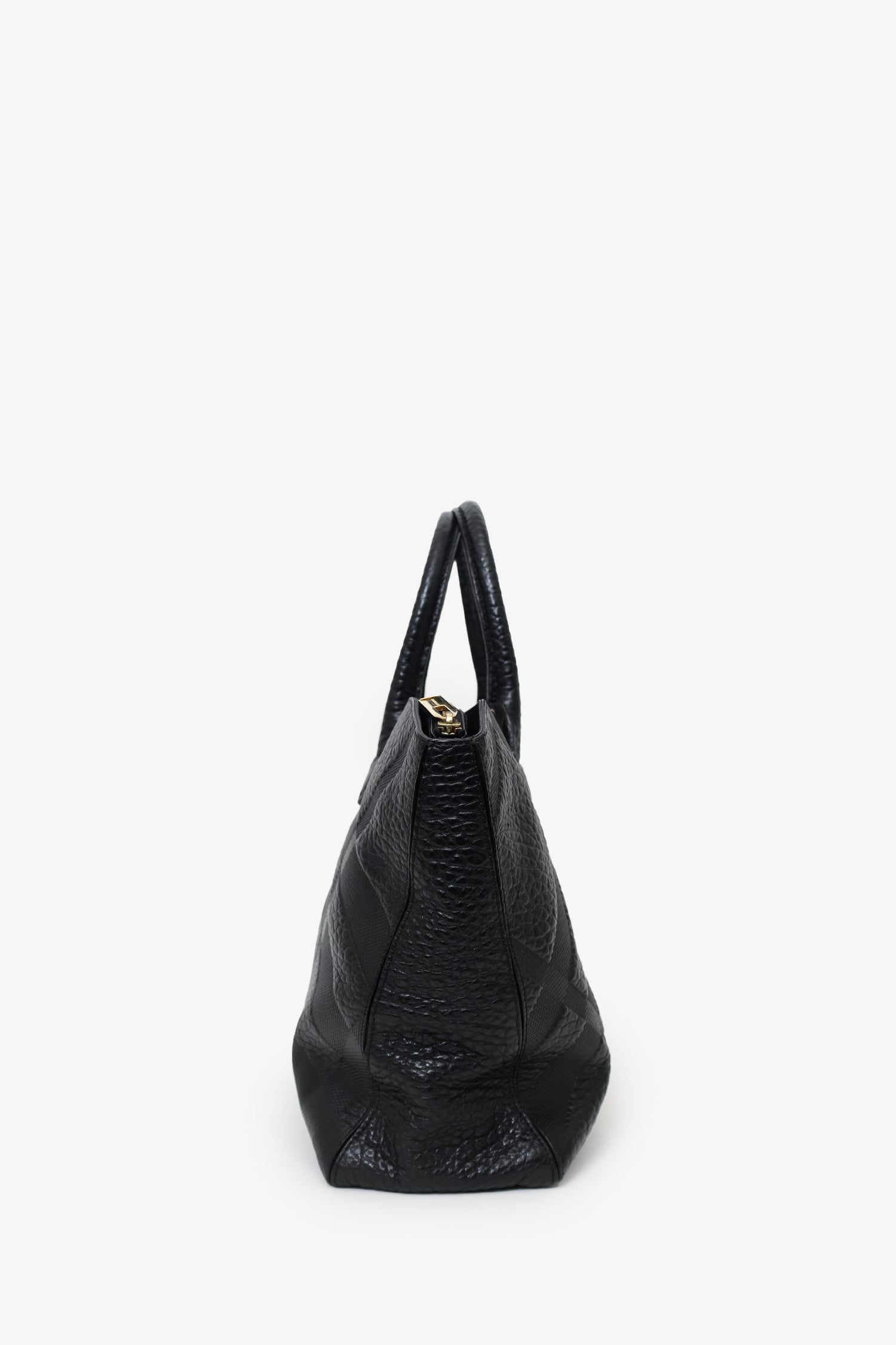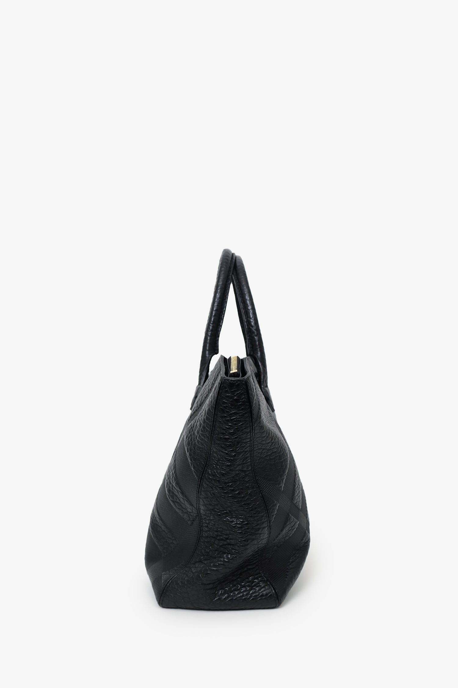 Burberry Black Embossed Check Leather Dewsbury Tote Bag With Strap