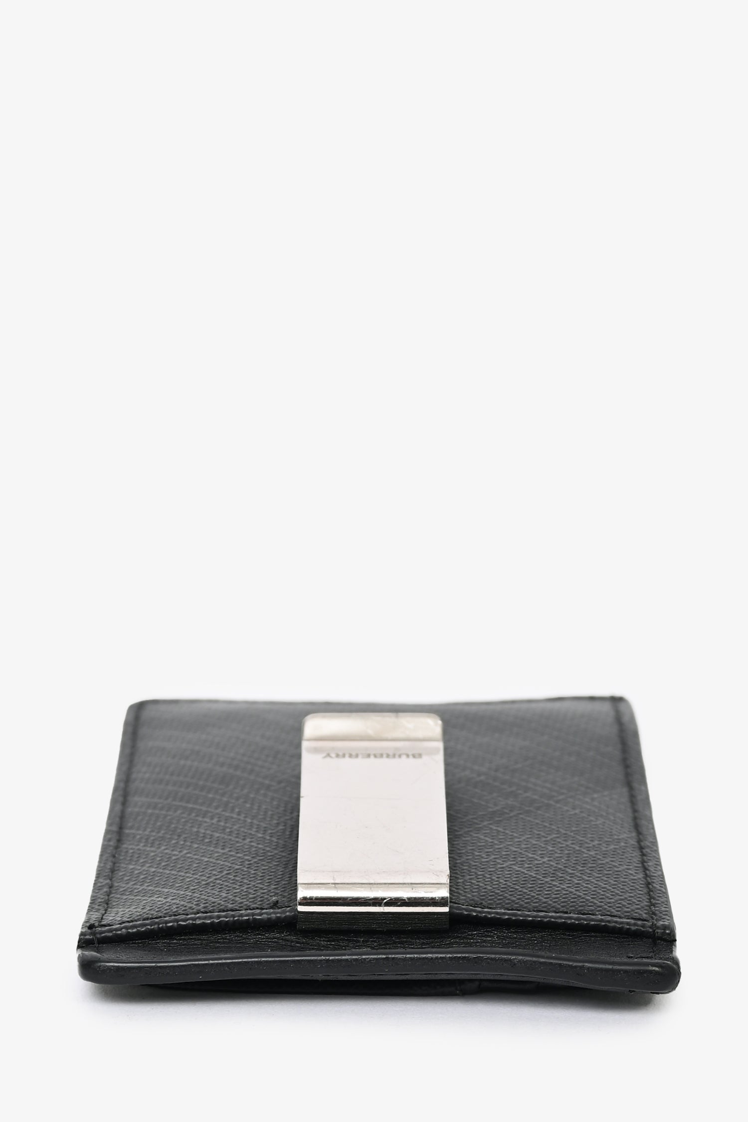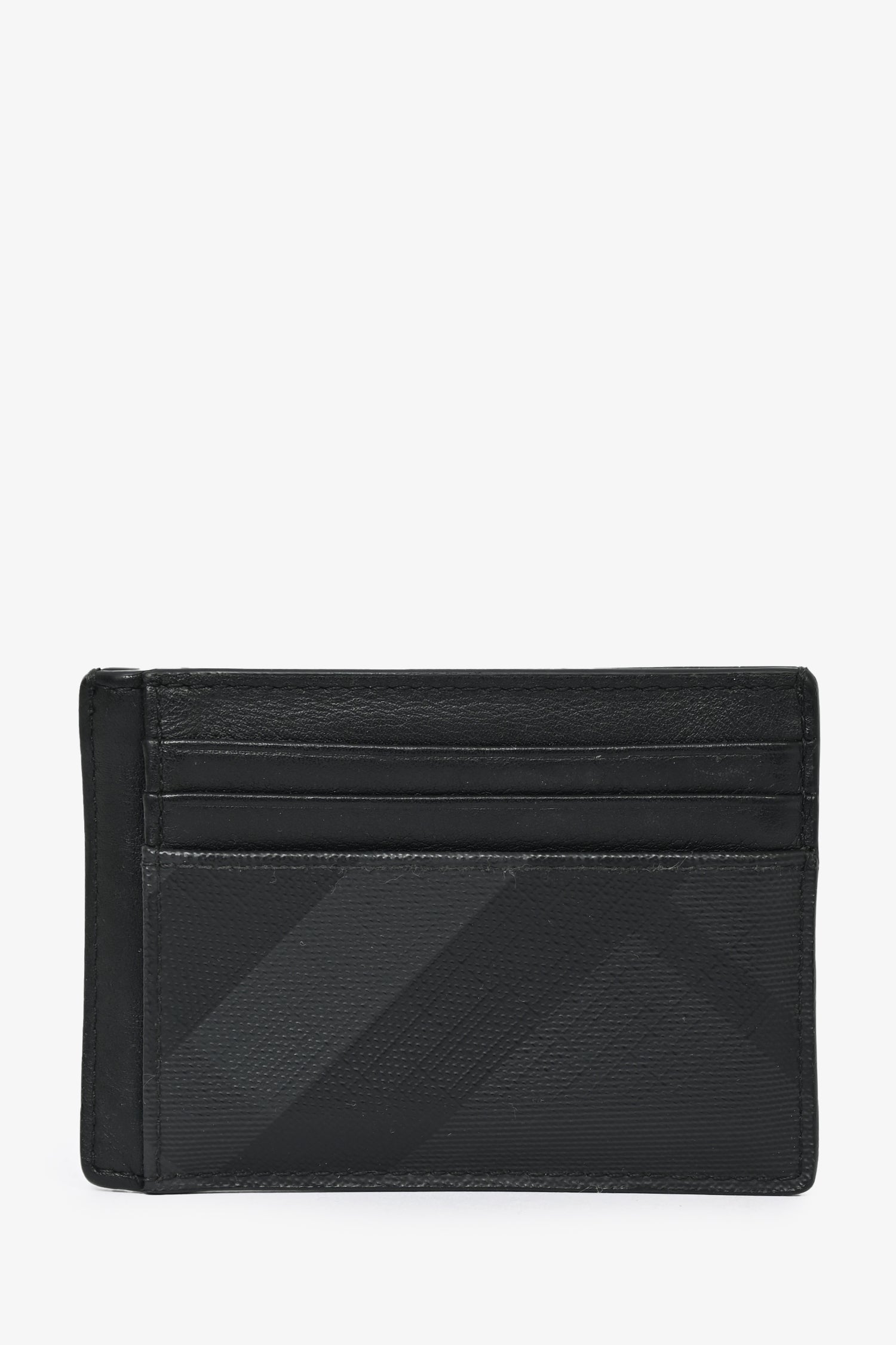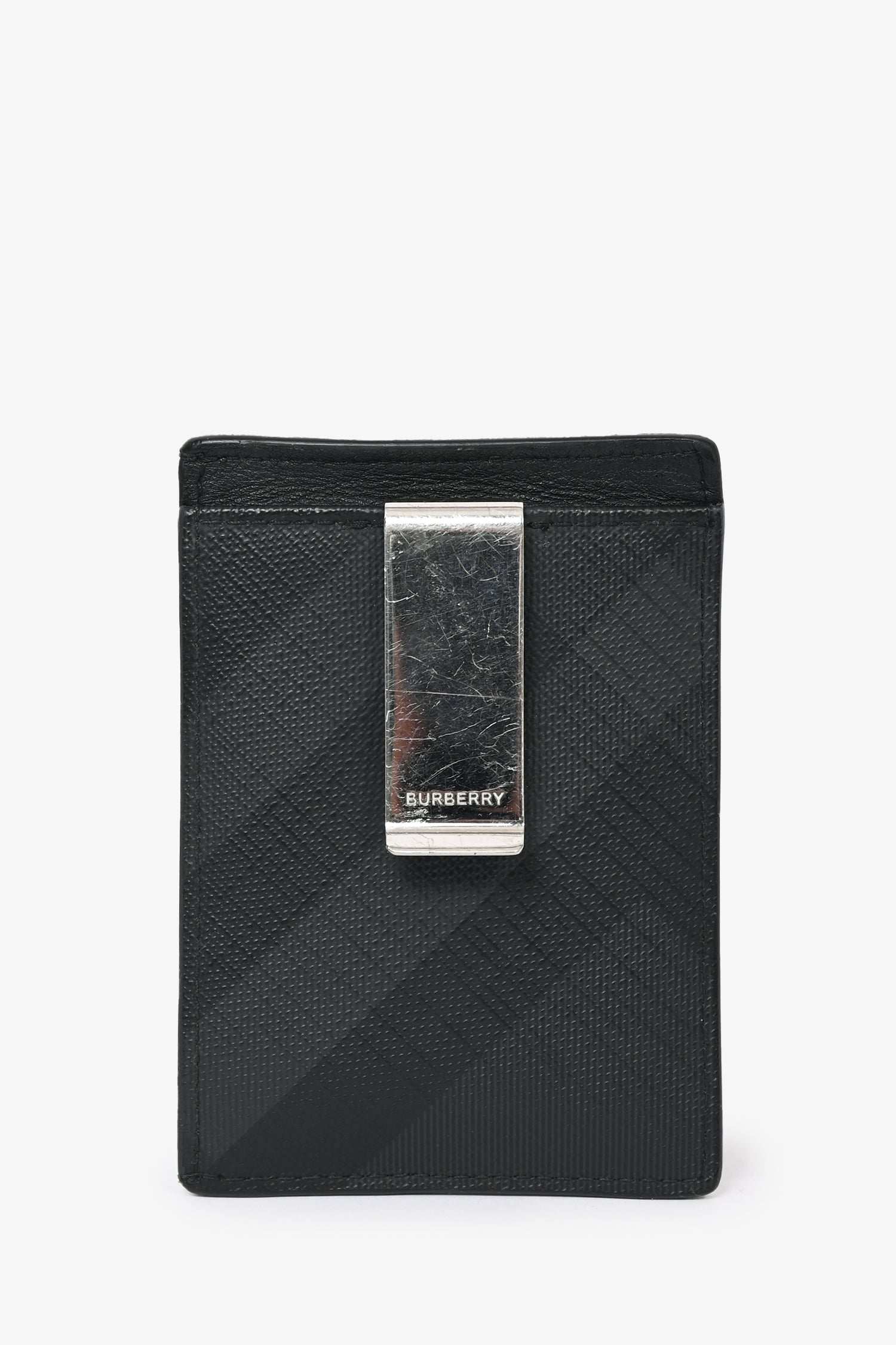 Refresh availabilityBurberry Black/Grey Check Canvas Card Holder Money Clip. 5 compartments. Silver-tone hardware. Tonal stitching.