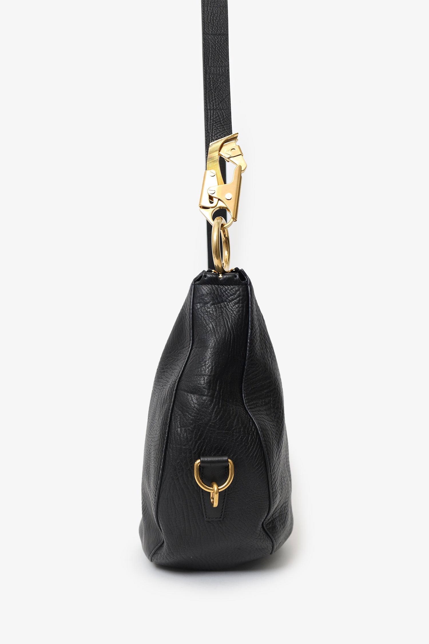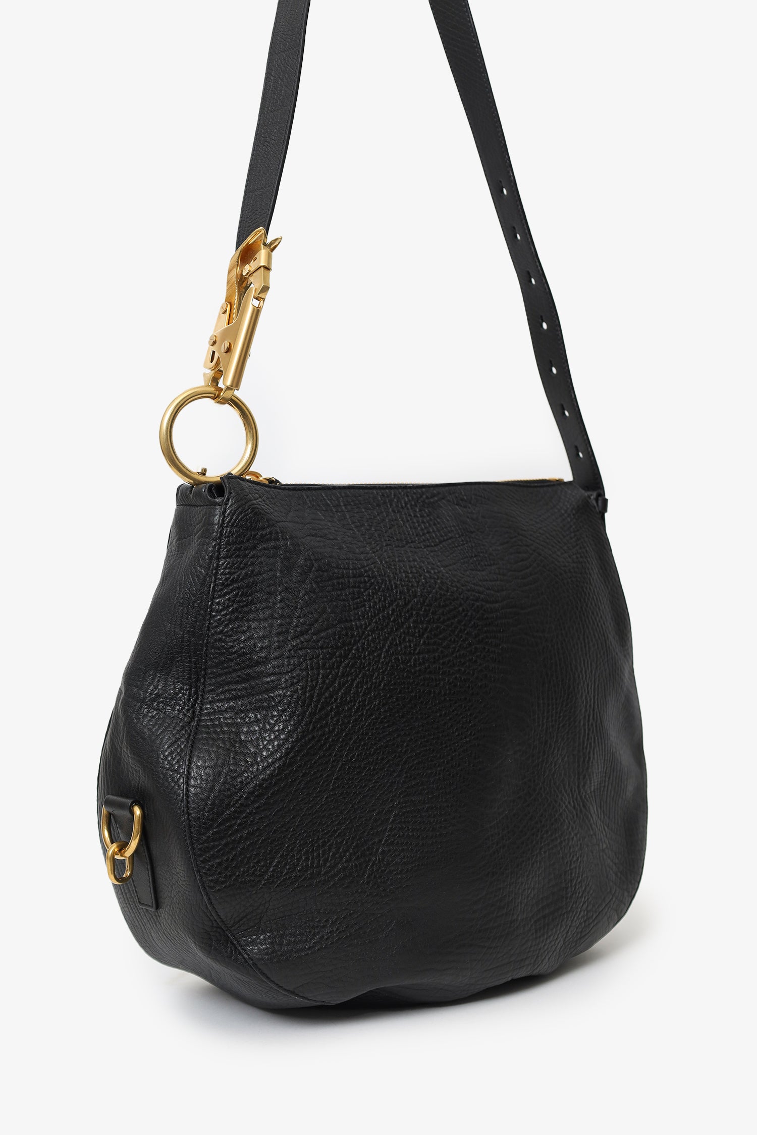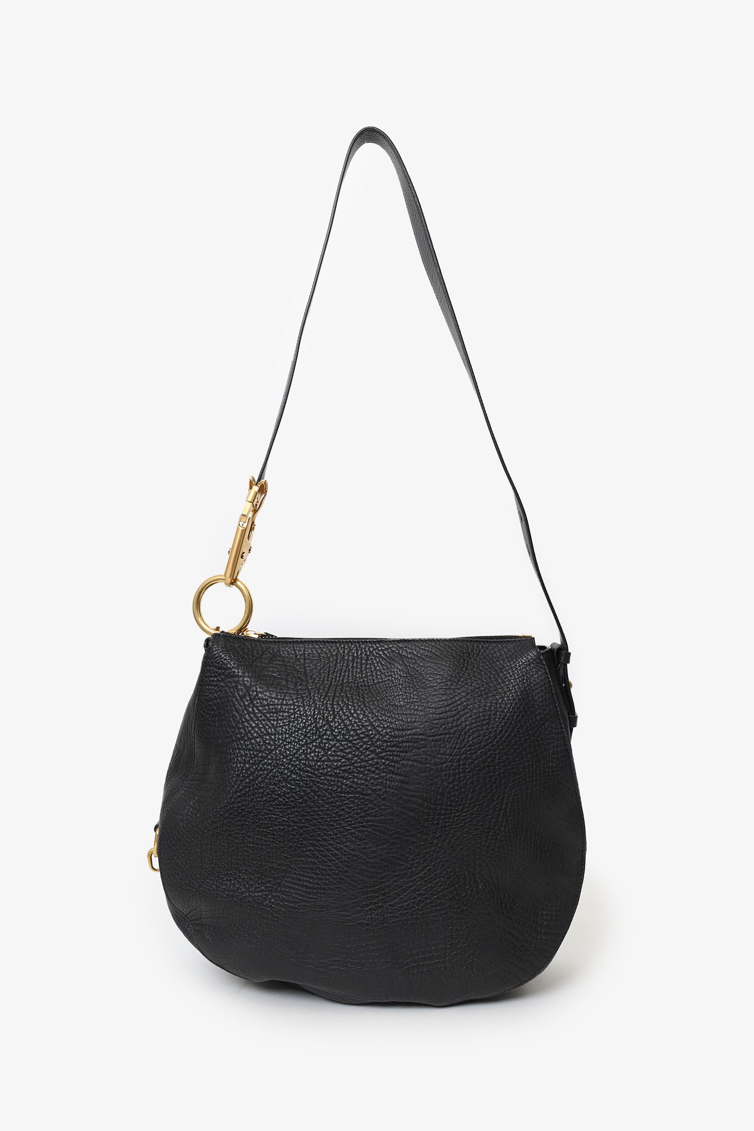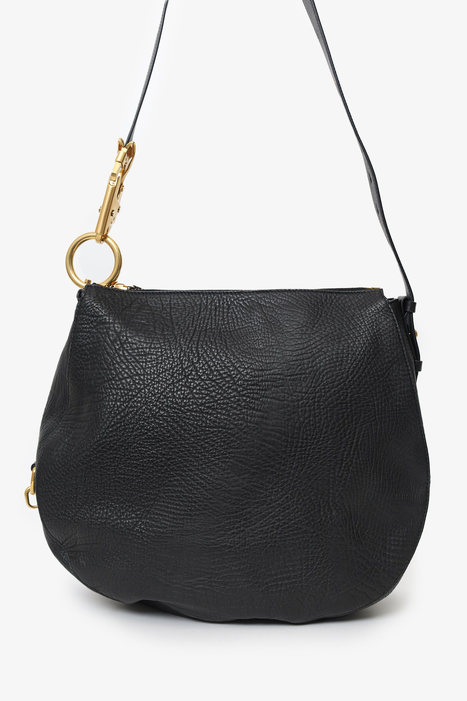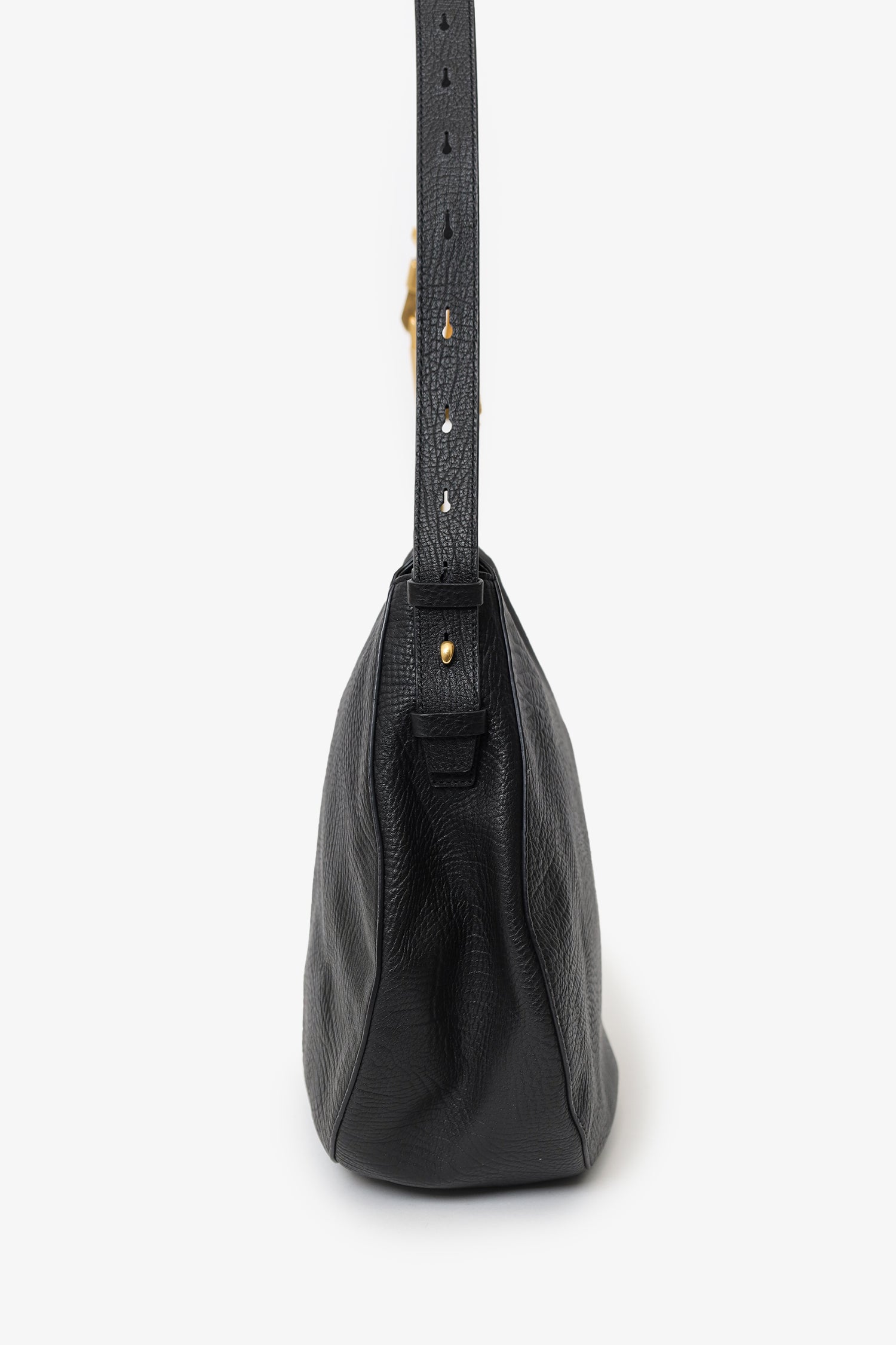 Refresh availabilityBurberry Black Leather Medium Knight Shoulder Bag. Top zip closure. Adjustable shoulder strap with push-pin and clasp closures. Suede-lined interior. Single interior slip pocket. Gold-tone hardware. Tonal stitching.