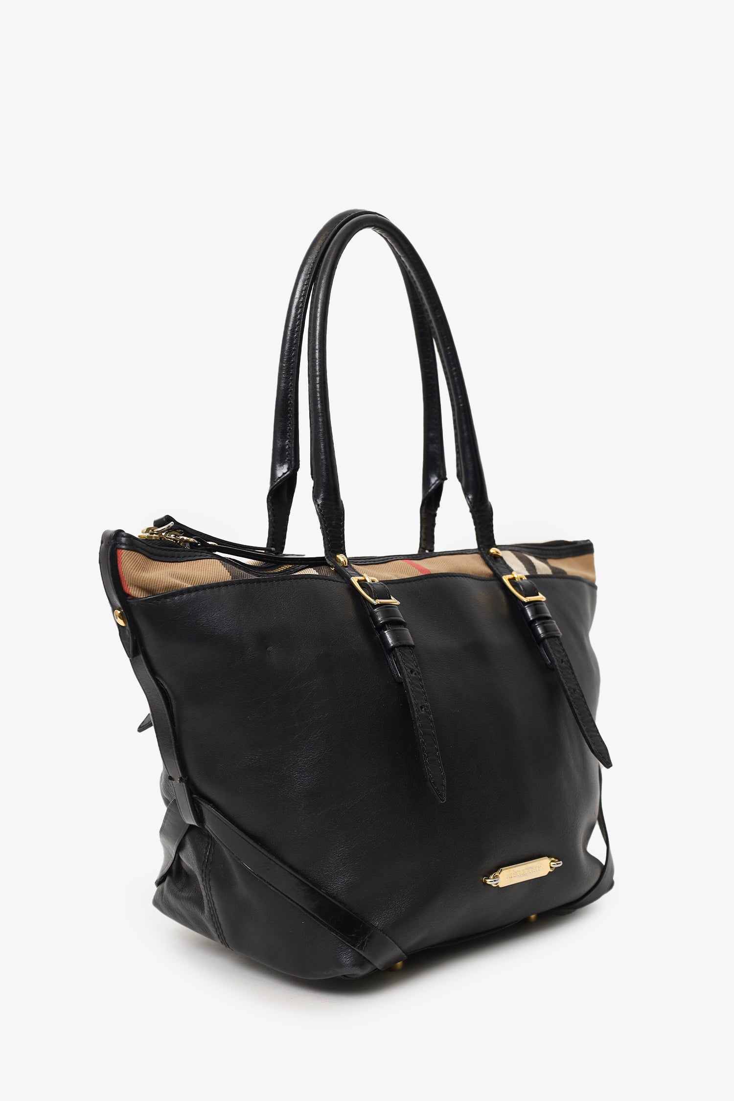 Burberry Black Leather/Nova Check Salisbury Tote