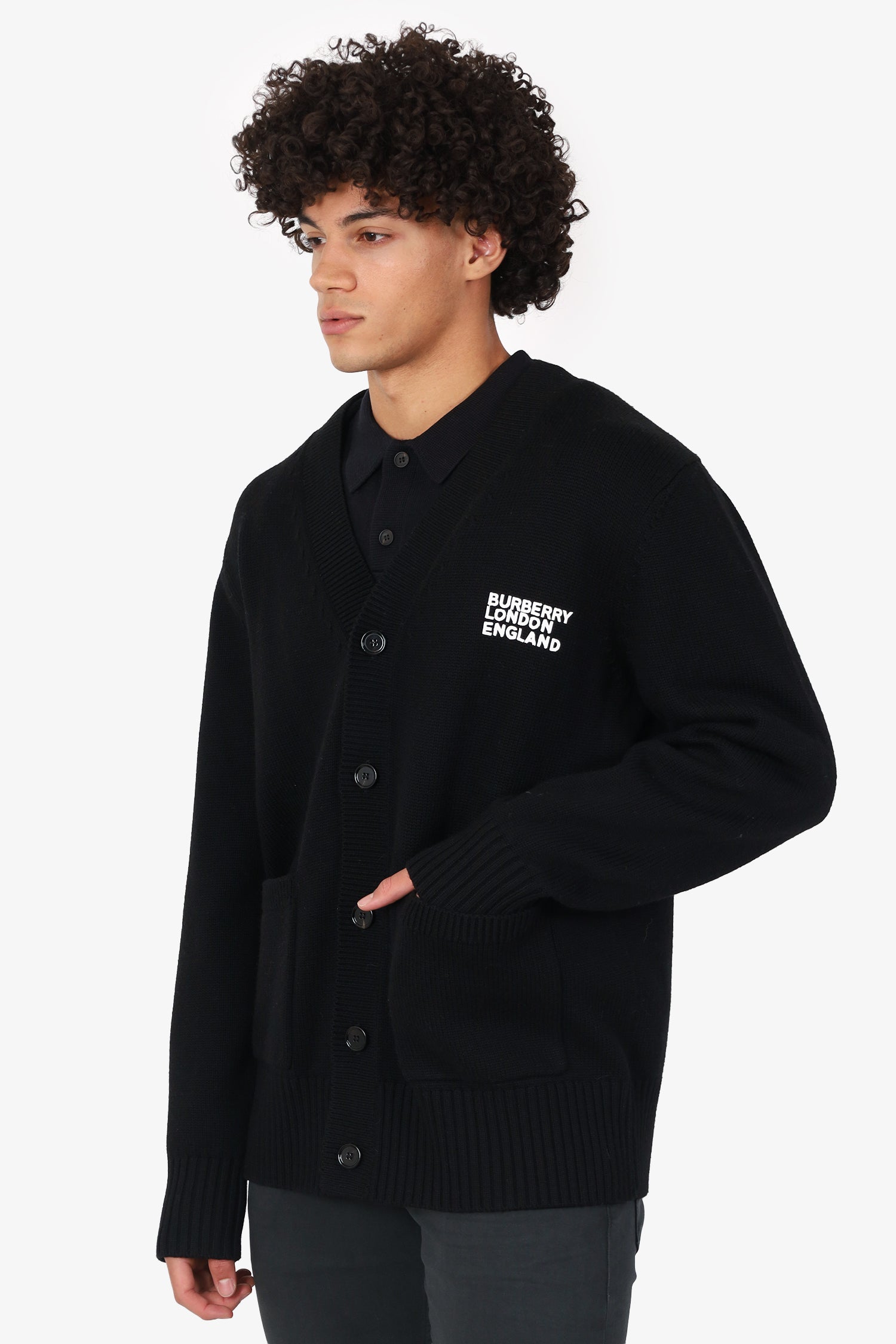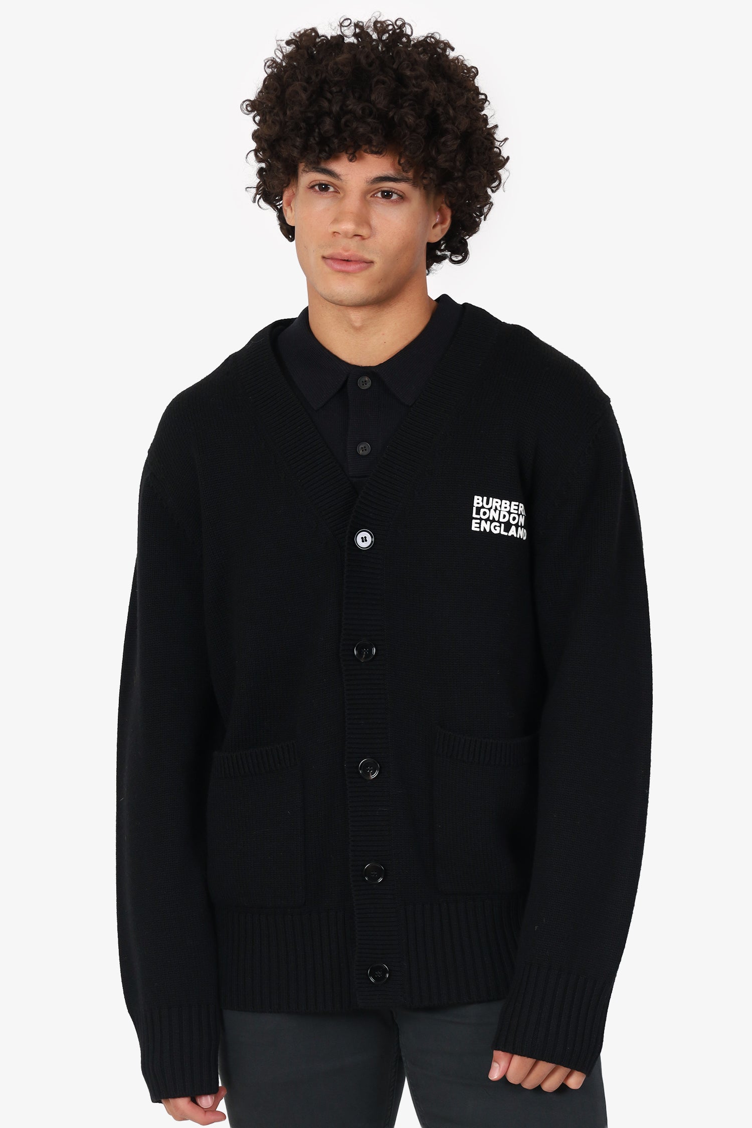 Refresh availabilityBurberry Black Love Motif Merino Wool Oversized Cardigan. Pull-on. V-neckline. Front button-up closure. 2 exterior front slip pockets. Contrast and tonal stitching.