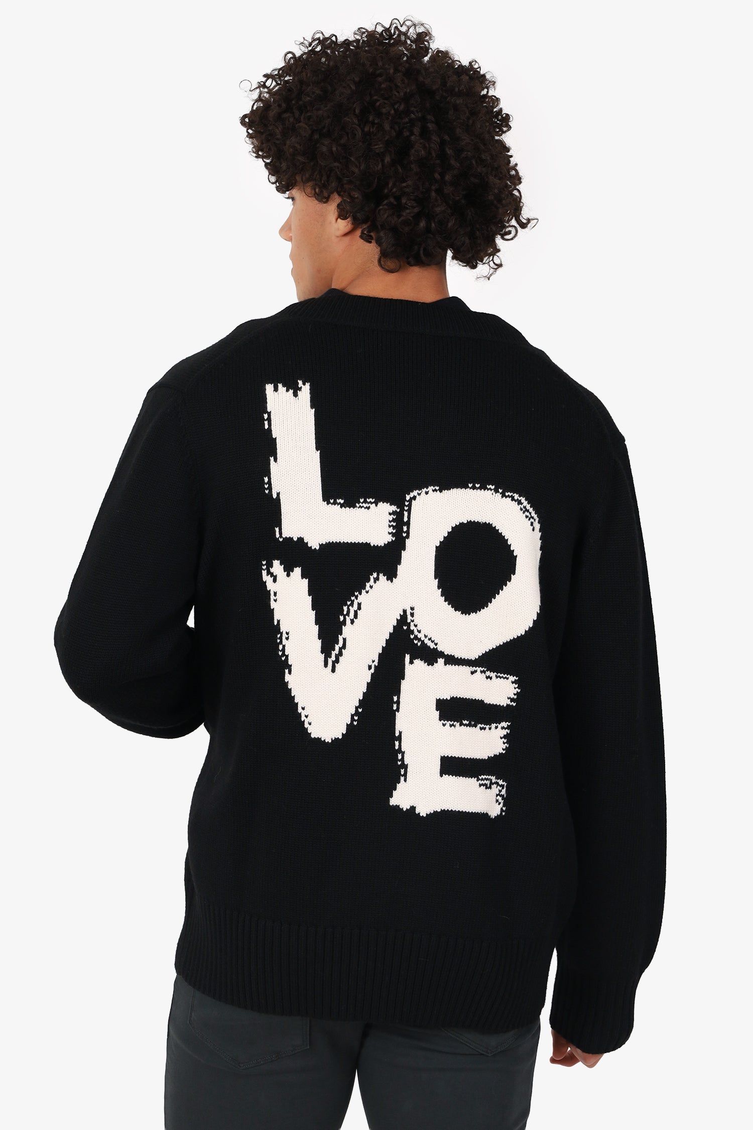 Burberry Black Love Motif Merino Wool Oversized Cardigan Size M Mens