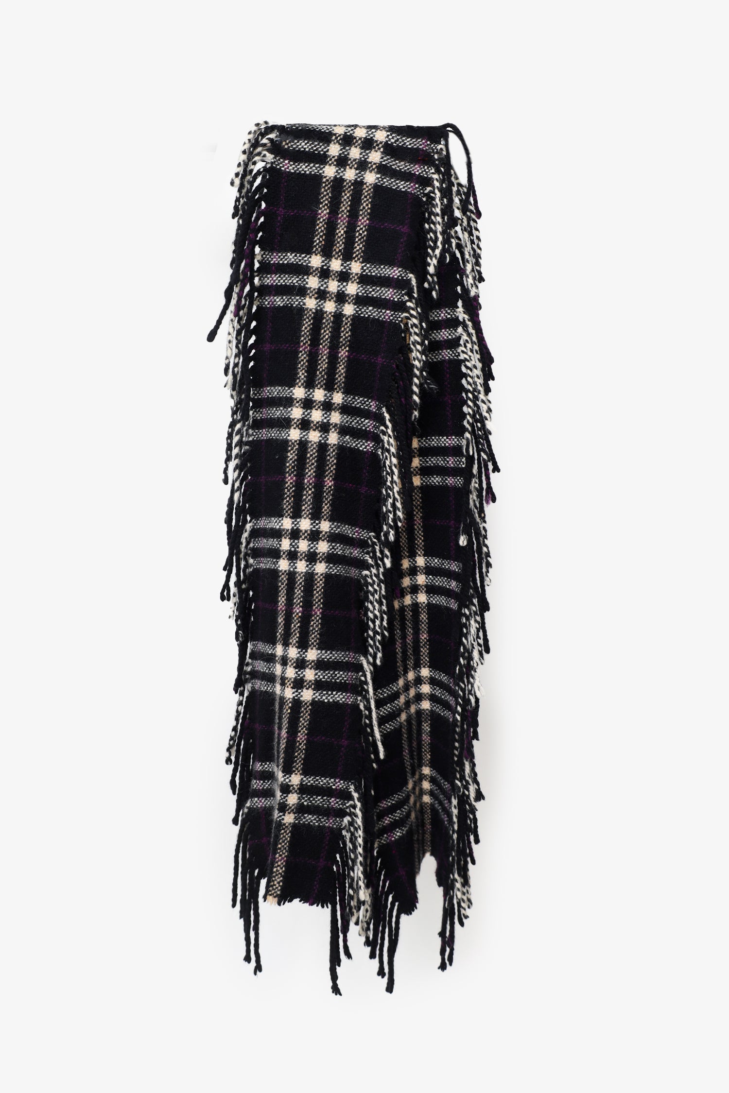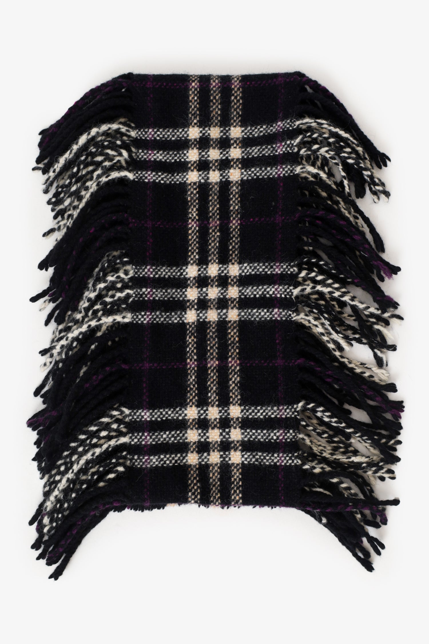 Refresh availabilityBurberry Black Merino Nova Check Fringe Scarf. Tonal stitching.