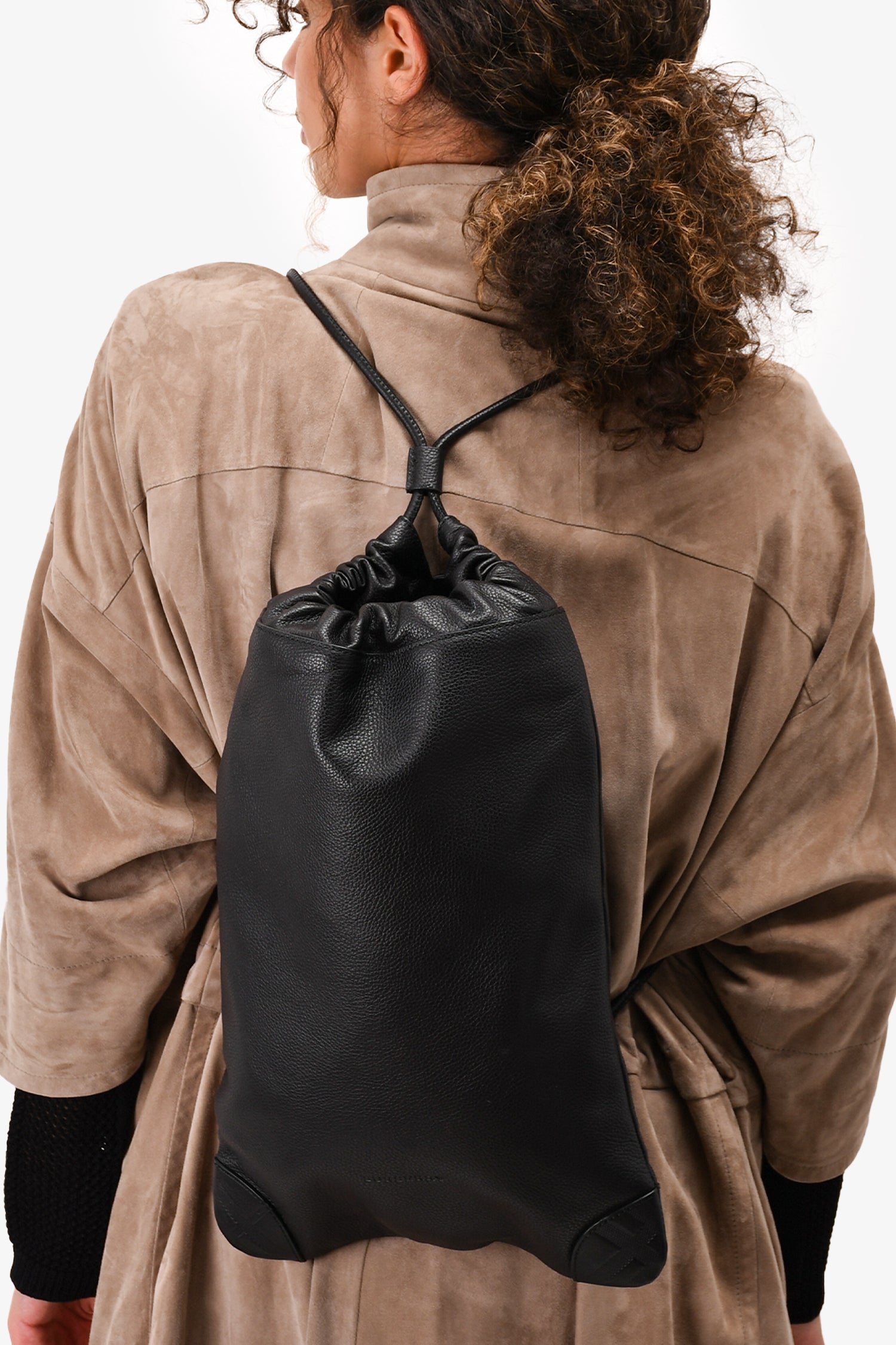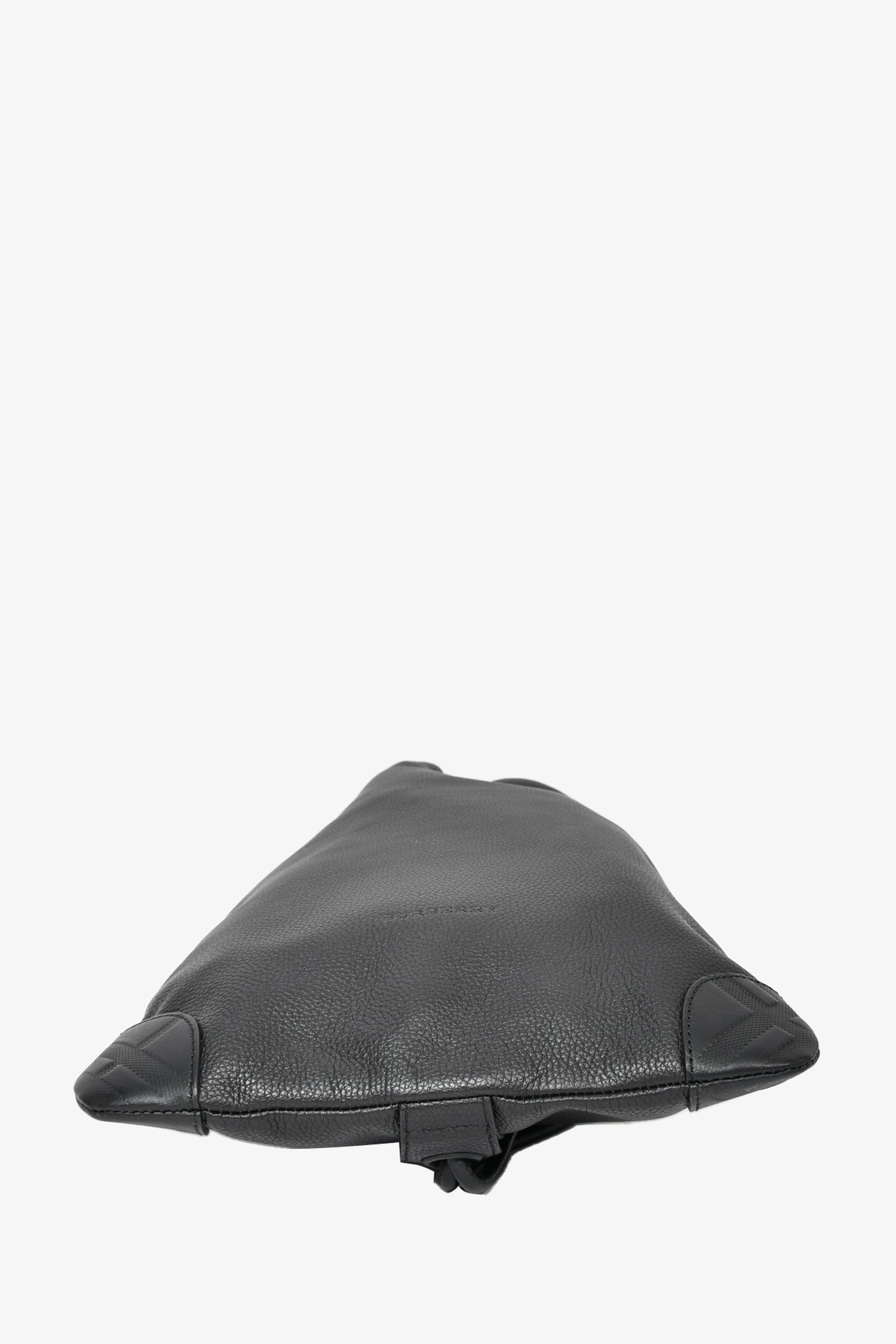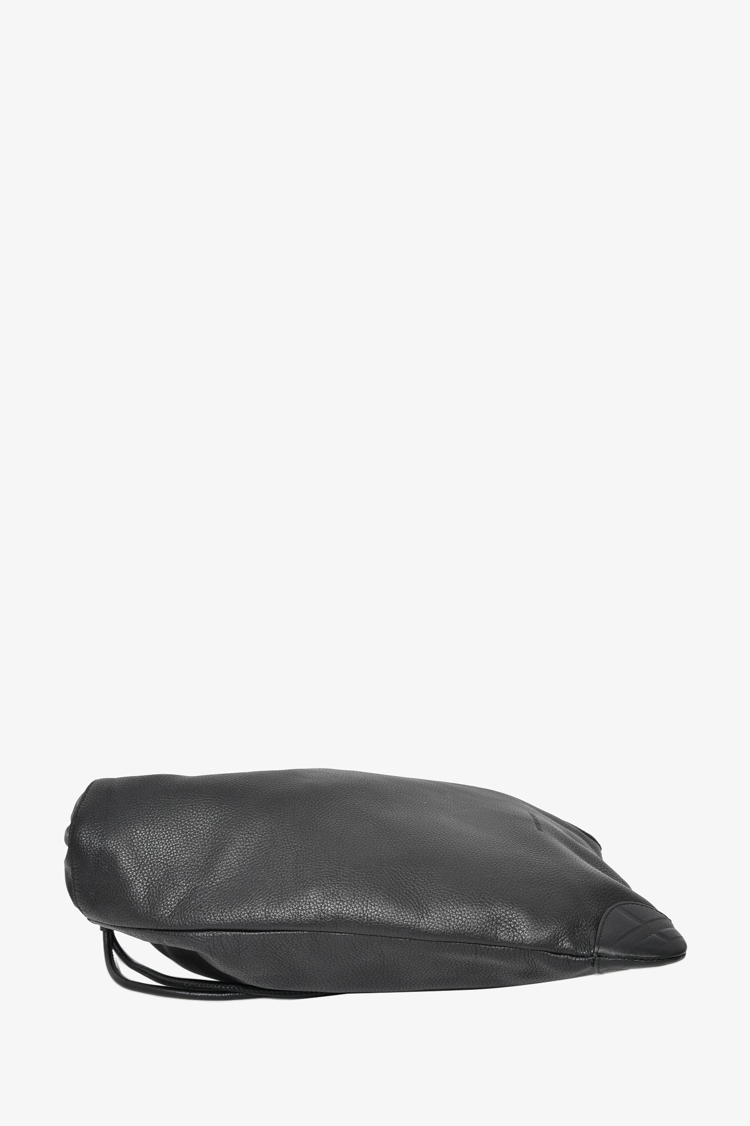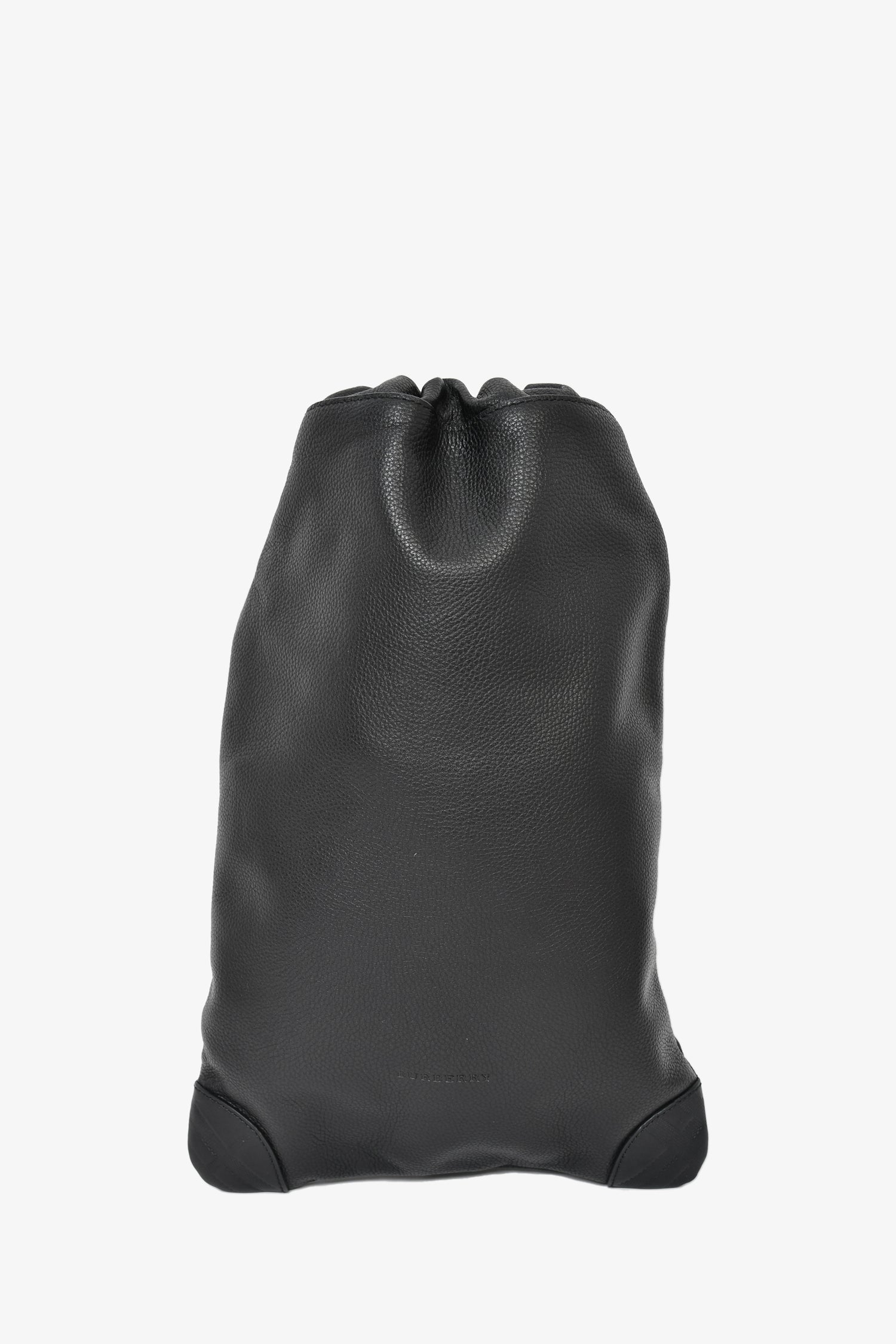 Refresh availabilityBurberry Black Pebbled Leather Drawstring Bag with Pouch. open interior. Interior pouch with zipper. Gold-toned hardware. Tonal stitching.
