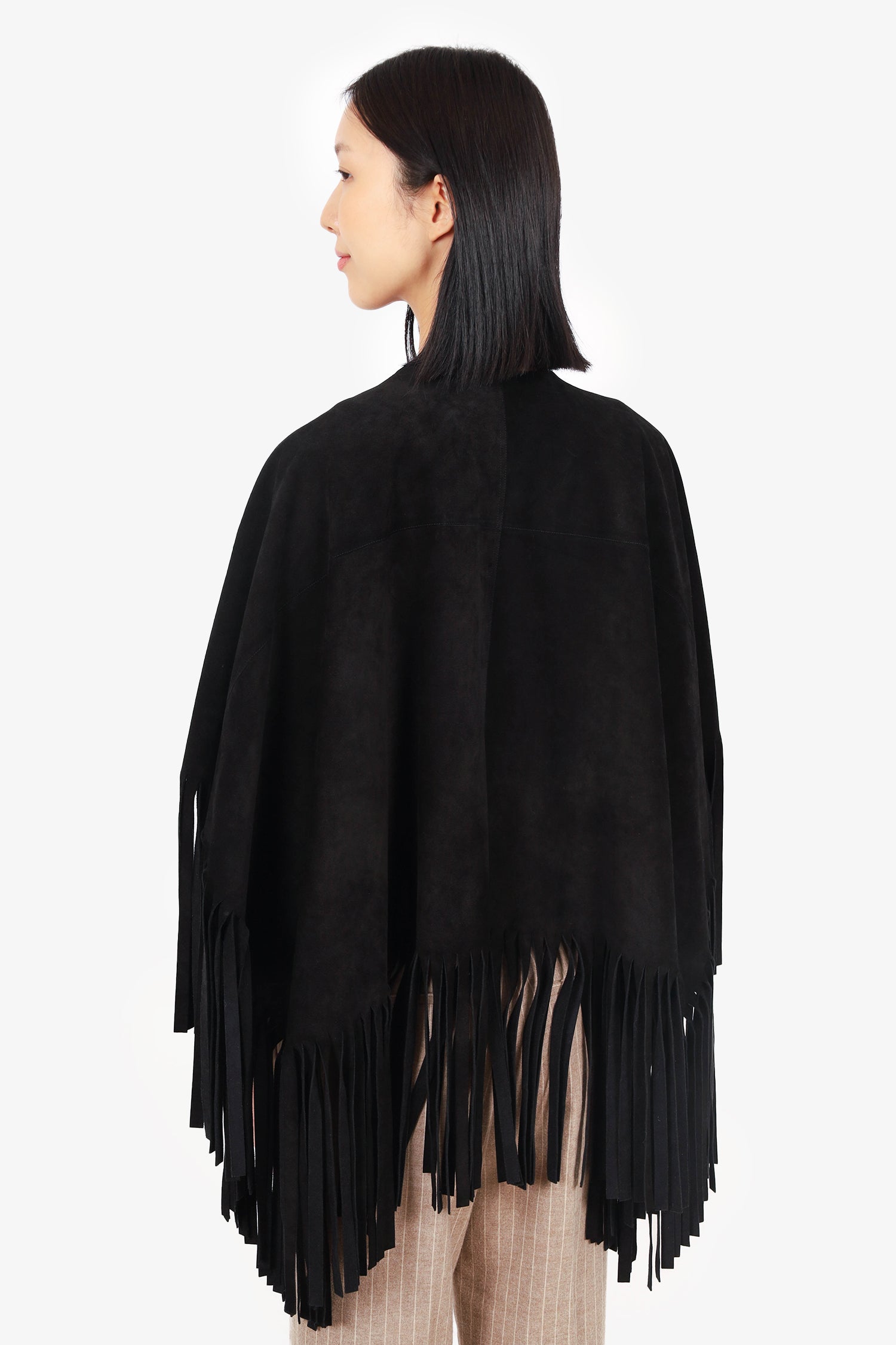 Refresh availabilityBurberry Black Suede Fringed Poncho. Open front. Unlined. Tonal stitching.
