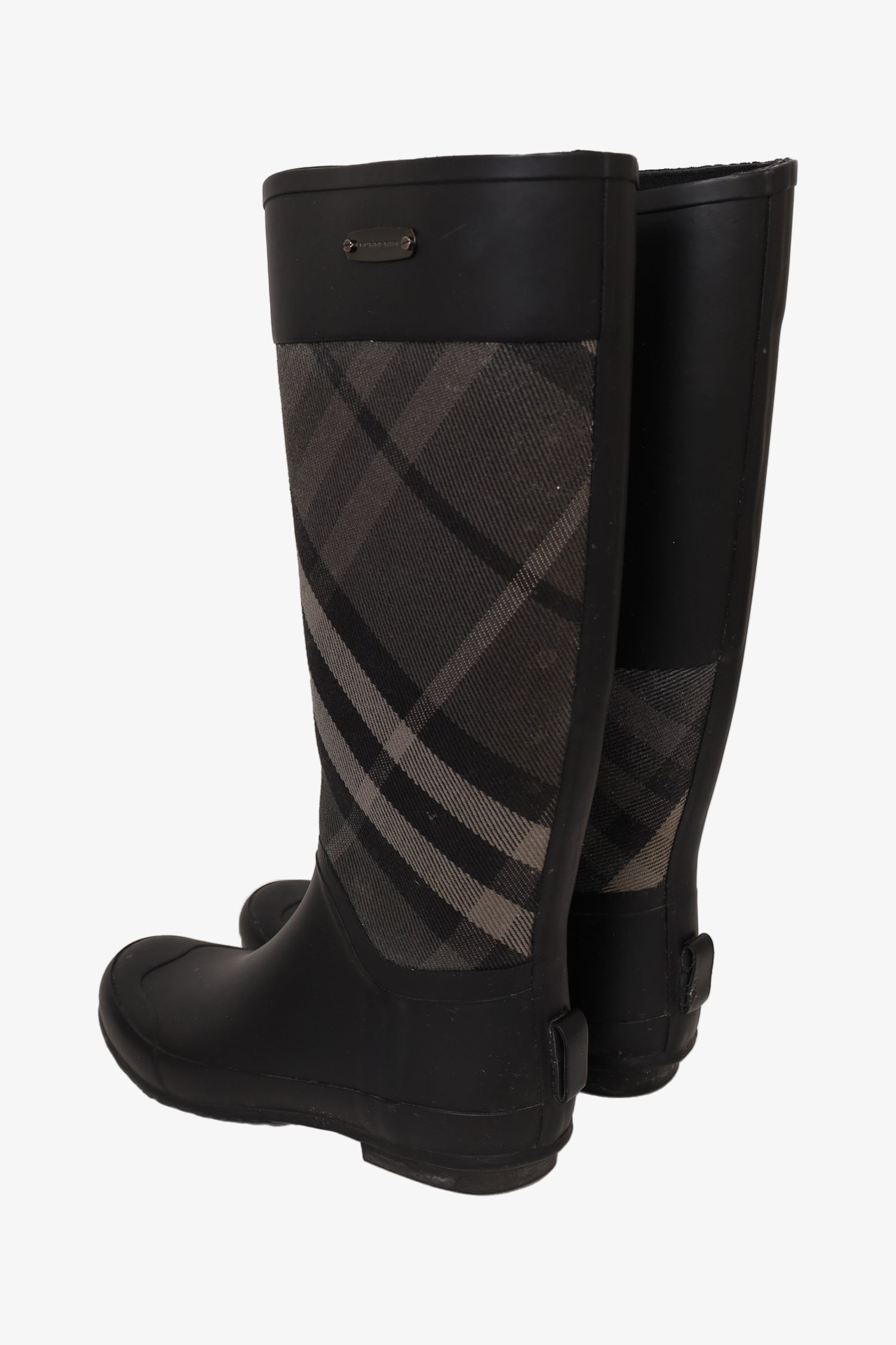 Burberry Black Super Nova Check Pattern Rubber Rain Boots Size 37