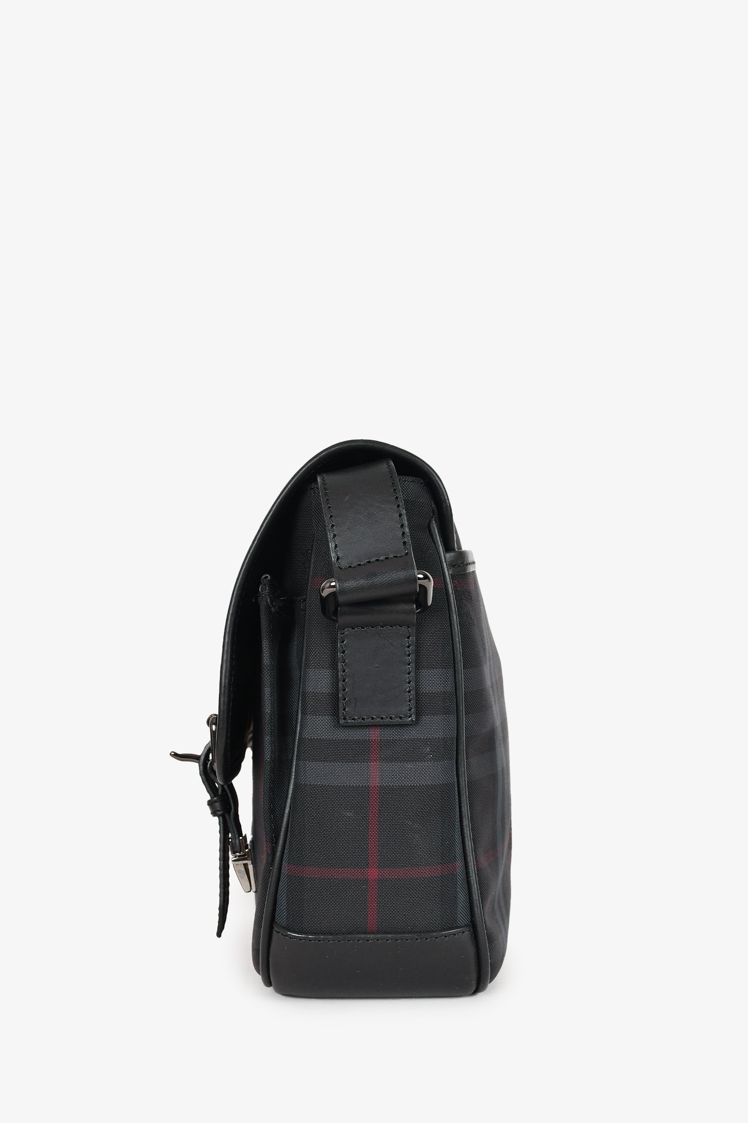 Burberry Black Tartan Canvas/Leather Tartan Messenger Bag