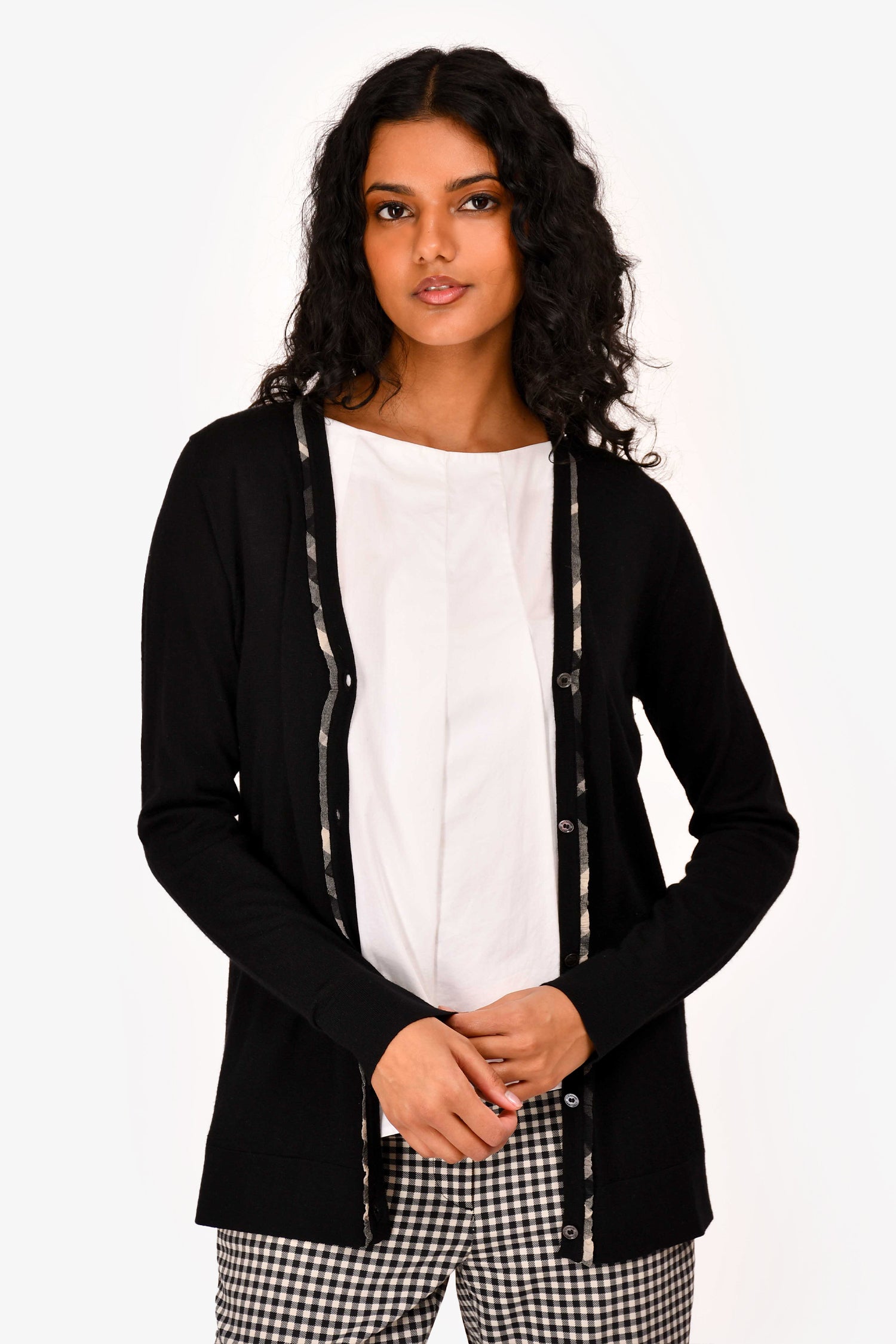 Burberry Black Wool Cashmere Blend Cardigan Size M