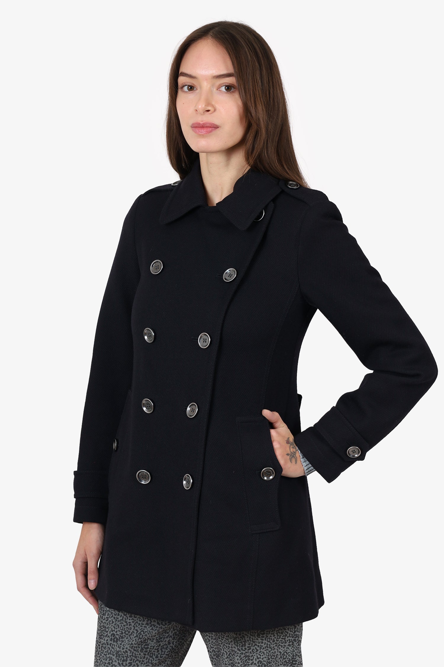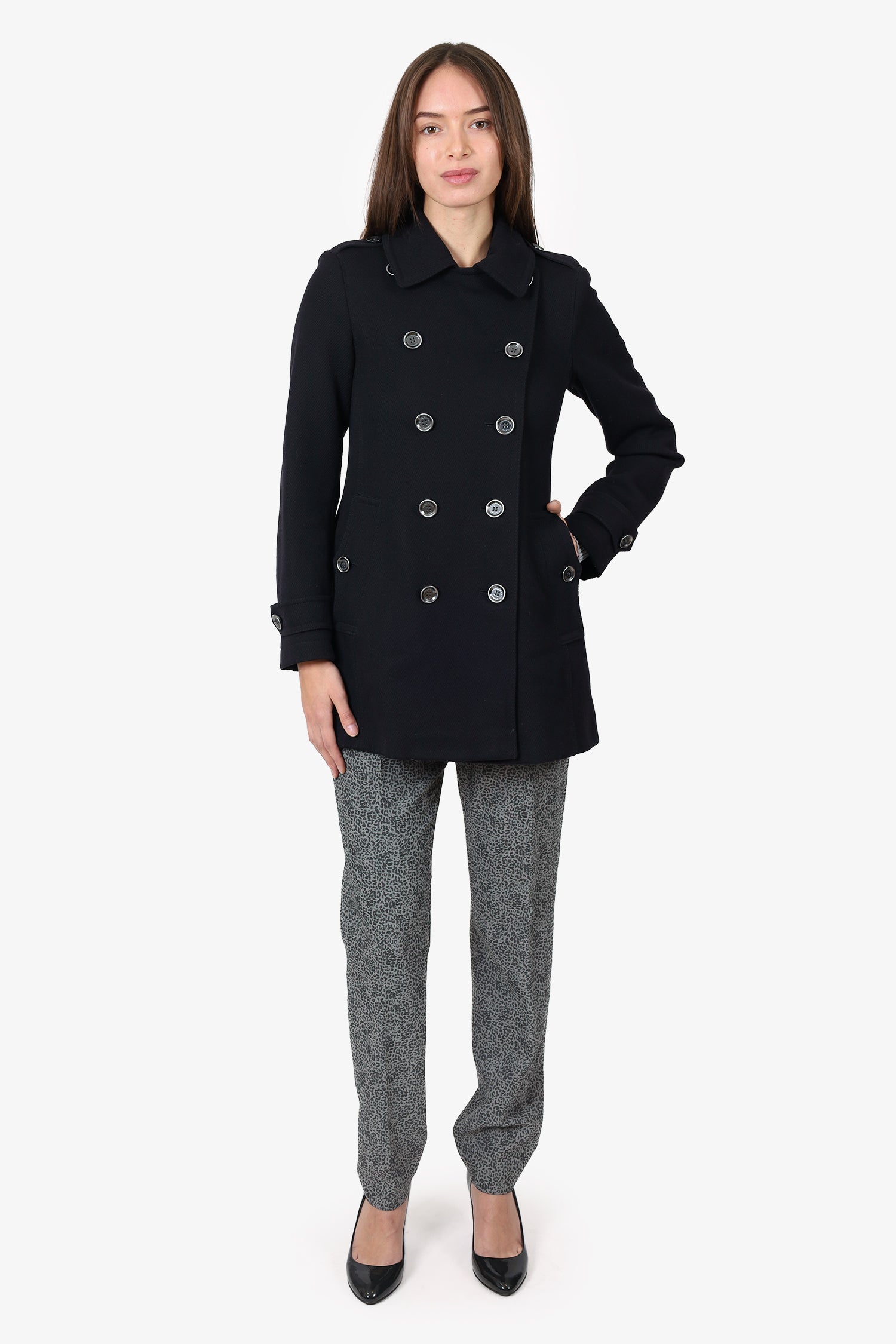 Burberry Black Wool Double Breasted Coat Size 4